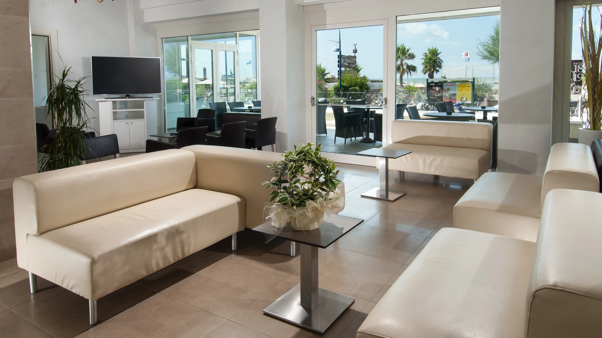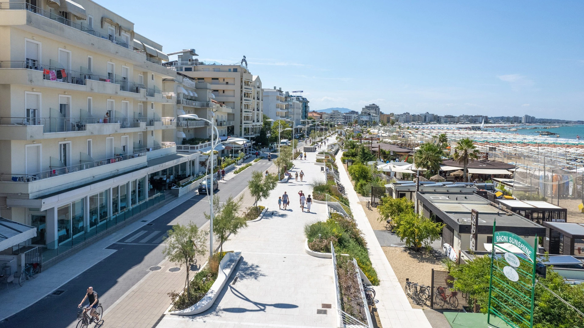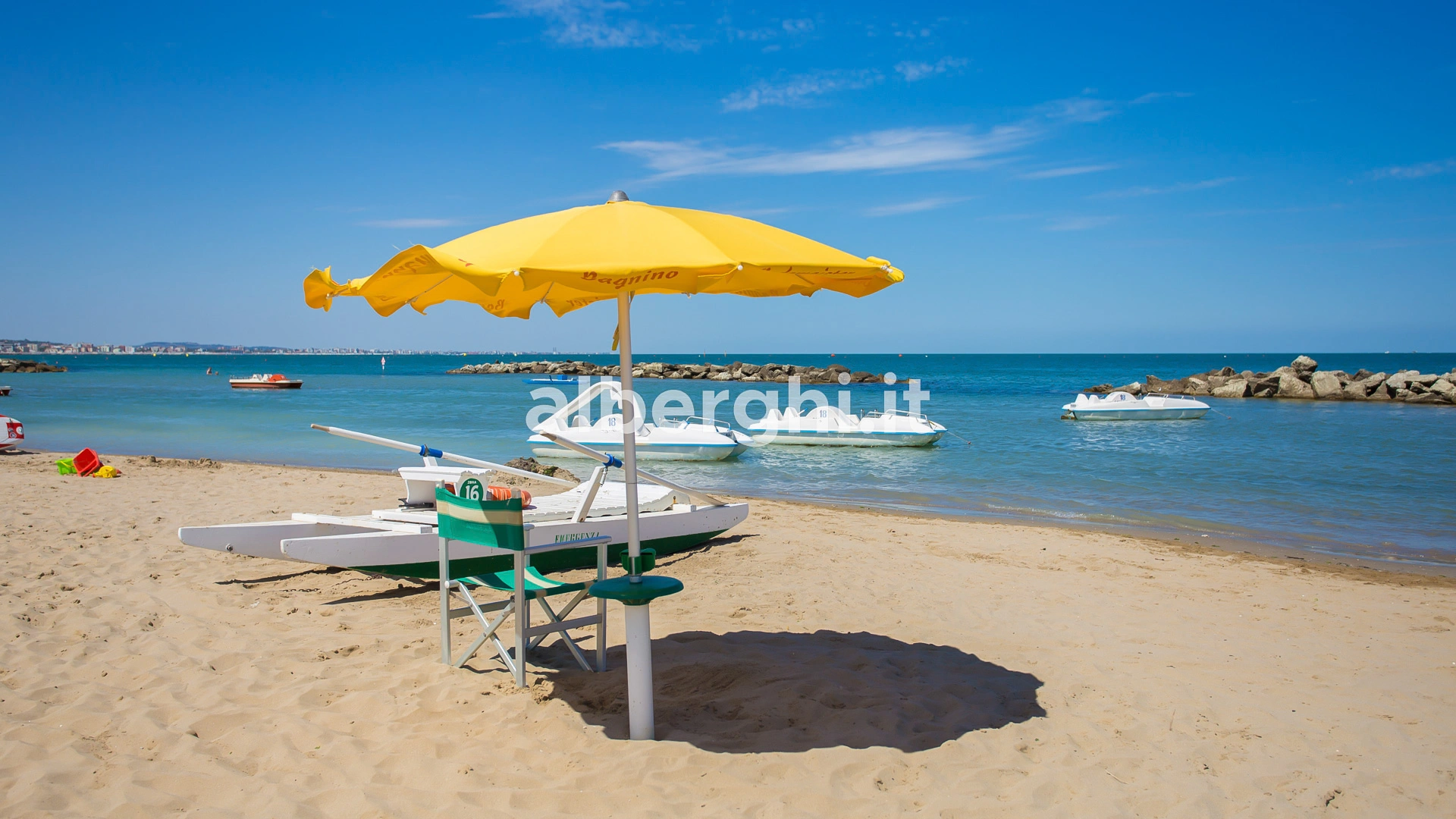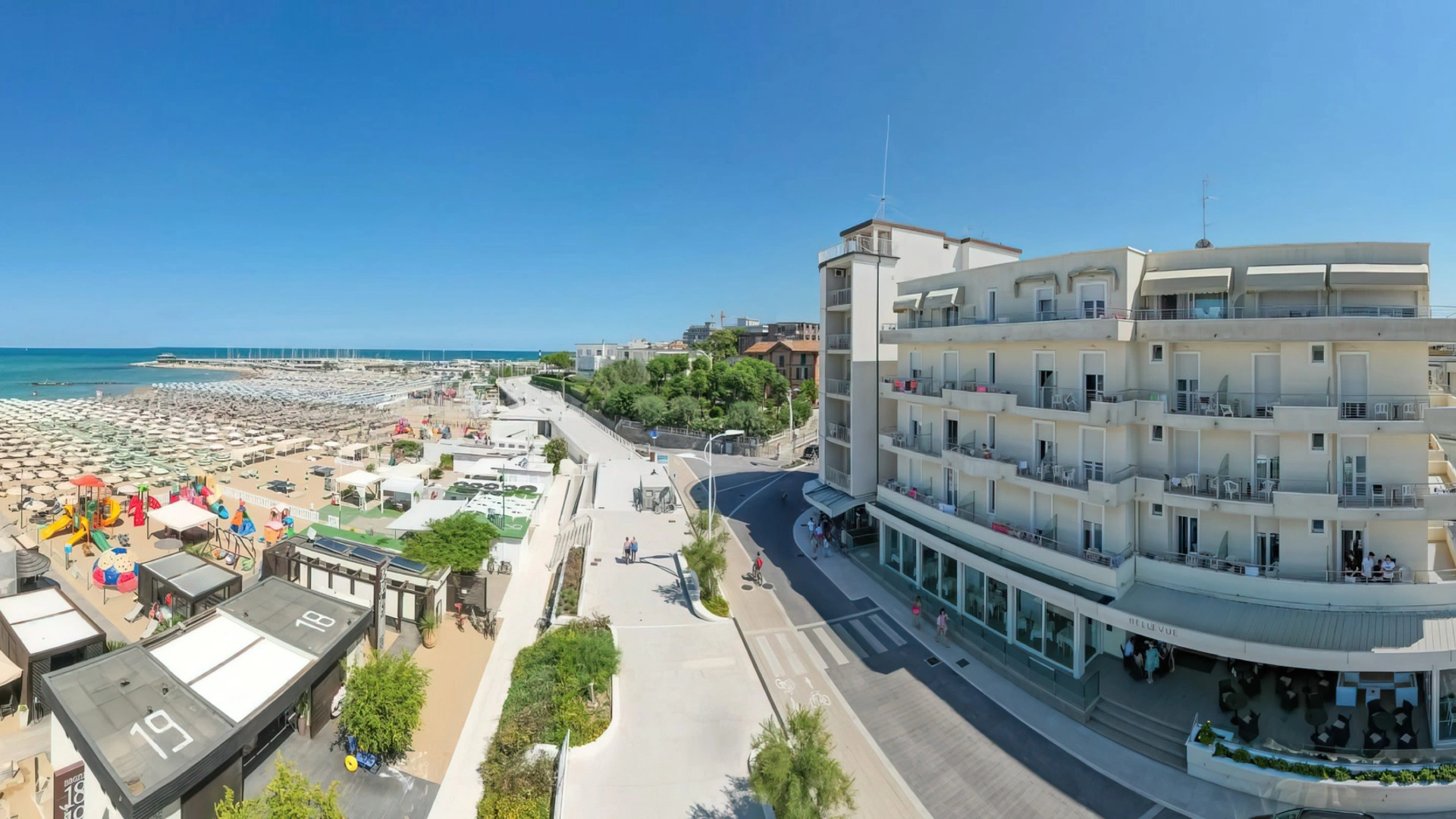 The facility has an agreement with the beaches Sunshine Beach n.16 and Golden Beach n.38/39. Both establishments are equipped with umbrella and sunbed rental, cabins, hot showers, sports fields, baby park and entertainment.