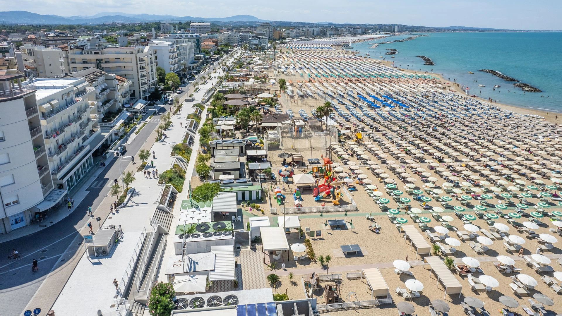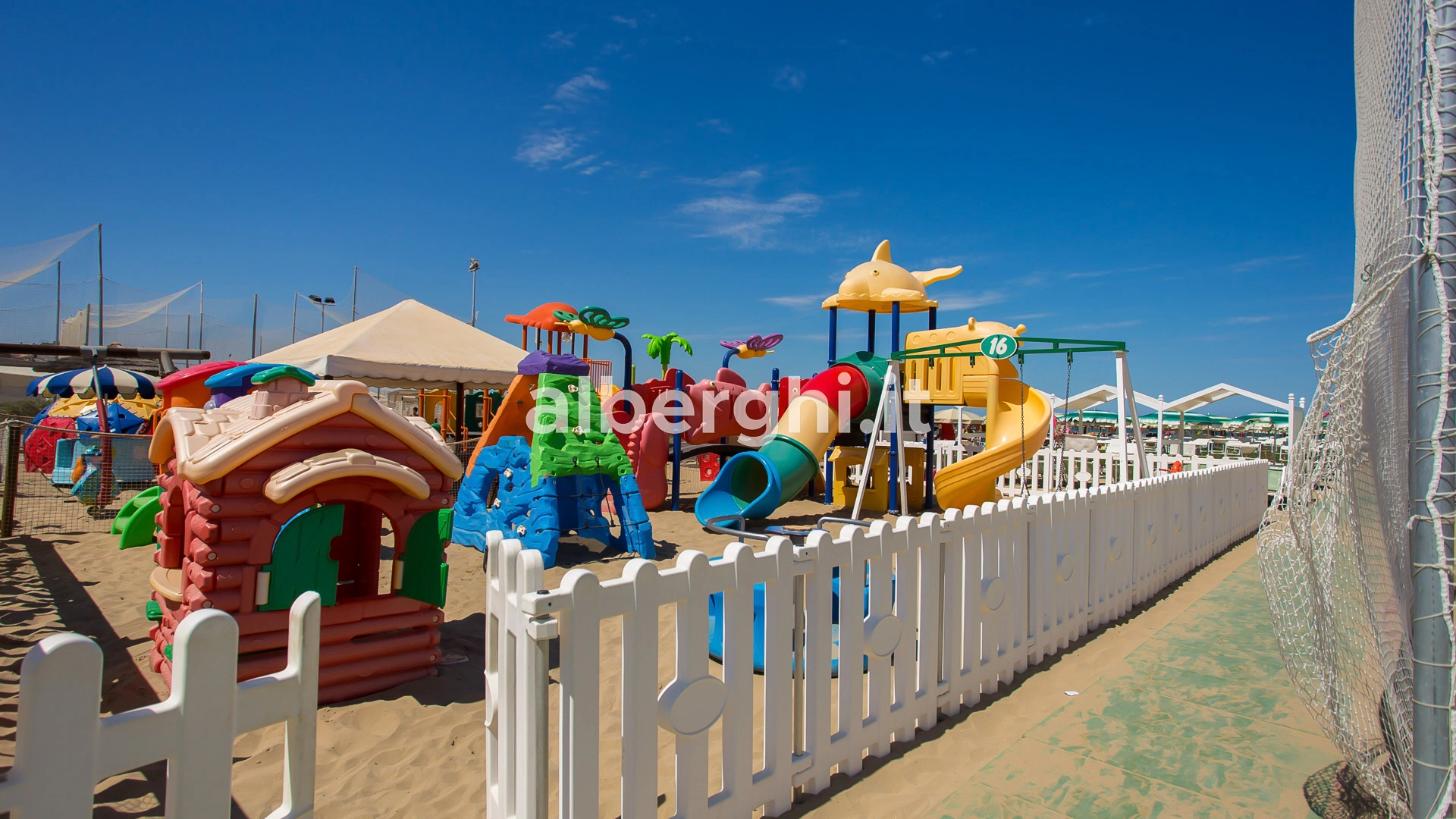 On the beach: playground area and entertainment.