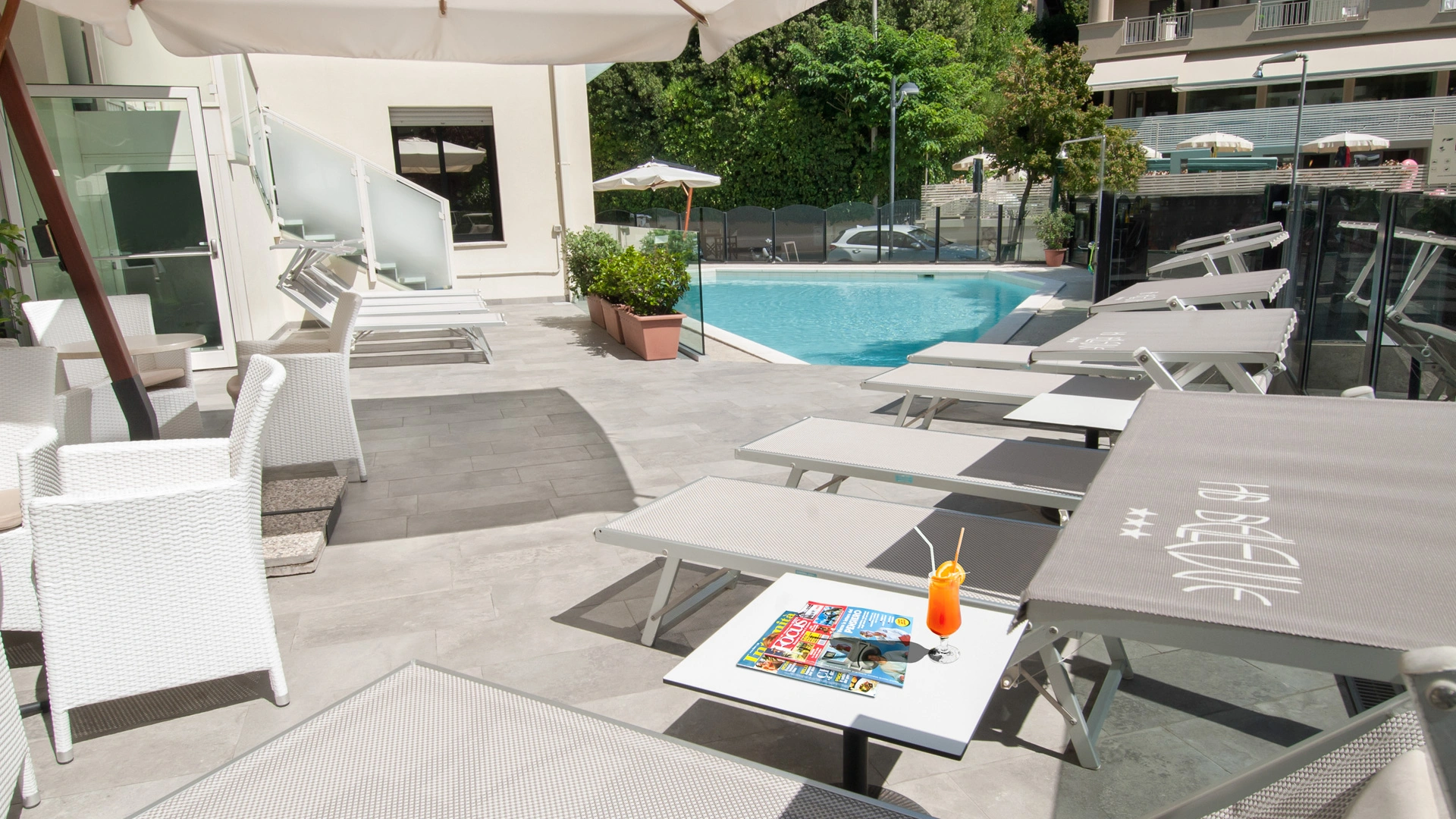 Outdoor swimming pool with small solarium area, free bicycles, open-air porch, bar with equipped outdoor area, elevator, night porter, paid laundry service, luggage storage. The staff organizes themed evenings. An agreement with the Cattolica Aquarium is available.
