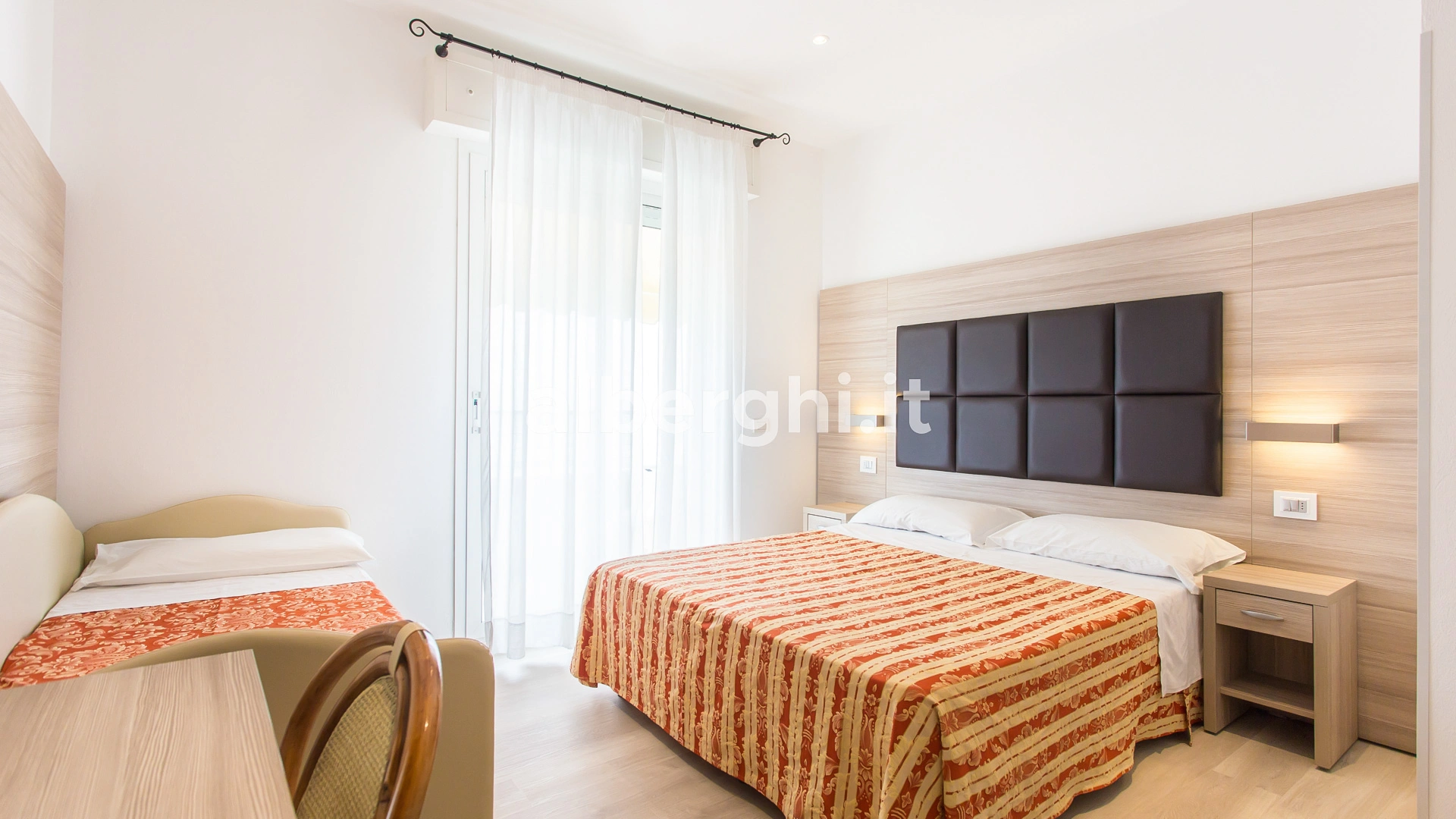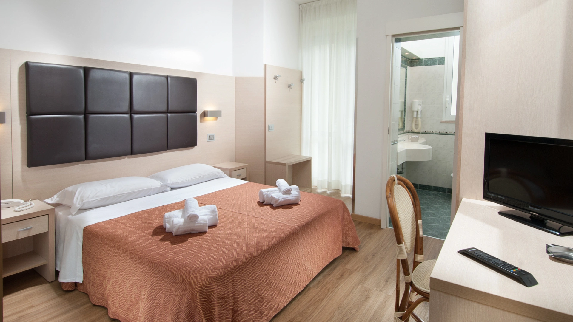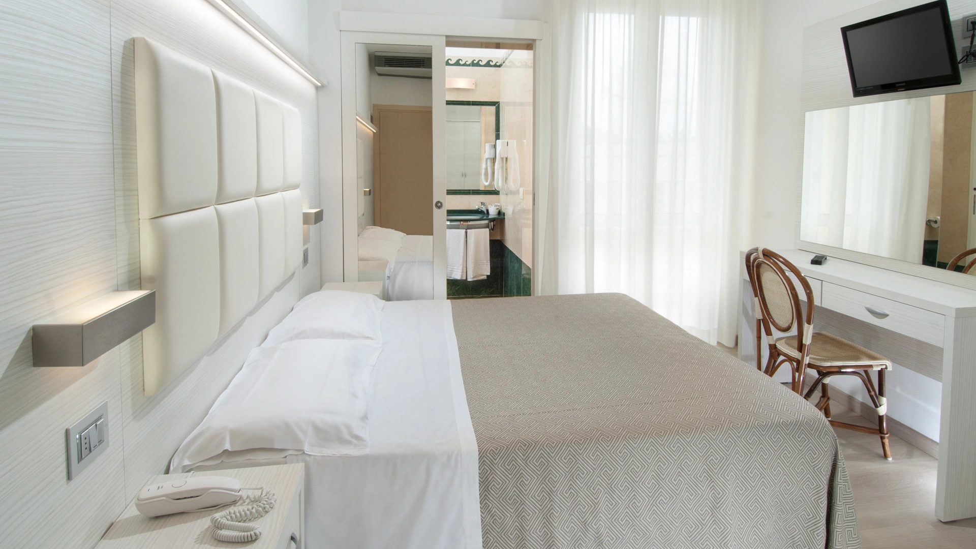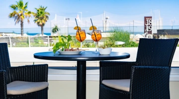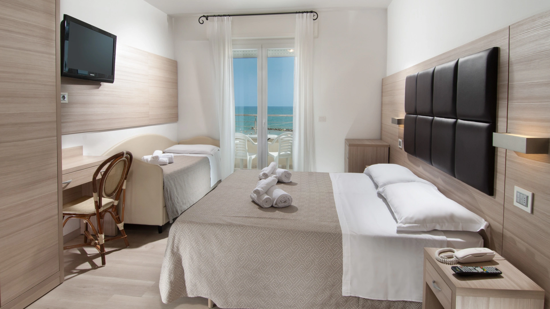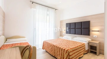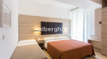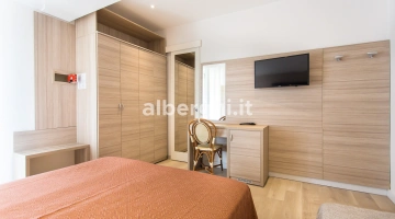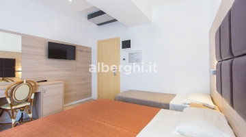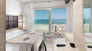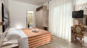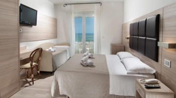 The rooms are equipped with balcony, air conditioning, Smart TV sat, minibar not stocked, Wi-Fi connection fiber 100 Mbit/s, safe, direct telephone, bathroom with shower box and hairdryer. It is possible to request rooms with sea view.