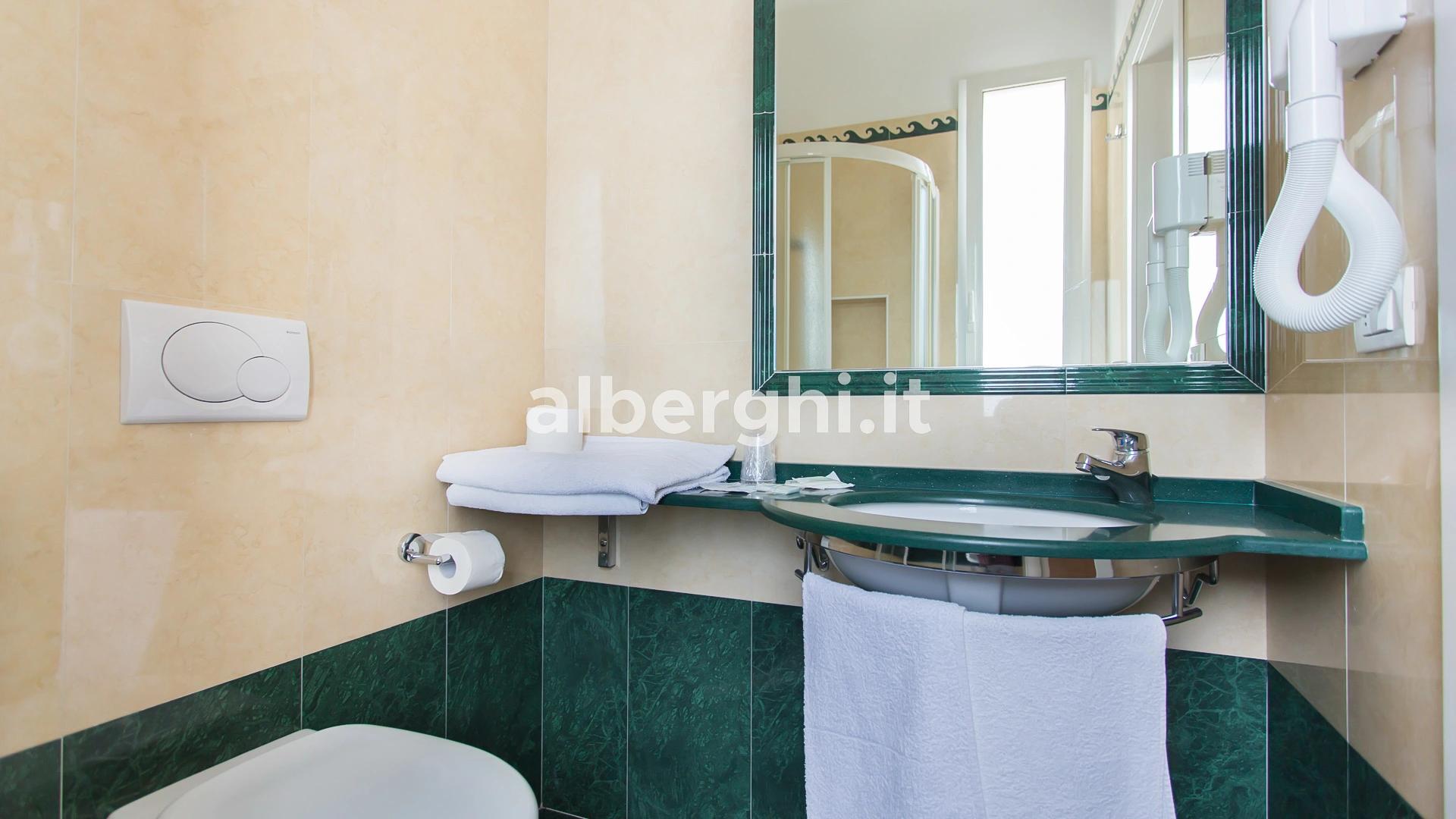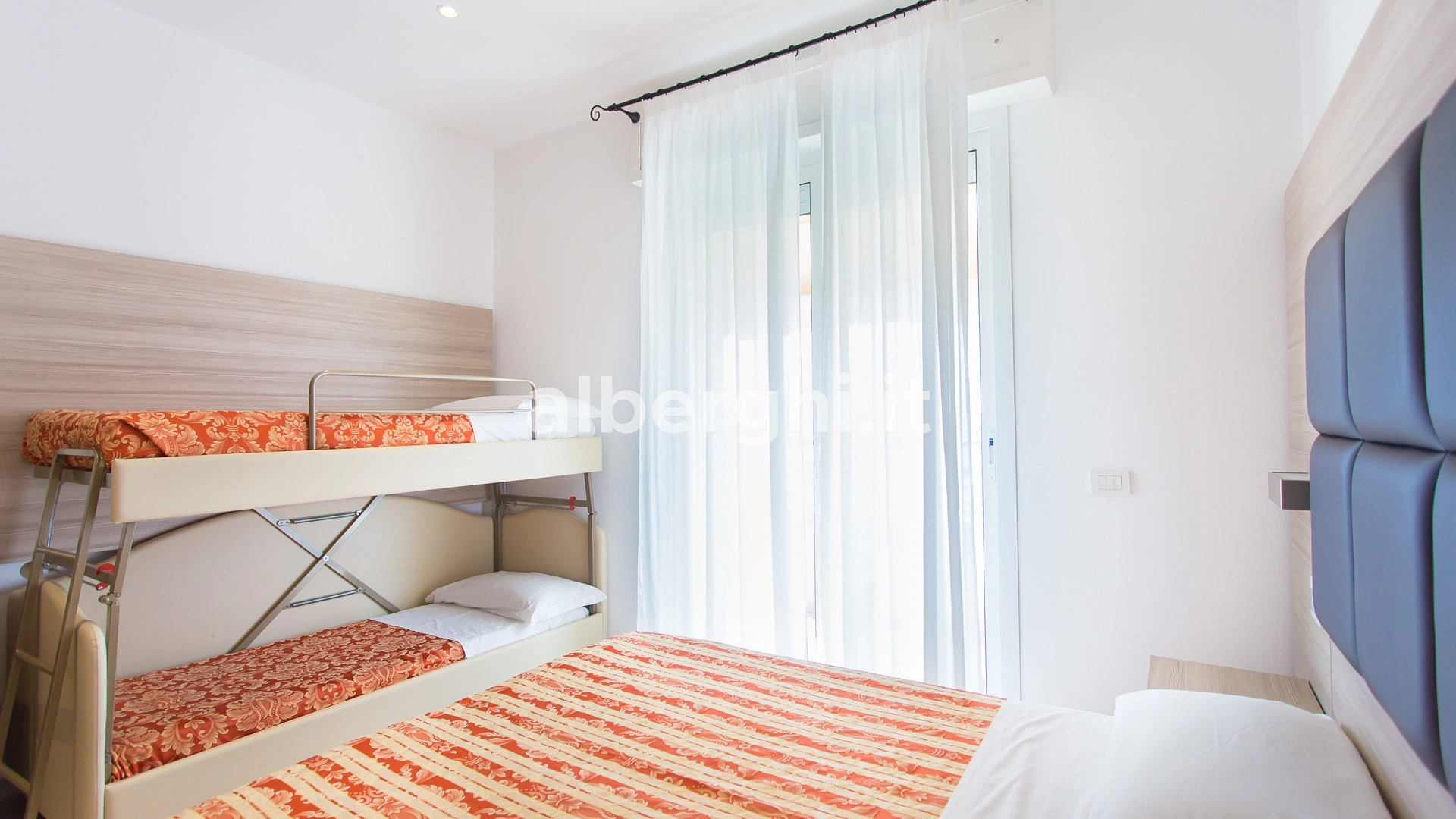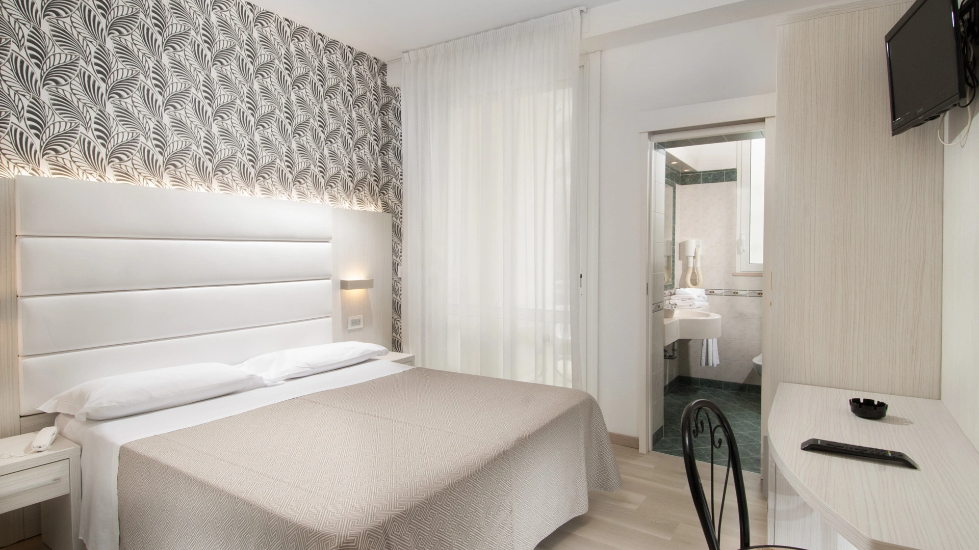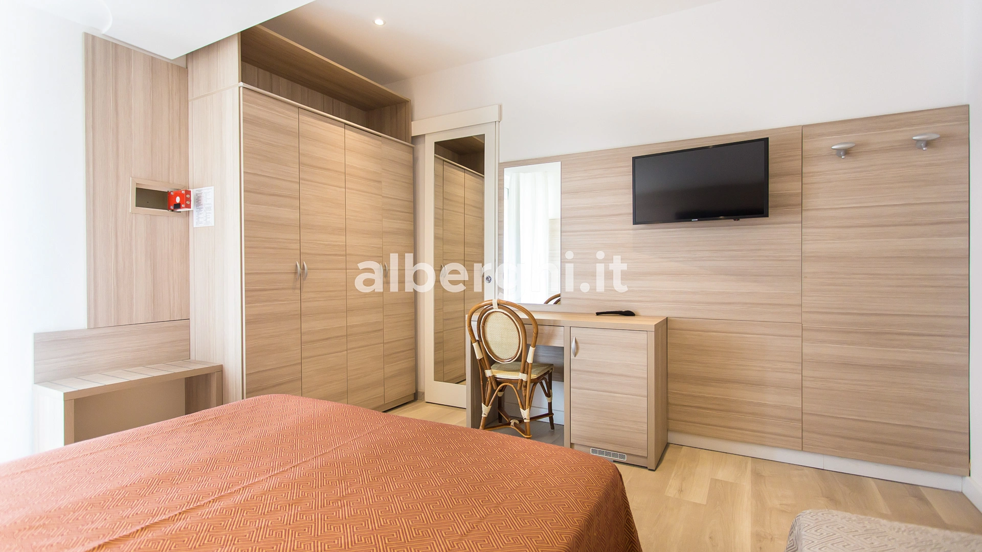 The rooms are equipped with balcony, air conditioning, Smart TV sat, minibar not stocked, Wi-Fi connection fiber 100 Mbit/s, safe, direct telephone, bathroom with shower box and hairdryer. It is possible to request rooms with sea view.
