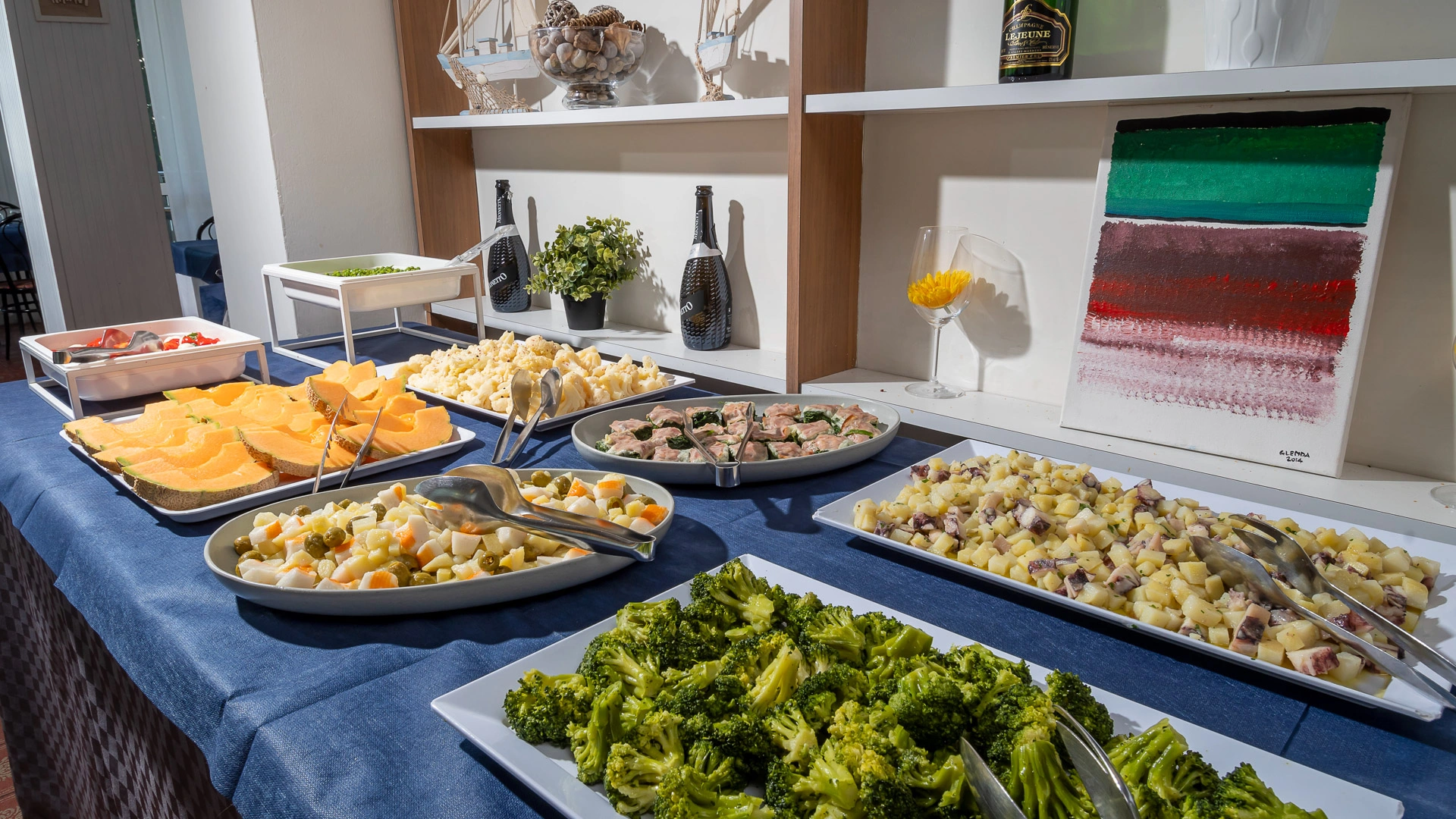 BREAKFAST: buffet with sweet and savory products including homemade cakes and desserts, mixed cold cuts, bread, biscuits, jams and yogurt.