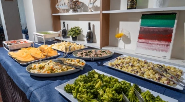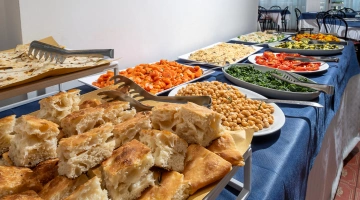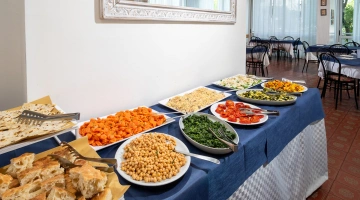 LUNCH AND DINNER: 3-choice menu with meat and fish (every day for lunch and dinner), buffet of appetizers, vegetables and salads. Pasta and desserts are homemade, drinks are included with meals, in all formulas.