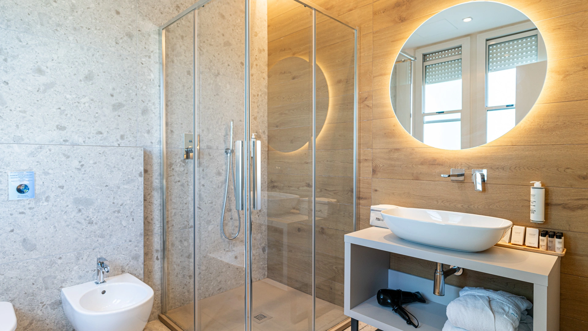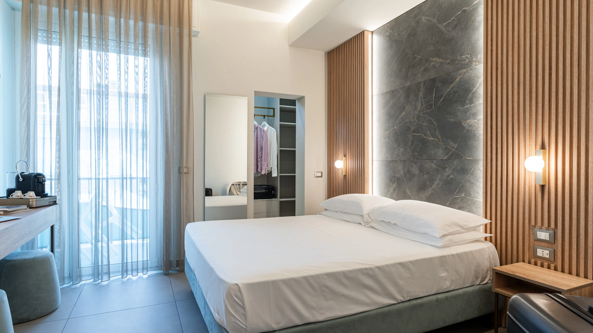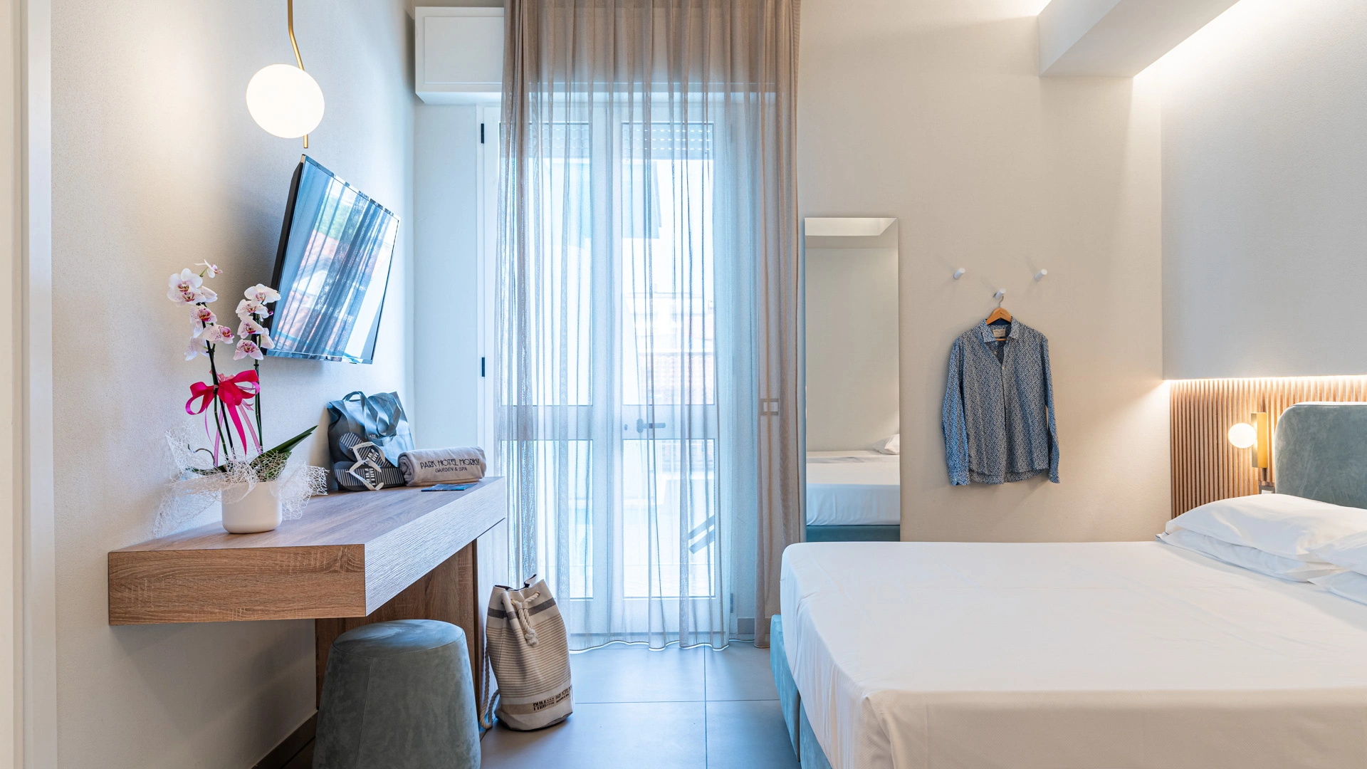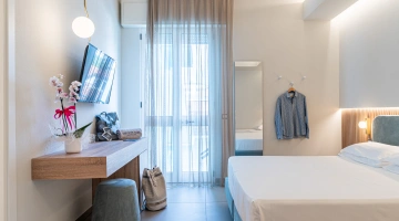 The rooms are equipped with balcony, air conditioning, Wi-Fi, satellite and digital terrestrial TV, safe, telephone, minibar, indoor clothesline, bathroom with shower cubicle, bathrobe and hairdryer.