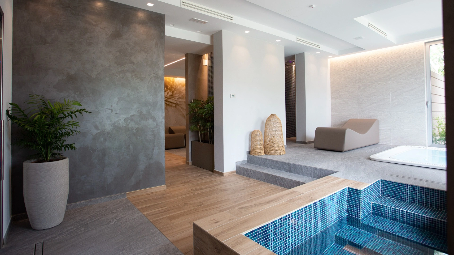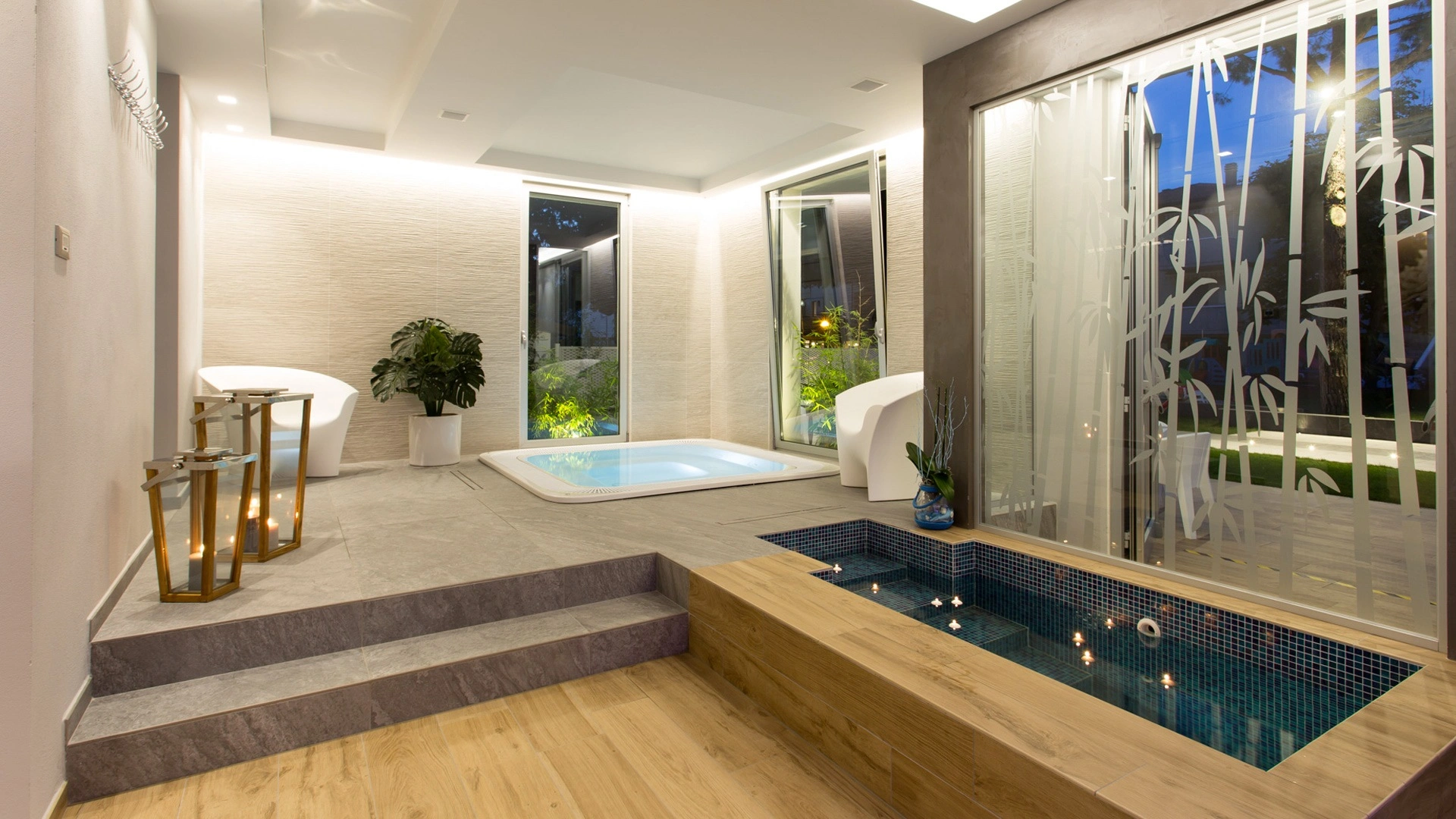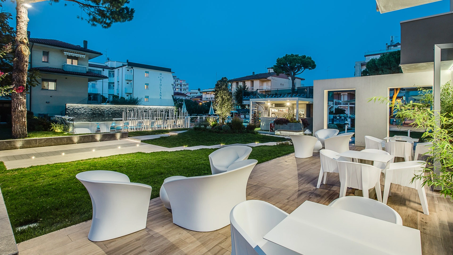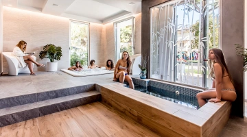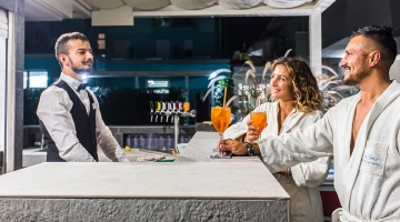 In the garden of over 500 m2 there is a wellness pool with 32° water, equipped with: hydromassage, vascular path, hydro chaise-longue beds, geysers, cervical waterfalls and lumbar hydromassage. Another swimming pool is located inside the Park hotel Morigi Garden & Spa where there is also a pool reserved for children with a waterfall and a depth of up to 50 cm. The pool area is surrounded by a large solarium area equipped with sun loungers, a shaded terrace with Pool Bar where you can enjoy aperitifs.