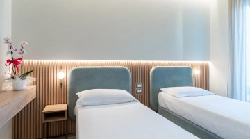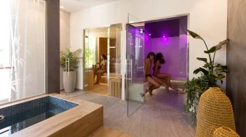 The hotel has a 130 m2 wellness center; equipped with a relaxation area, swimming pool, hydromassage, Finnish sauna and Turkish bath with aromatherapy and chromotherapy. There is no shortage of beauty treatments and massages. Access is available at an extra price and reservations are recommended for some services.