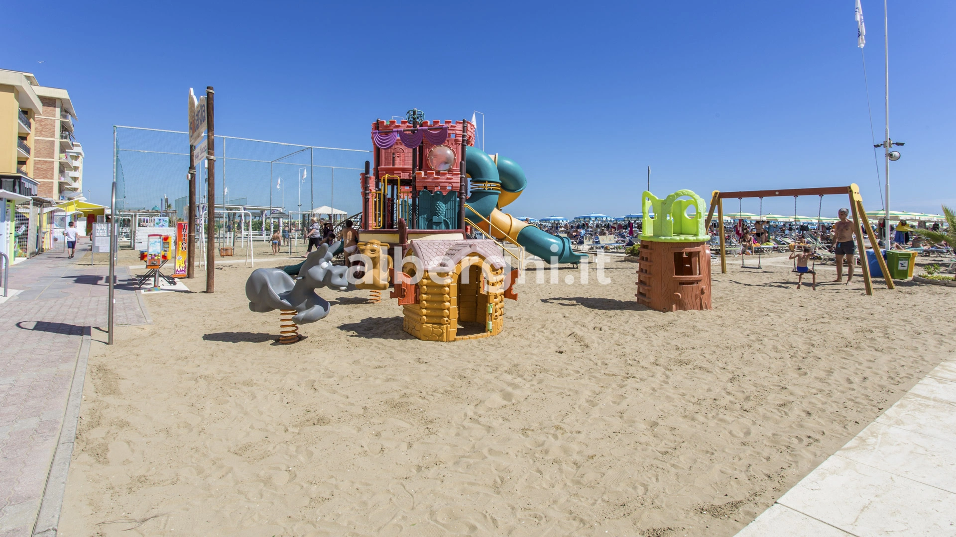 Guests have access to the swimming pool located on the beach, 200 m2 large and 100 to 160 cm deep, with slides and sun loungers at the edge of the pool.