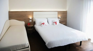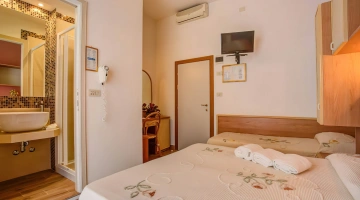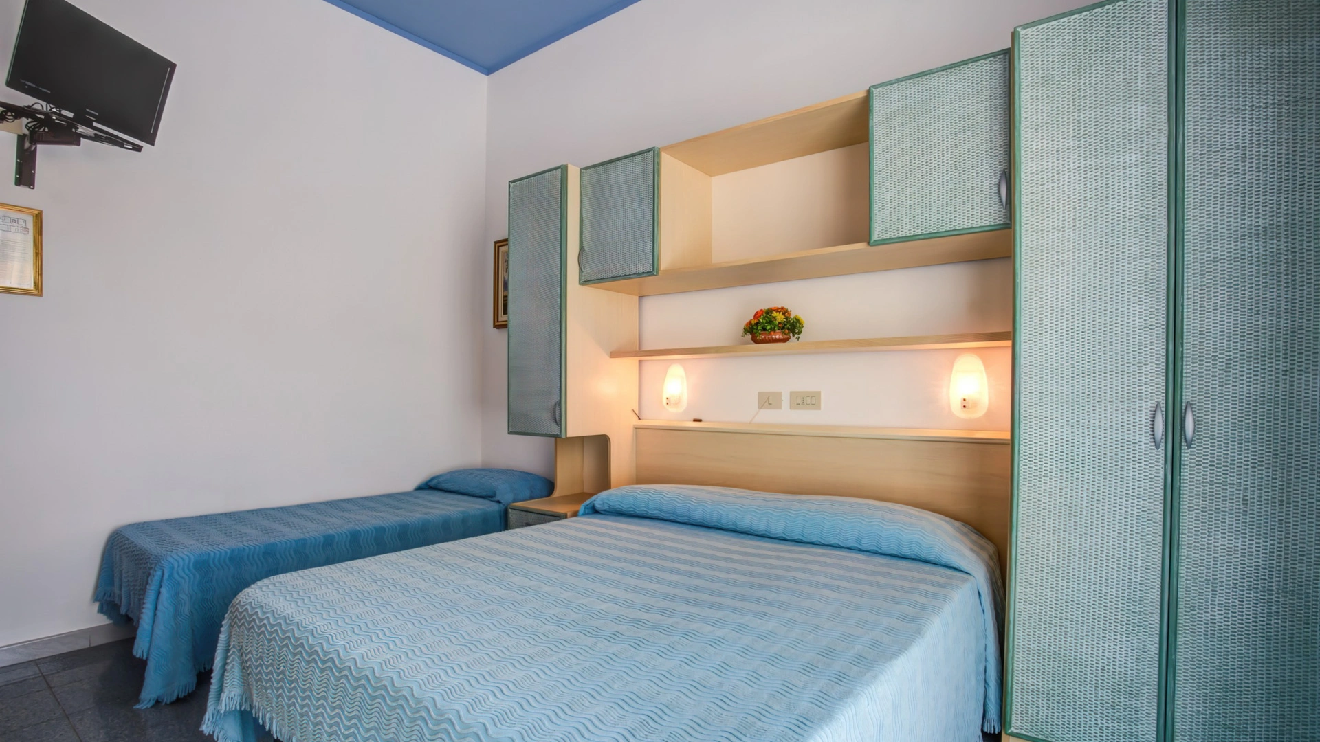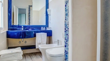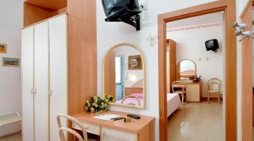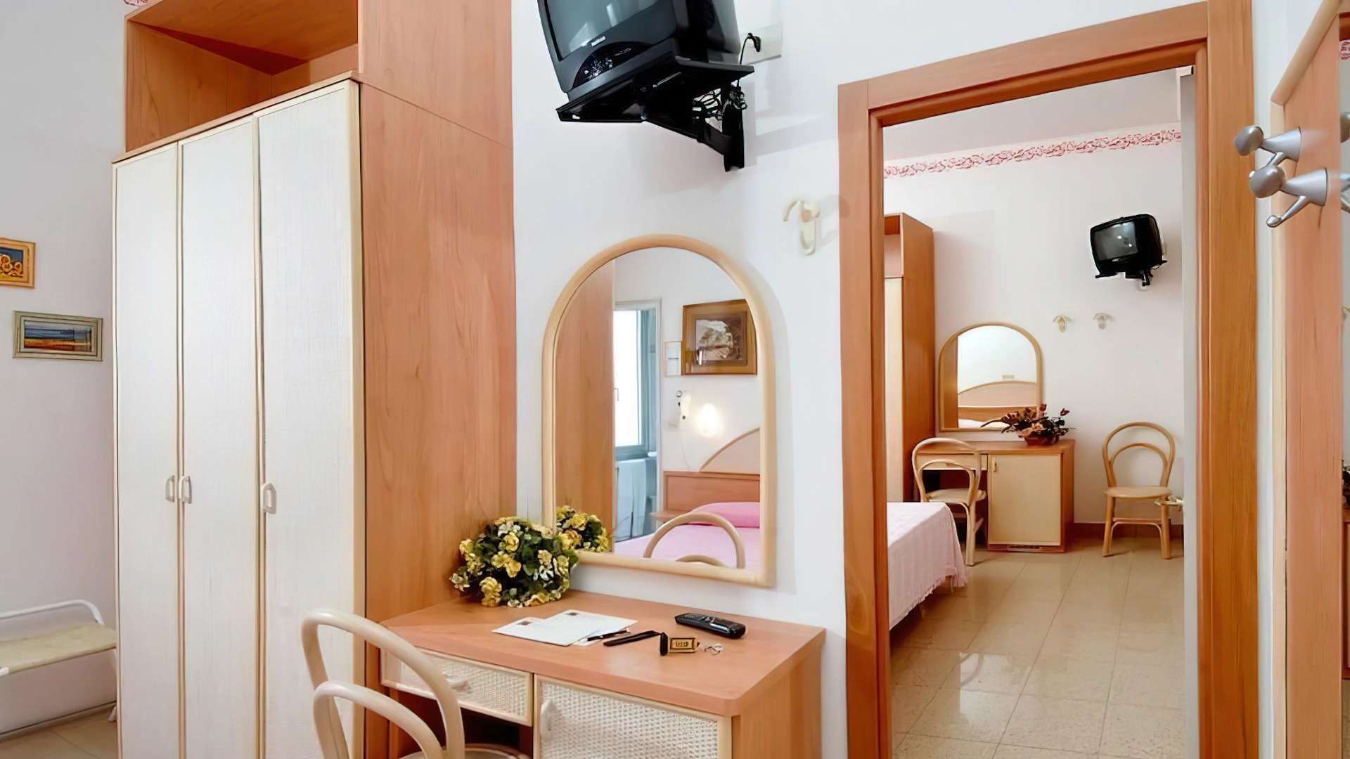 The rooms have a balcony with sea view, air conditioning, Wi-Fi with 100 Mbit/s fiber, satellite TV, safe, telephone, non-stocked minibar (on request, for a fee) bathroom with shower, hairdryer and courtesy set. The property also offers some apartments in the adjacent streets.