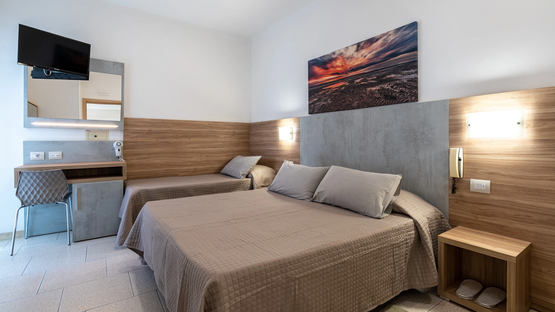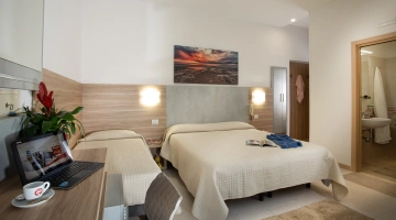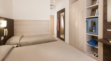 FAMILIES: large and welcoming rooms are available (about 25 m2), ideal for families or groups of friends, with a double bed and two single beds (no bunk beds).