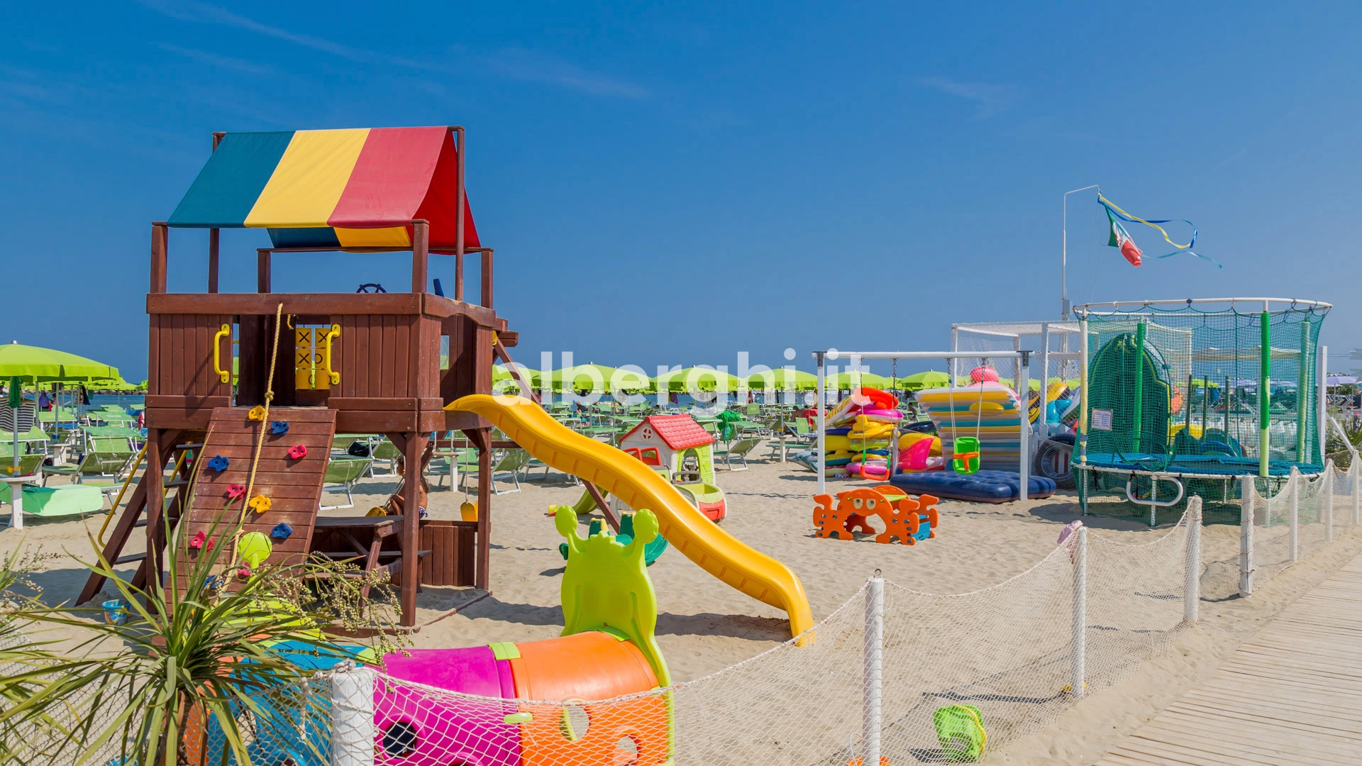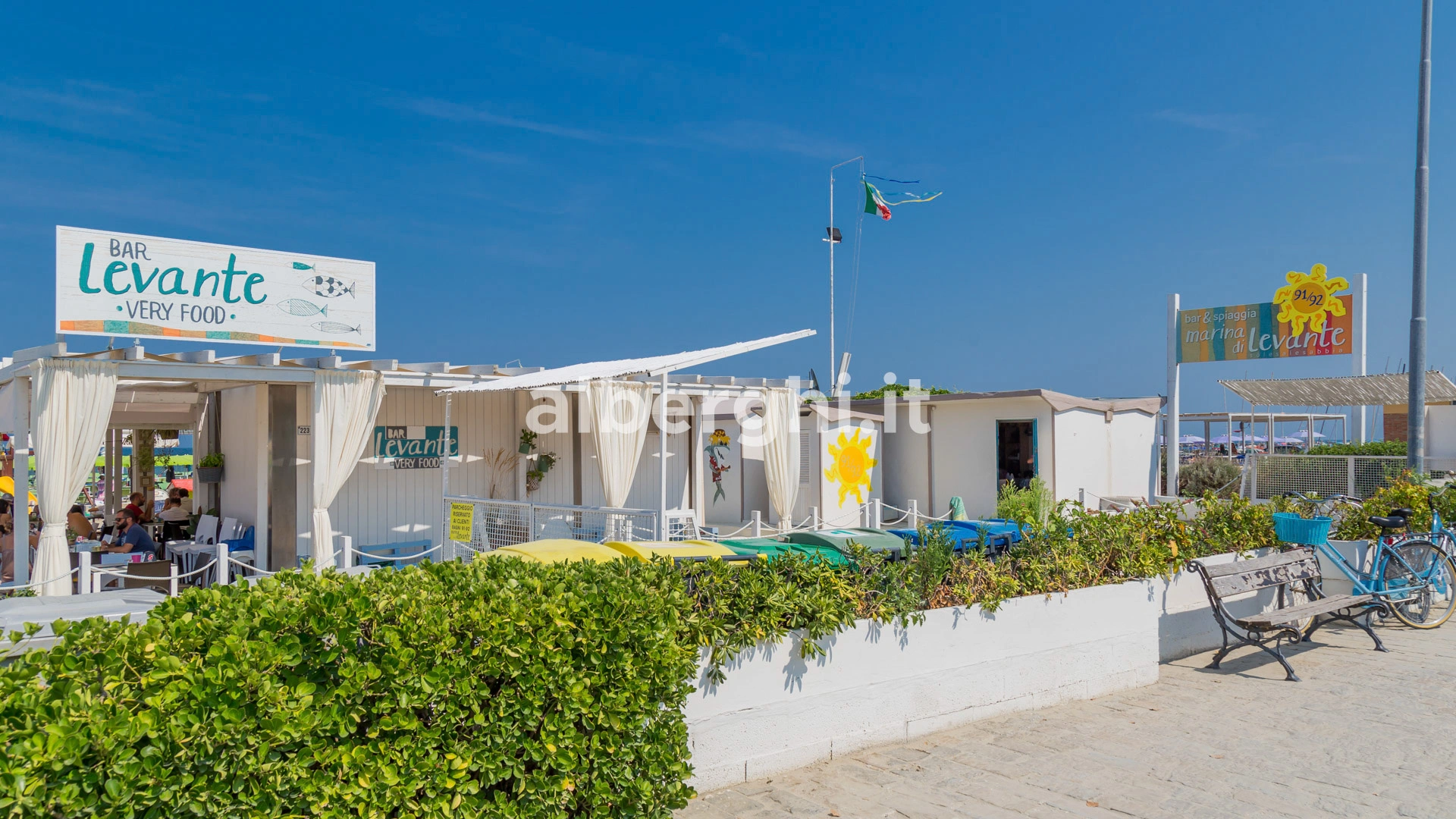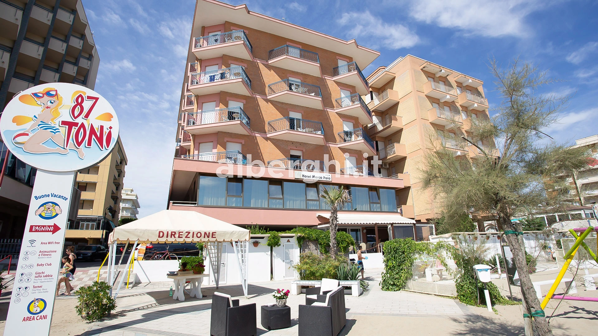 The facility has an agreement with Bagno Toni n.87 and Bagno Marina di Levante n.91-92, equipped with sunbed and umbrella rental, relaxation areas, entertainment, playground area, baby club and sports fields.