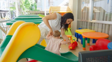 At meals: on request, baby food menus with vegetable broths and vegetable purees, early meals, hot milk in the evening, placemats, cups and high chairs.