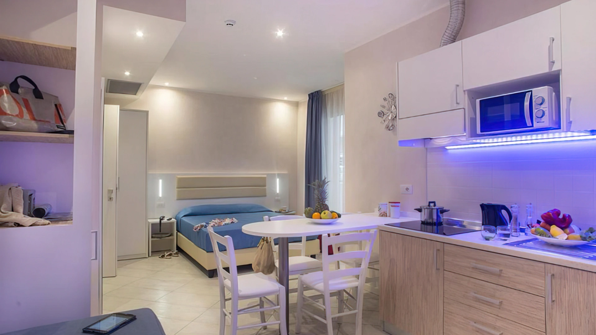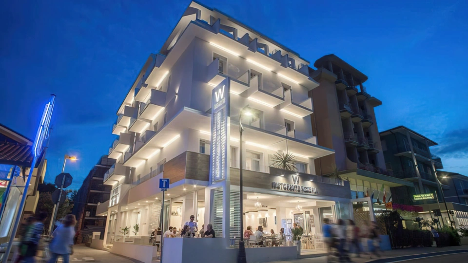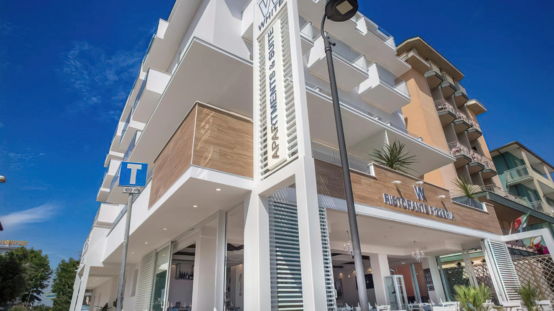 The White Residence, a 3-star superior hotel in Igea Marina managed by the Ricci family, is a new structure located near the center and right in front of the sea. It has apartments of various types suitable for hosting up to 7 people and offers the possibility to have lunch and dinner at the pizza restaurant on the ground floor. It admits small and medium-sized animals.