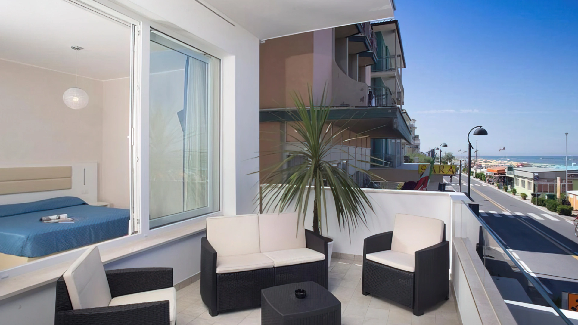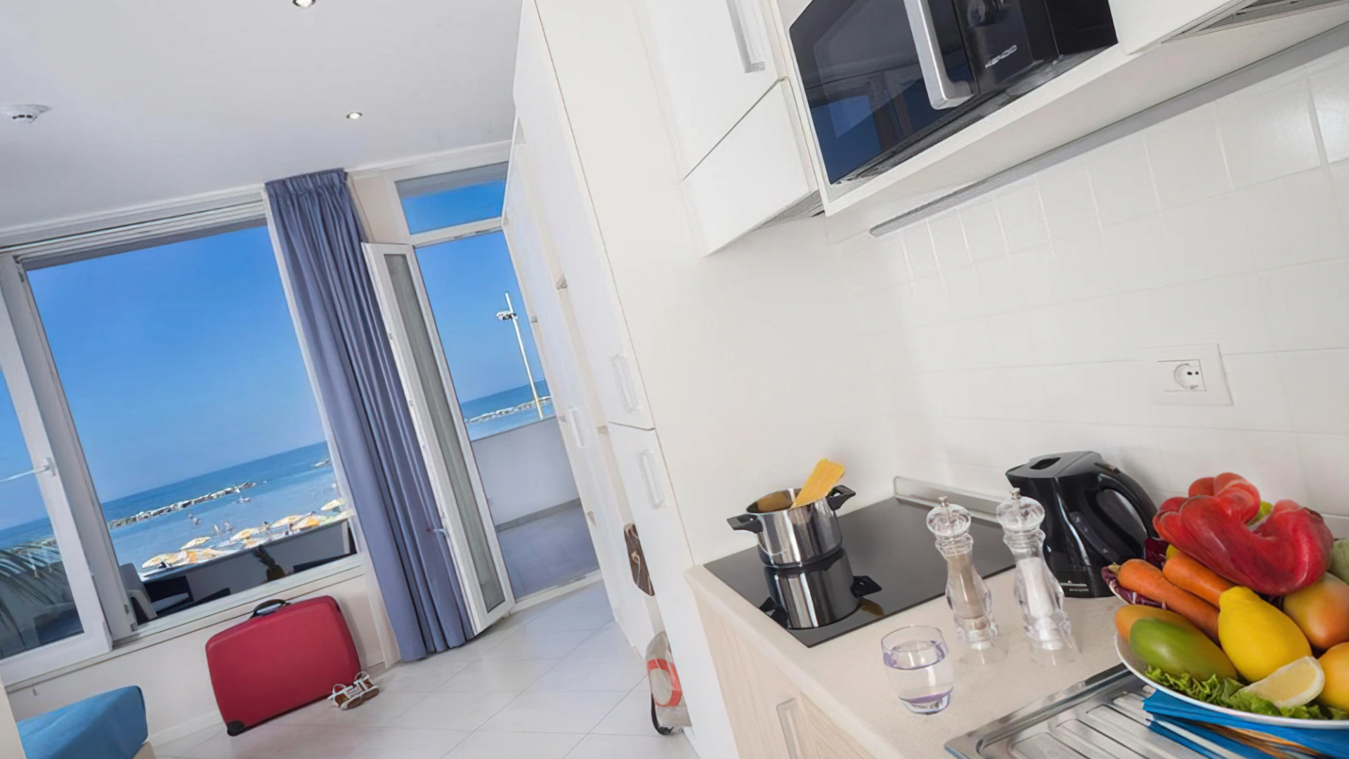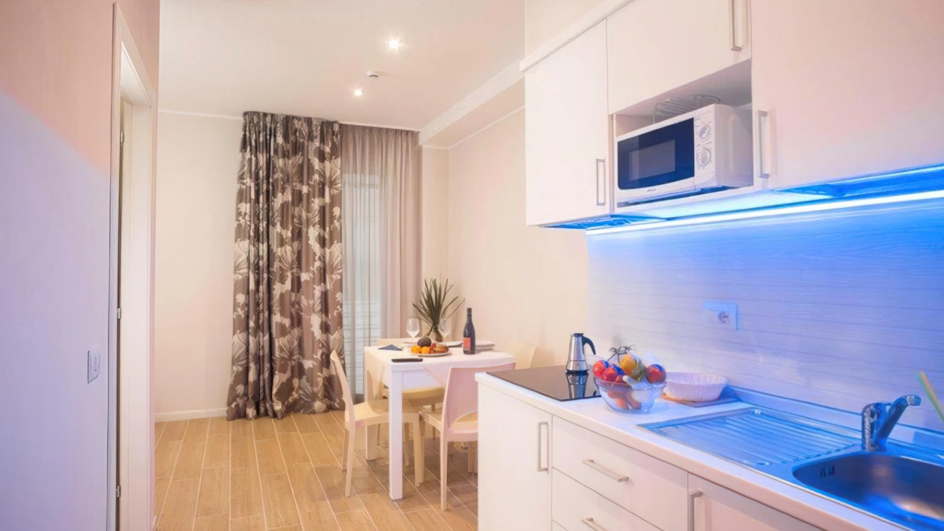The White Residence, a 3-star superior hotel in Igea Marina managed by the Ricci family, is a new structure located near the center and right in front of the sea. It has apartments of various types suitable for hosting up to 7 people and offers the possibility to have lunch and dinner at the pizza restaurant on the ground floor. It admits small and medium-sized animals.