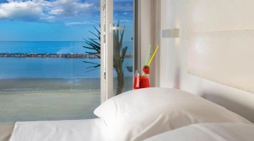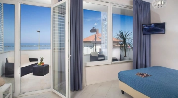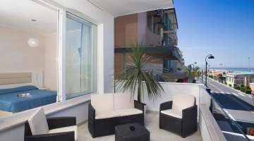 BEACHFRONT TWO-ROOM APARTMENT: they can accommodate up to 6 people and have two balconies overlooking the sea, a bedroom with the possibility of placing up to 4 beds and a living area with a double sofa bed.
