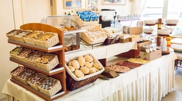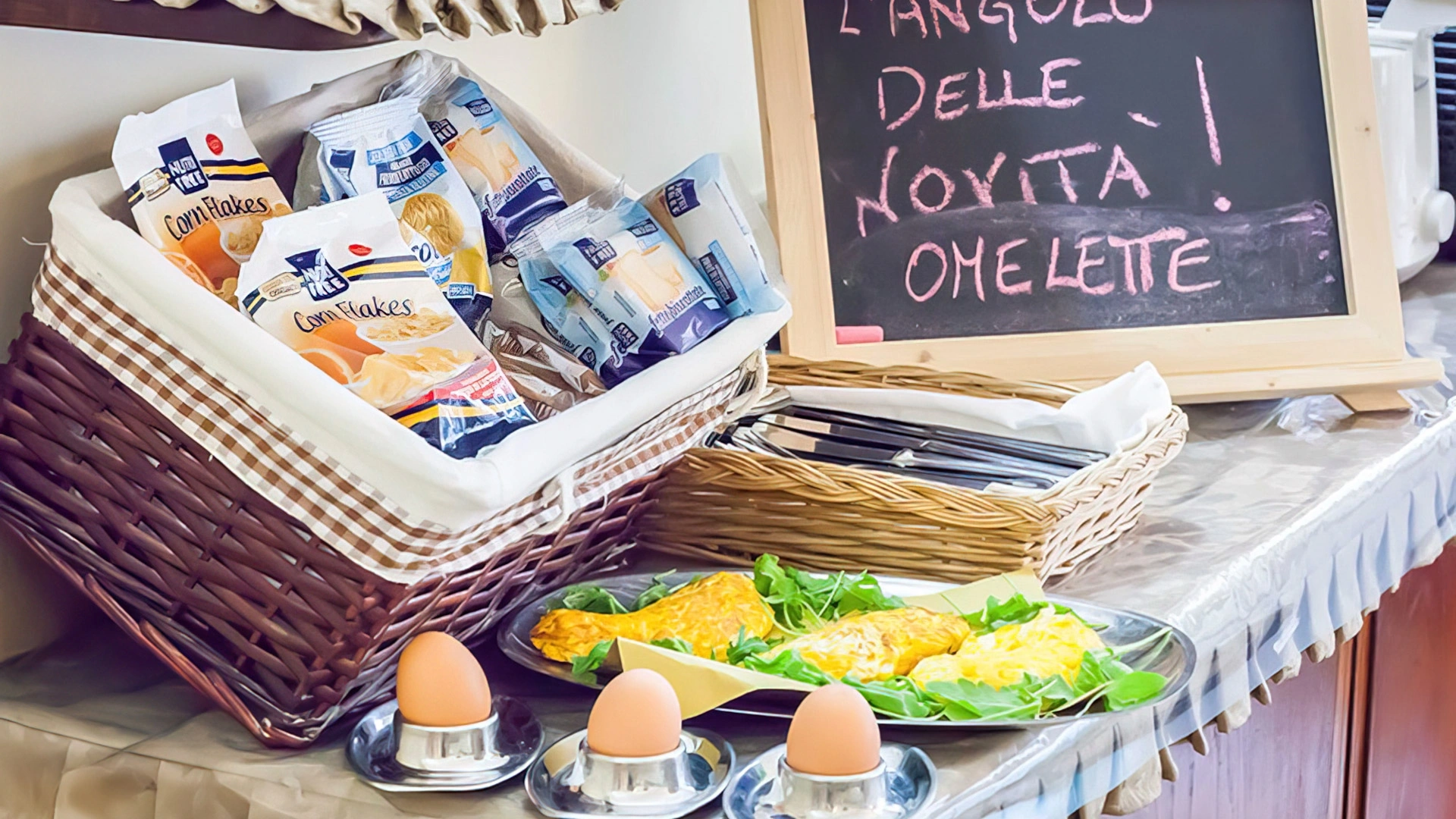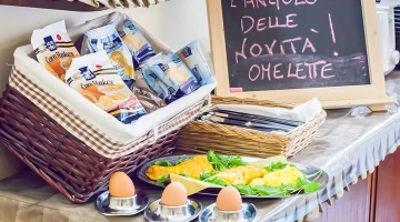 BREAKFAST: served on the terrace and consisting of a sweet and savory buffet, with cheeses, cold cuts, croissants, yogurt, homemade cakes, fruit juices.
