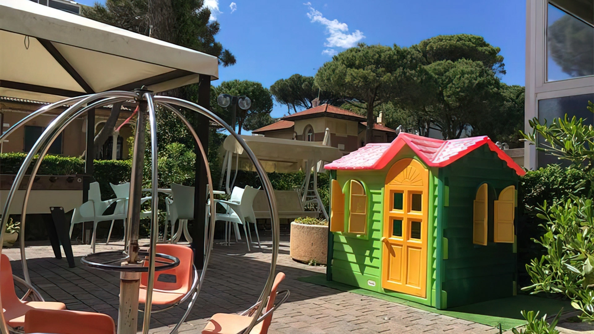 Garden equipped with solarium and sunbeds, sofas, tables, a large open-air porch and a children's playground area, free use of bicycles also with child seat, lift, bar area, restaurant, TV room, newspapers for consultation. The property organizes themed evenings.