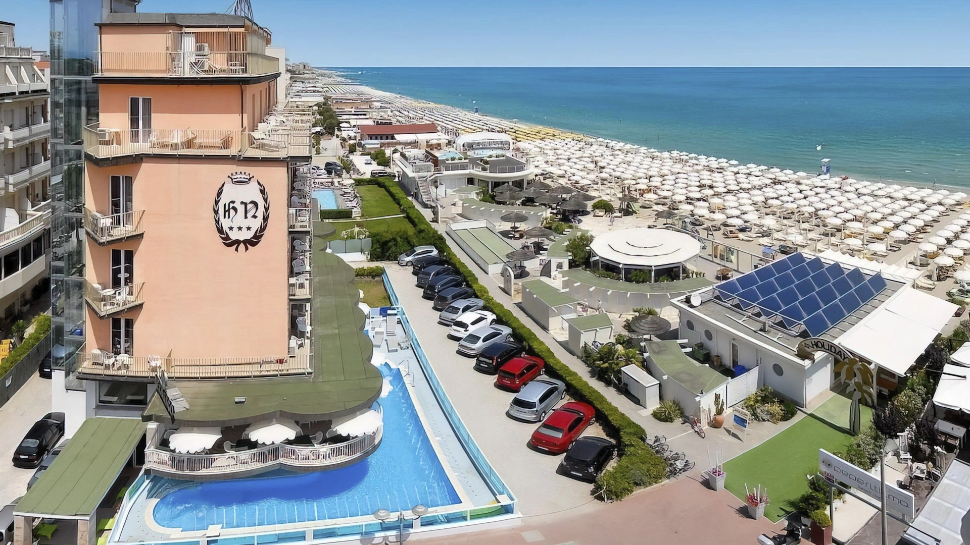 The hotel is located in Milano Marittima in a seafront position and with direct access to the private beach (available on request). Just over a 10-minute walk away you can reach the center and the Rotonda I Maggio.