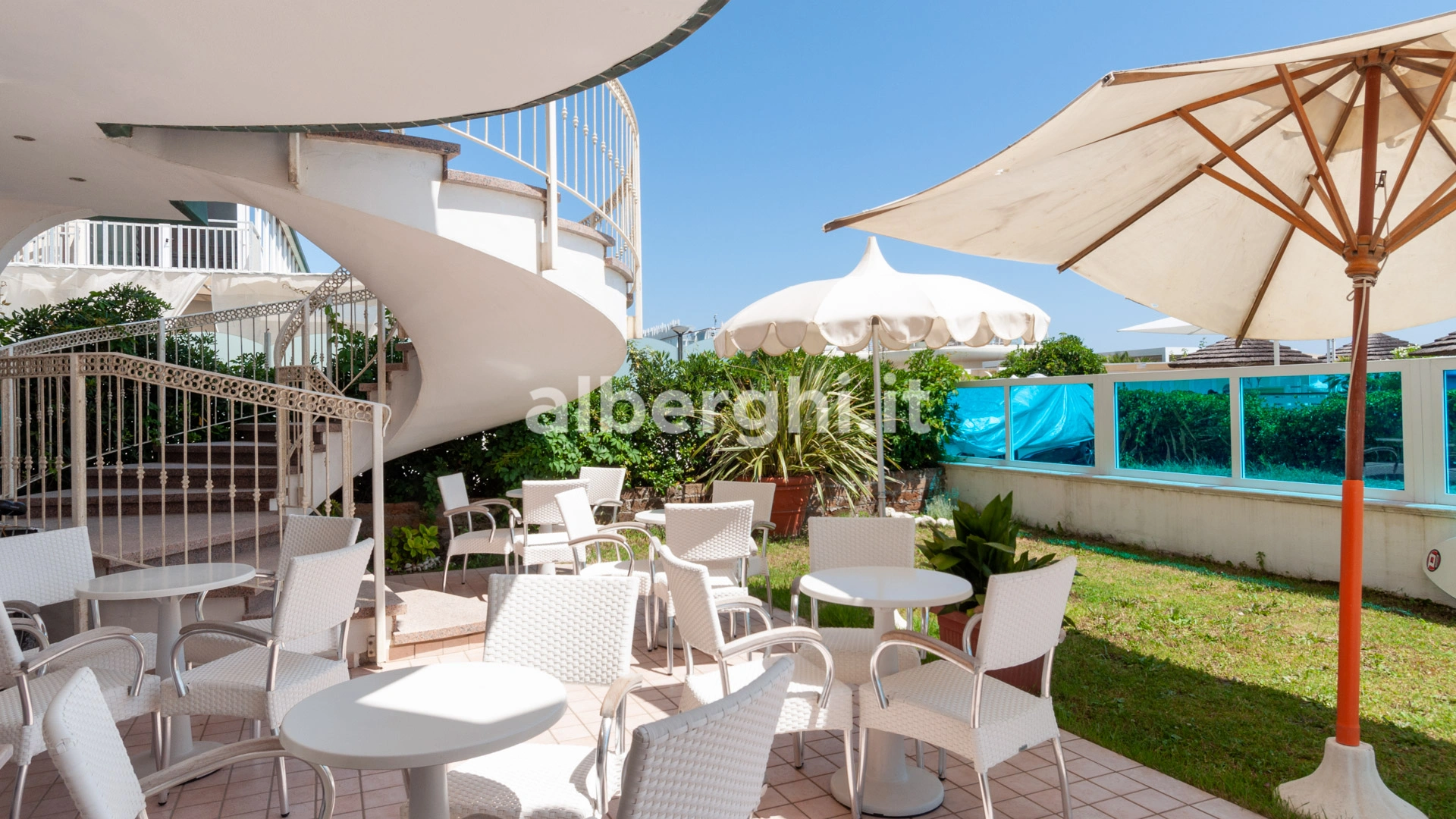 Garden area, open-air porch, panoramic terrace, heated swimming pool, children's pool, 2 hydromassage areas, solarium with sun loungers, elevator. For a fee: laundry service, beach towel.