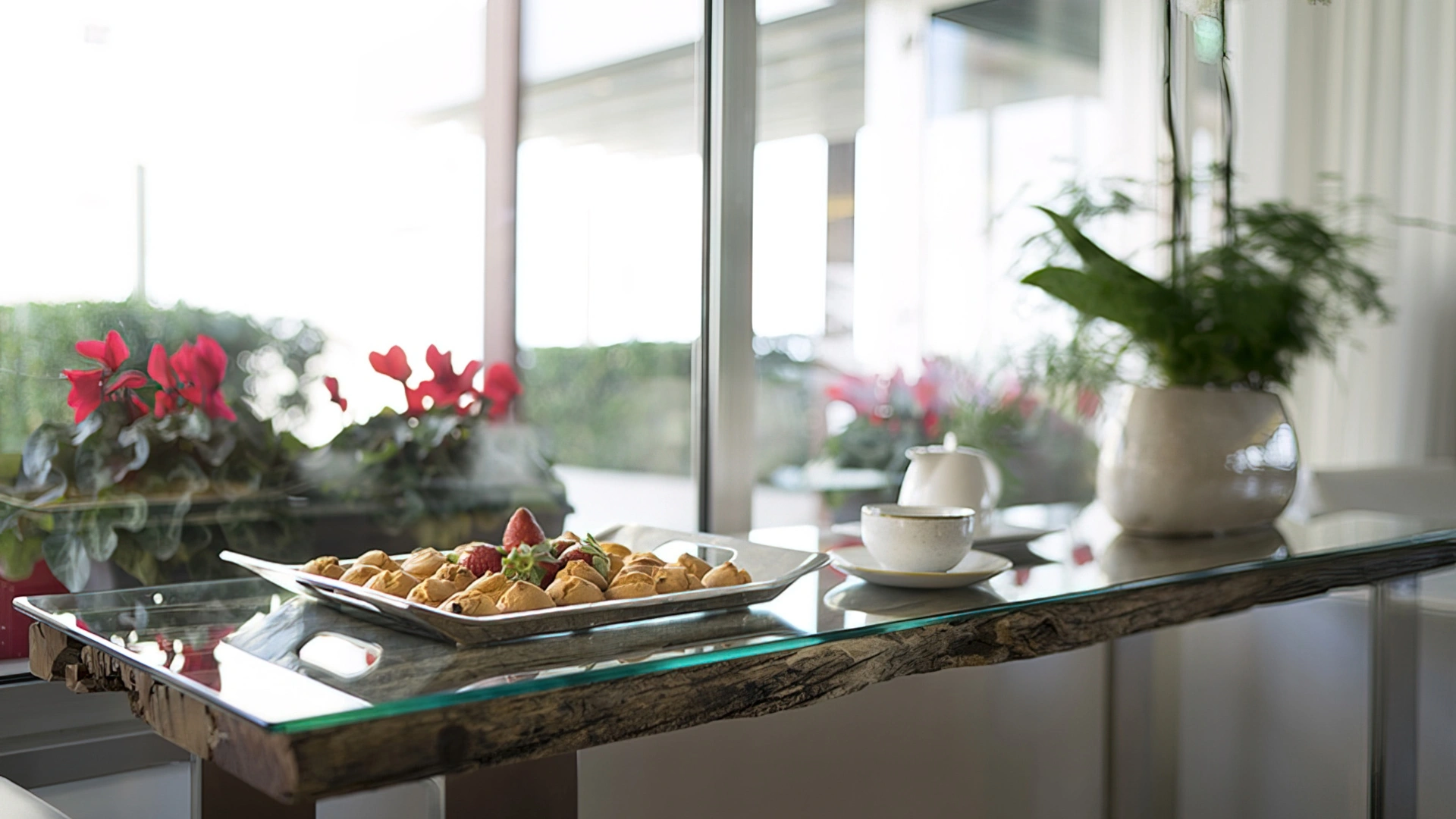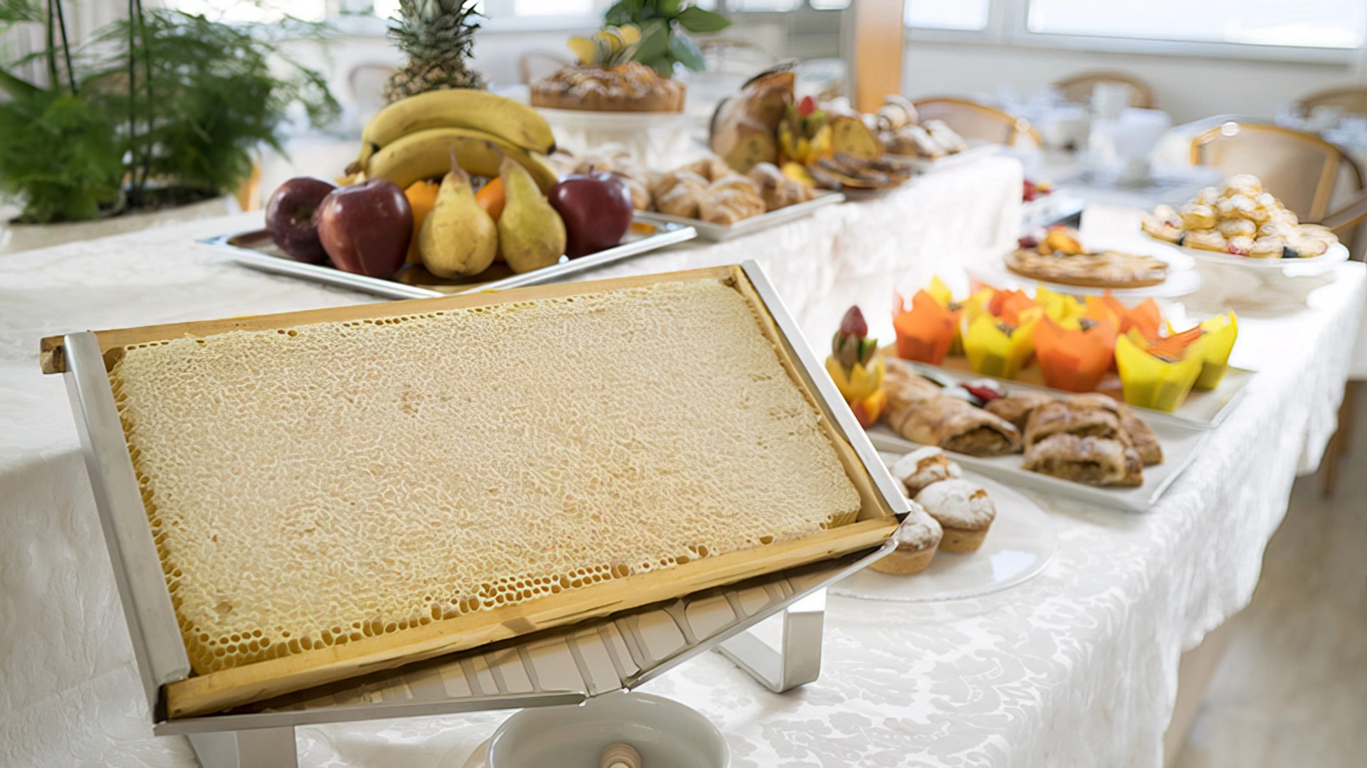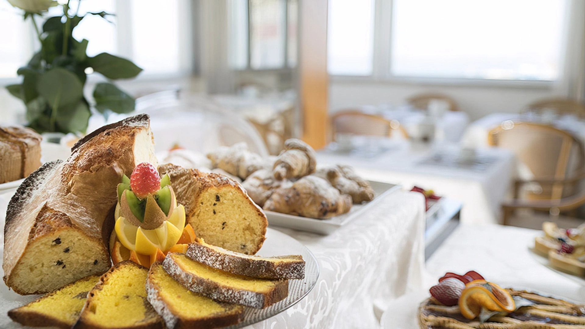 BREAKFAST: is served in a panoramic room with the possibility of an outdoor terrace. The buffet is set up with sweet and savory dishes, homemade desserts, croissants, yogurt, cereals, jams, fresh fruit, cheeses, eggs, cold cuts, organic corner, diet products and espresso coffee drinks.