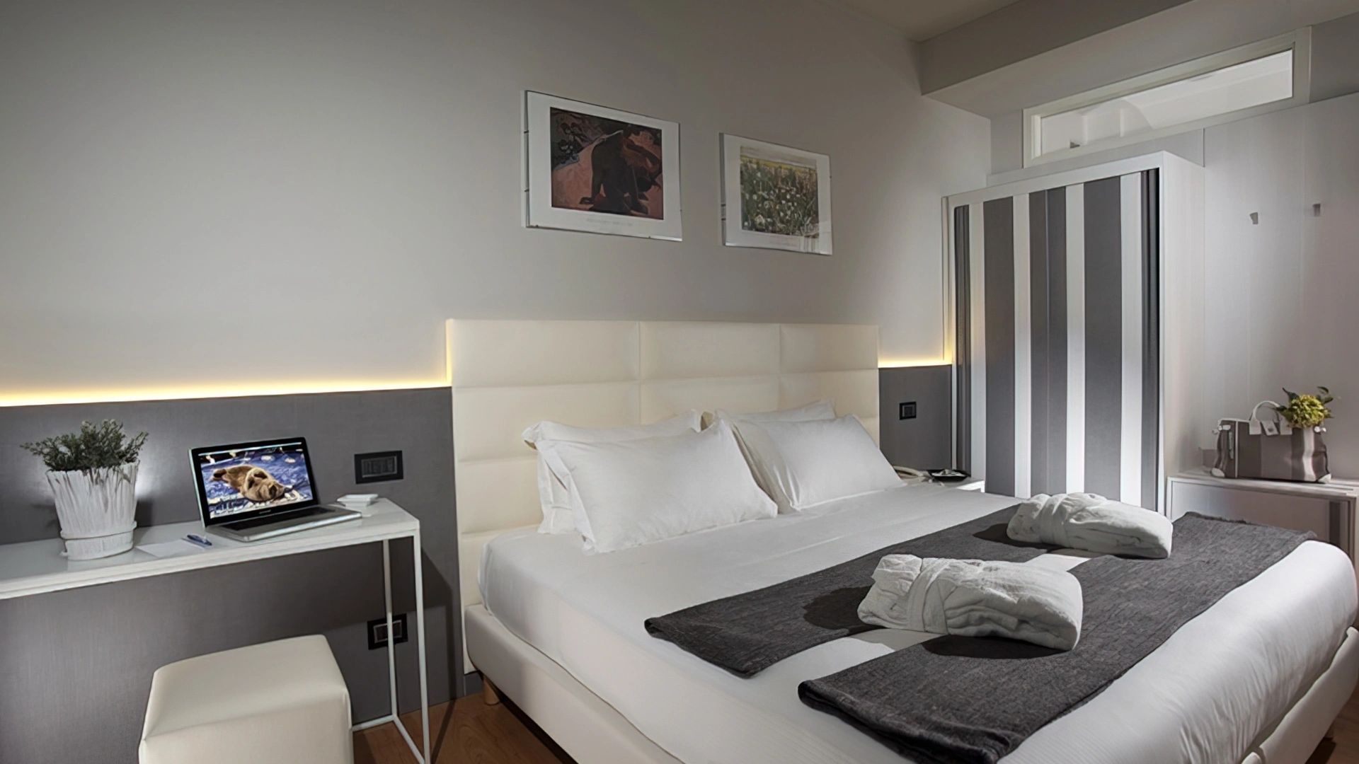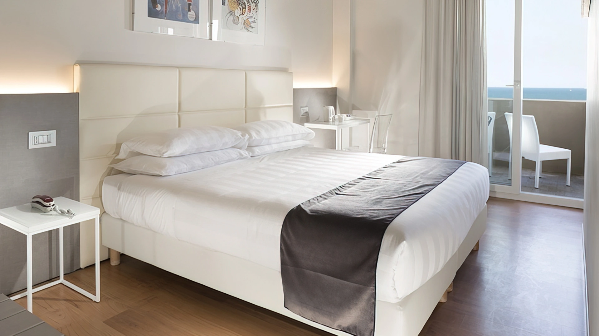 DELUXE: it is characterized by the presence of a large terrace with a frontal view of the sea, electric shutters, 32" TV with Sky channels.