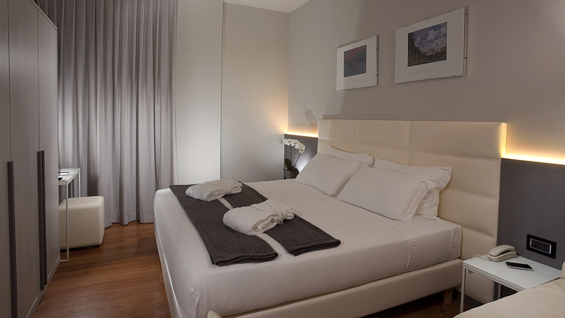 Hotel guests can book access to the internal wellness center. It is a very large space (about 200 square meters) that houses a Turkish bath, aromatherapy, hydromassage, emotional showers, Finnish sauna, ice waterfall, chromotherapy, relaxation area and the possibility of massages. No children under 16 years of age allowed, others can access for a supplement and there is also the possibility of exclusive use. Wellness kit provided.