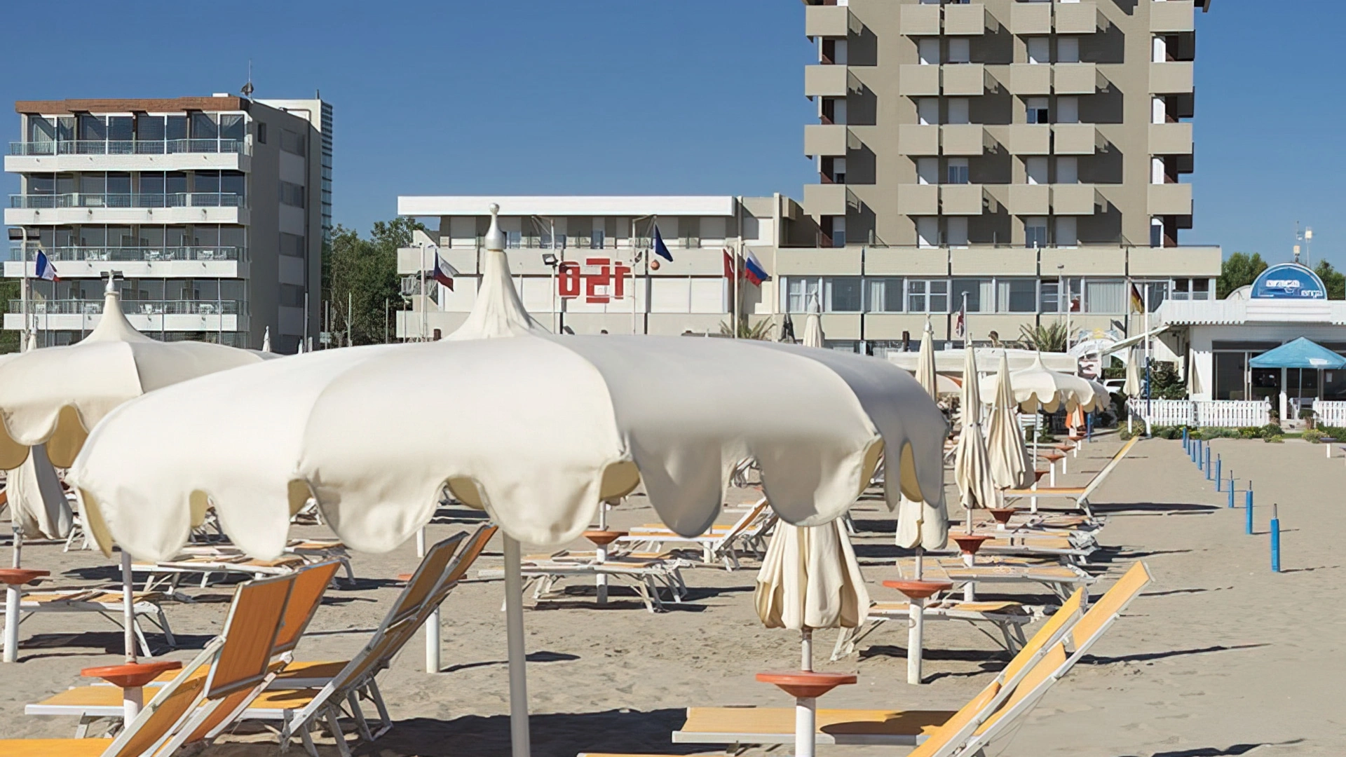 The hotel is located in a privileged position with a direct view of the beach, which is in front of the hotel. It is located in Miramare, a southern hamlet of Rimini, a short distance from Riccione, and is the ideal solution for those who want to reach Rimini Terme (on foot in a few minutes) and for those who love a dynamic holiday. The seafront, in fact, is conveniently connected, with a scheduled bus, both to Riccione and to the historic centre of Rimini with various intermediate stops in the main tourist places of the Riviera.