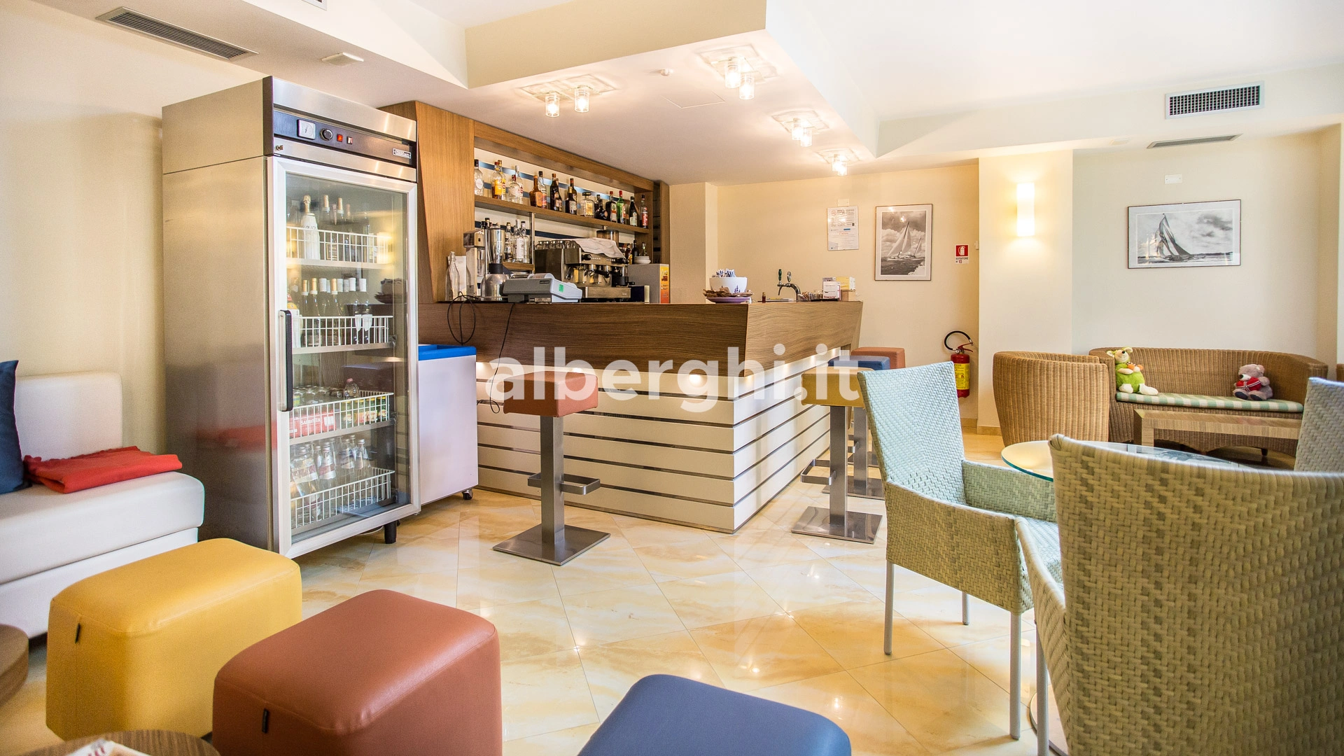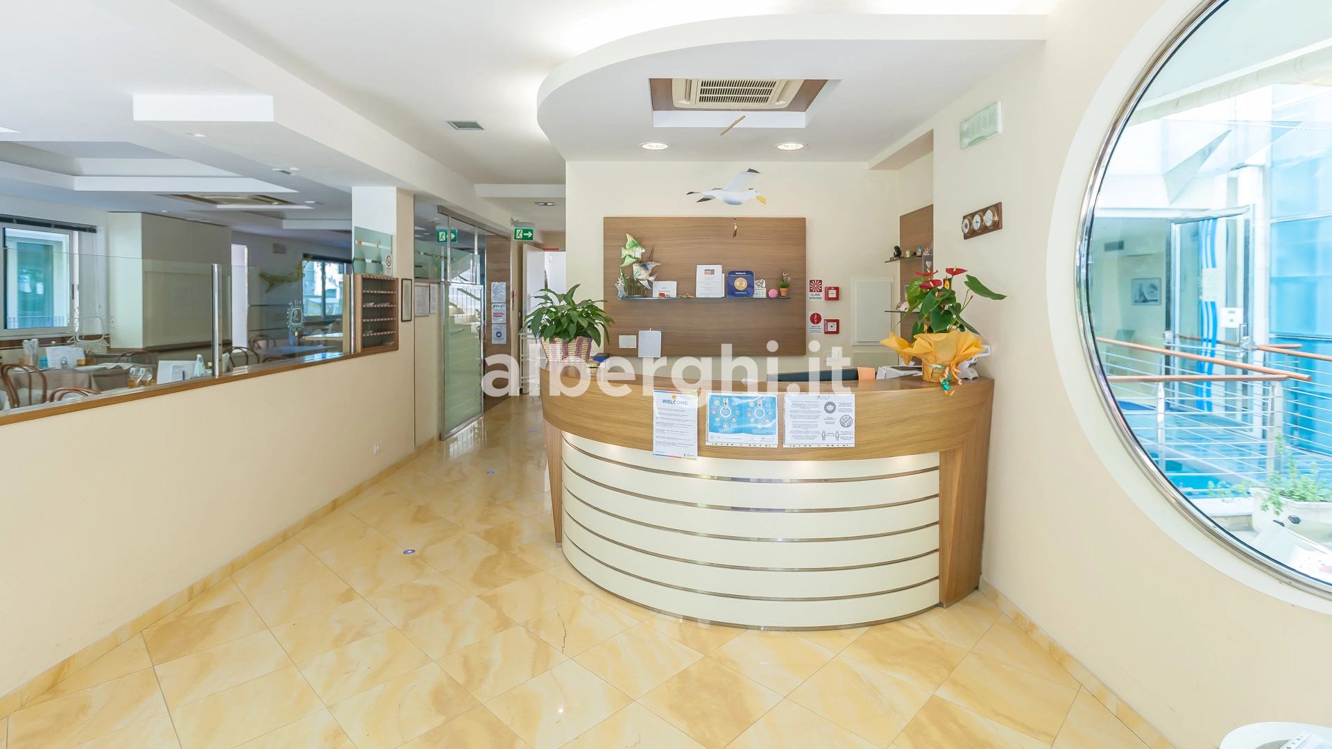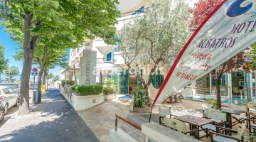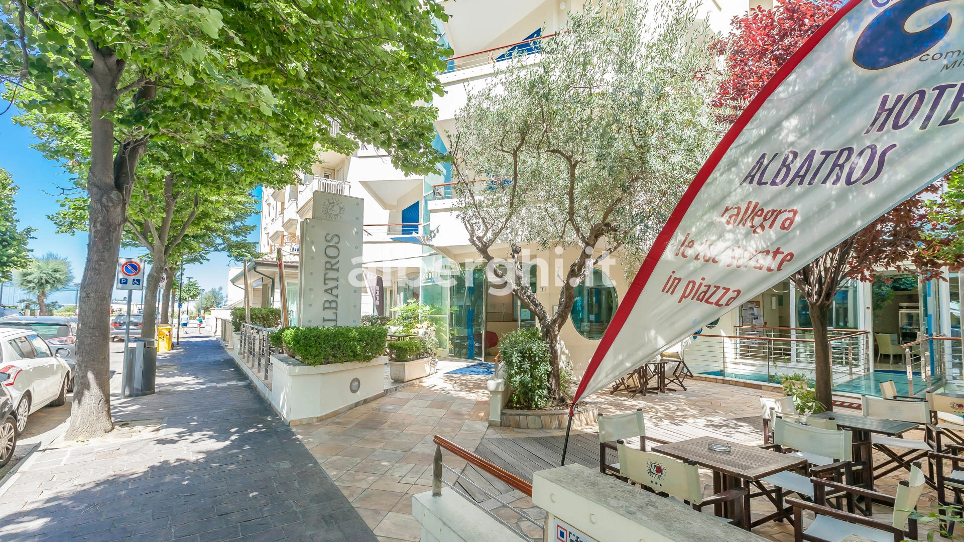 A few steps from the beach, Hotel Albatros in Misano Adriatico has parking, air conditioning, a garden, Wi-Fi and a tavern with a reading area and books available. Small pets are allowed.