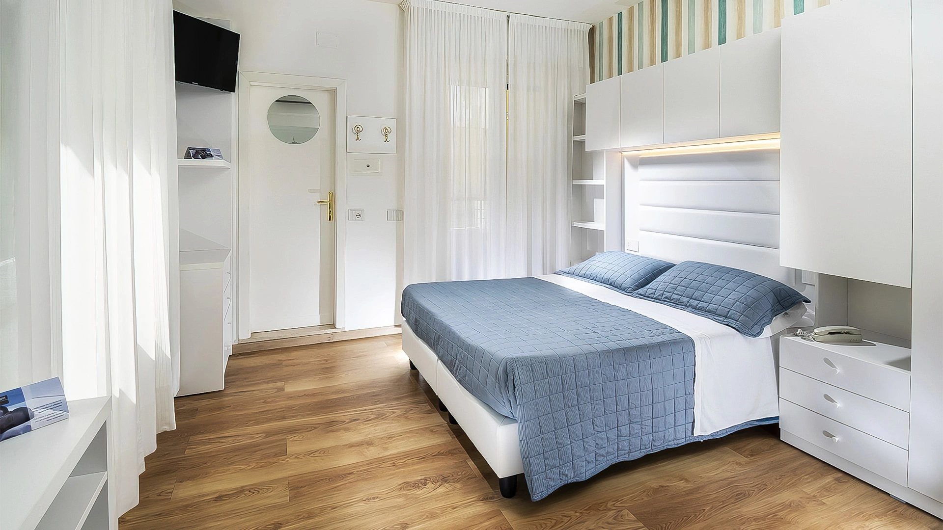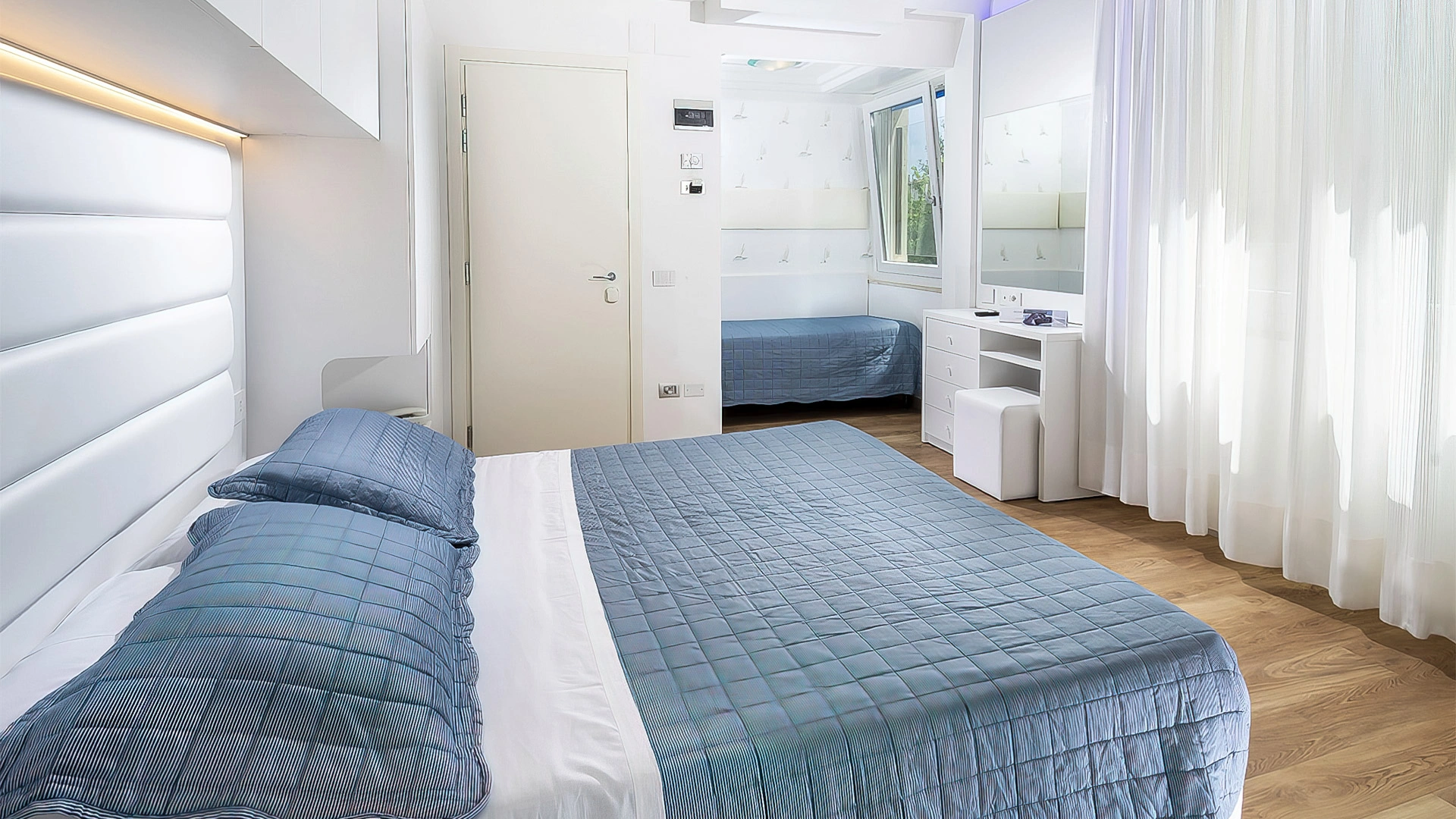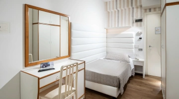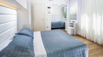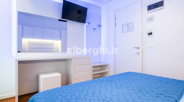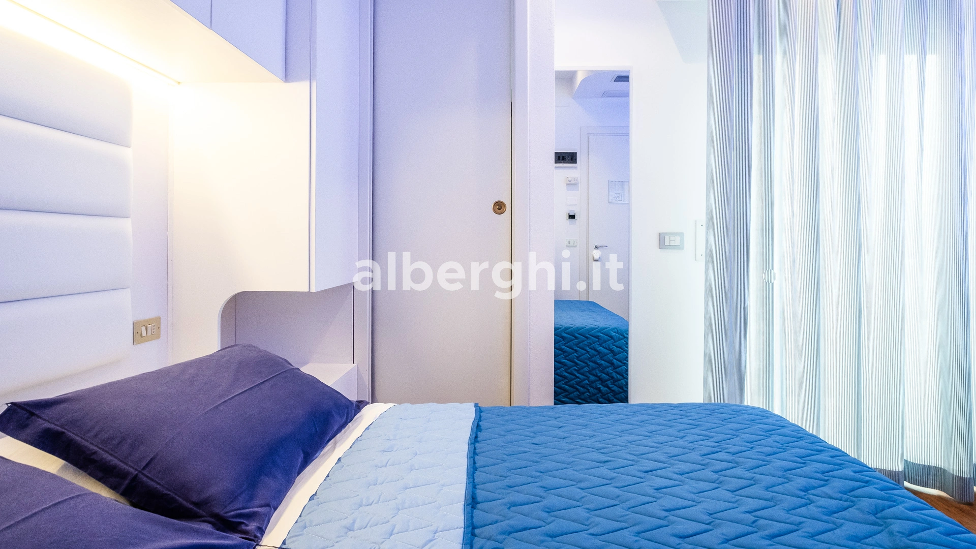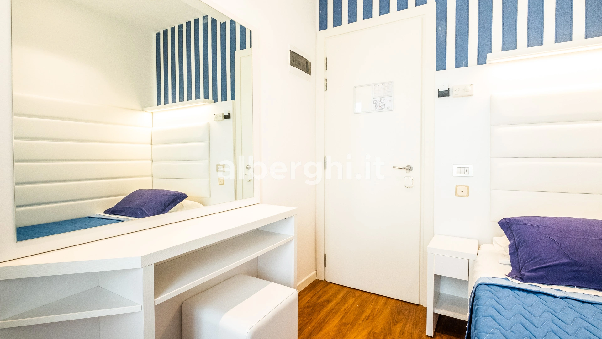 The rooms are equipped with a balcony (some with sea view), air conditioning, doors with electronic lock, electric shutters, intercom, safe, 32" TV with satellite and Sky channels, Wi-Fi, private bathroom with shower, hairdryer and courtesy set. Minibar not stocked (on request with supplement), ozone laundry and room sanitization at the end of each stay.