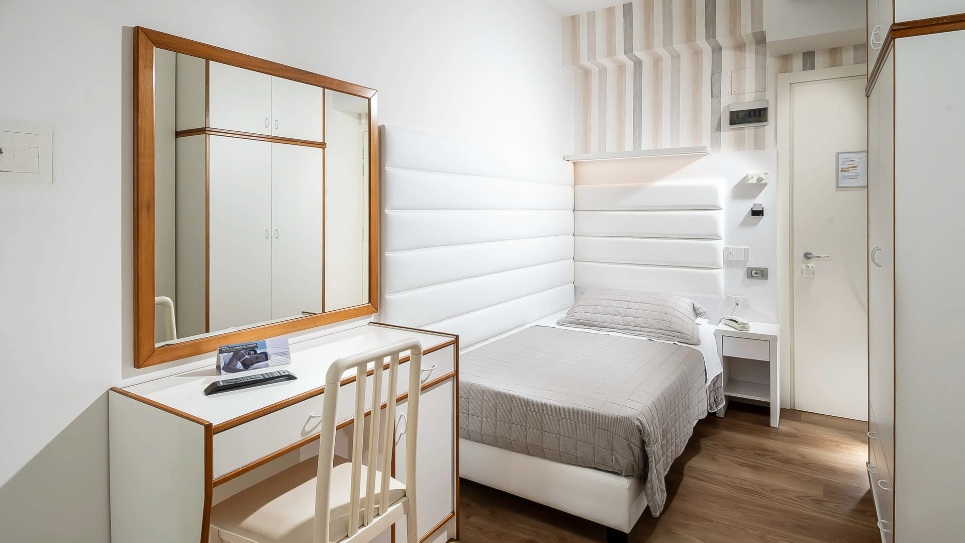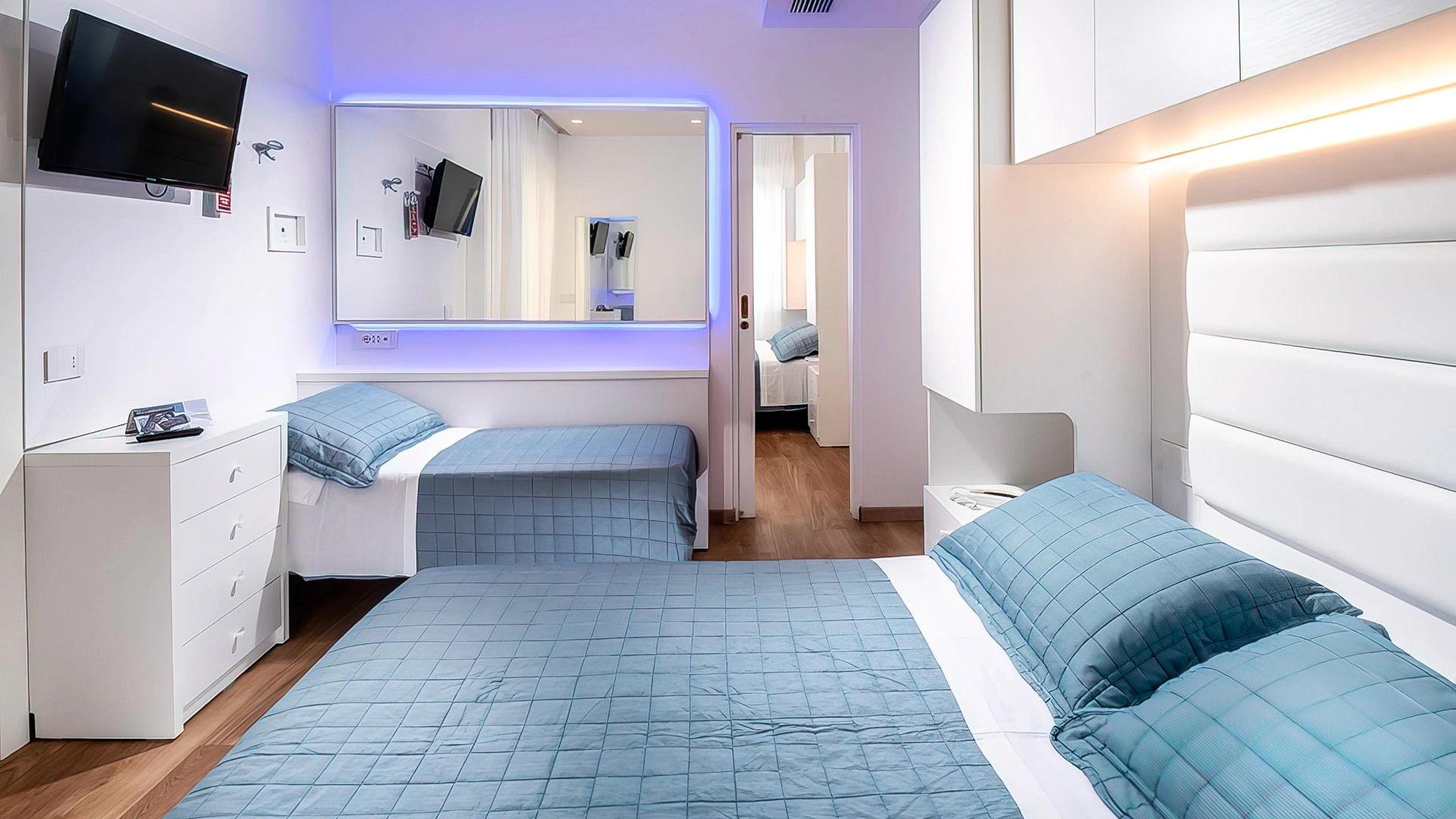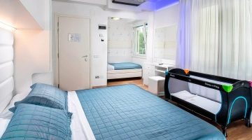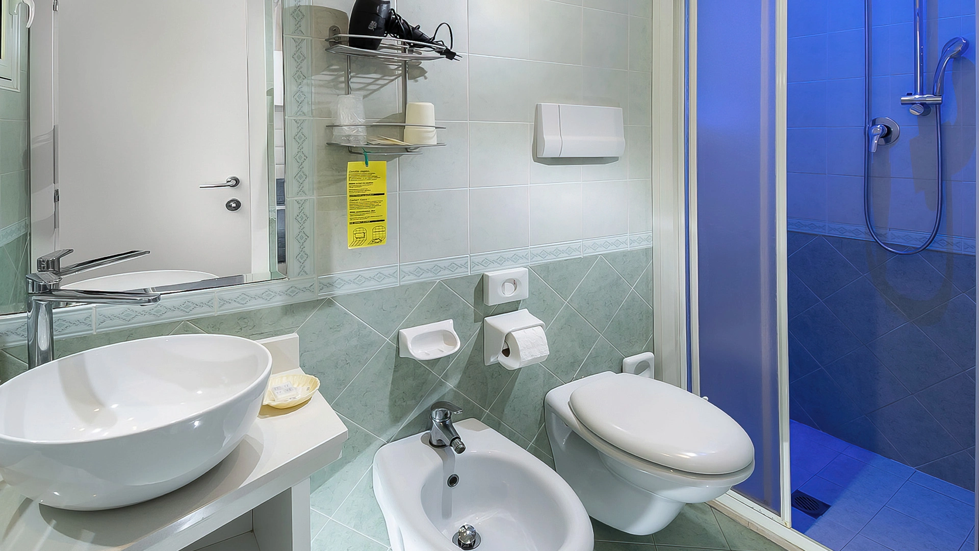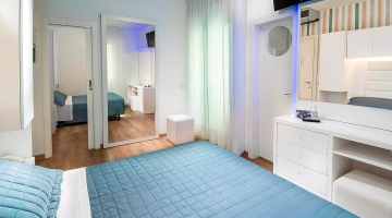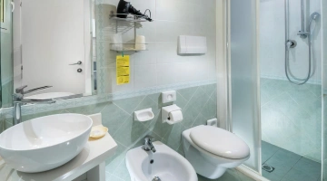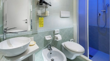 The rooms are equipped with a balcony (some with sea view), air conditioning, doors with electronic lock, electric shutters, intercom, safe, 32" TV with satellite and Sky channels, Wi-Fi, private bathroom with shower, hairdryer and courtesy set. Minibar not stocked (on request with supplement), ozone laundry and room sanitization at the end of each stay.