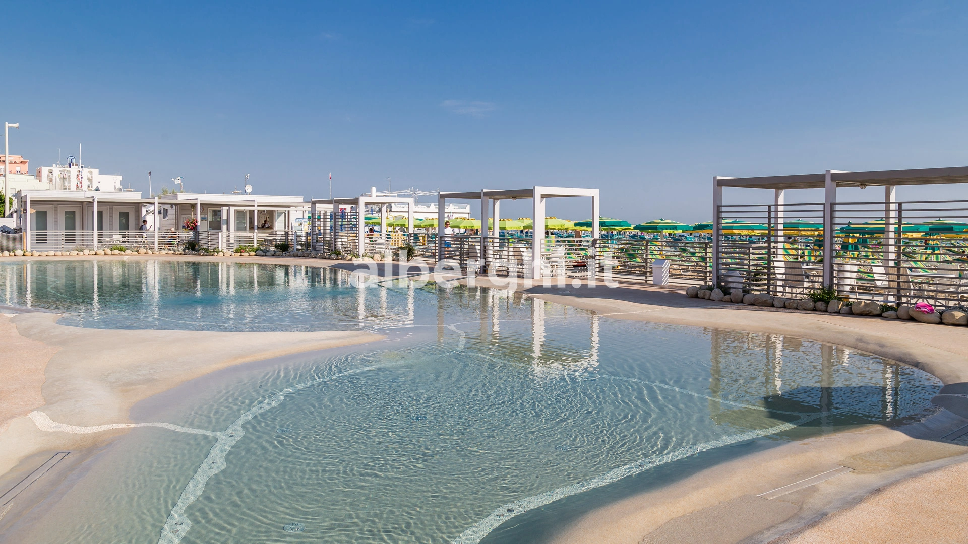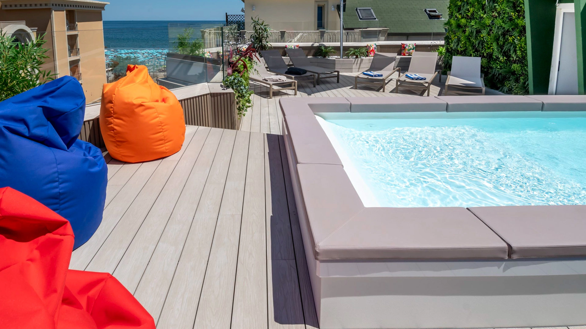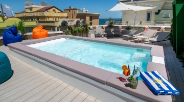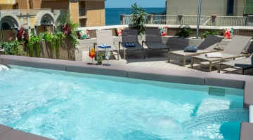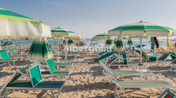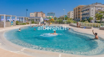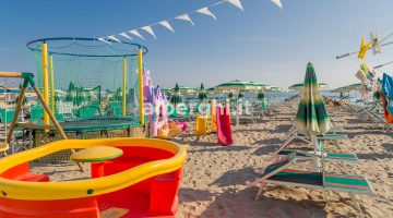 The hotel has an agreement with beaches no. 43/44/45 (Spiagge della Luna) and Bagno no. 47, equipped with sunbed and umbrella rental, children's playground areas, entertainment, bocce courts and beach volleyball. Spiagge della Luna is characterized by the presence of a 270 m2 eco-sustainable natural swimming pool with variable depth, hydromassage and waterfall.