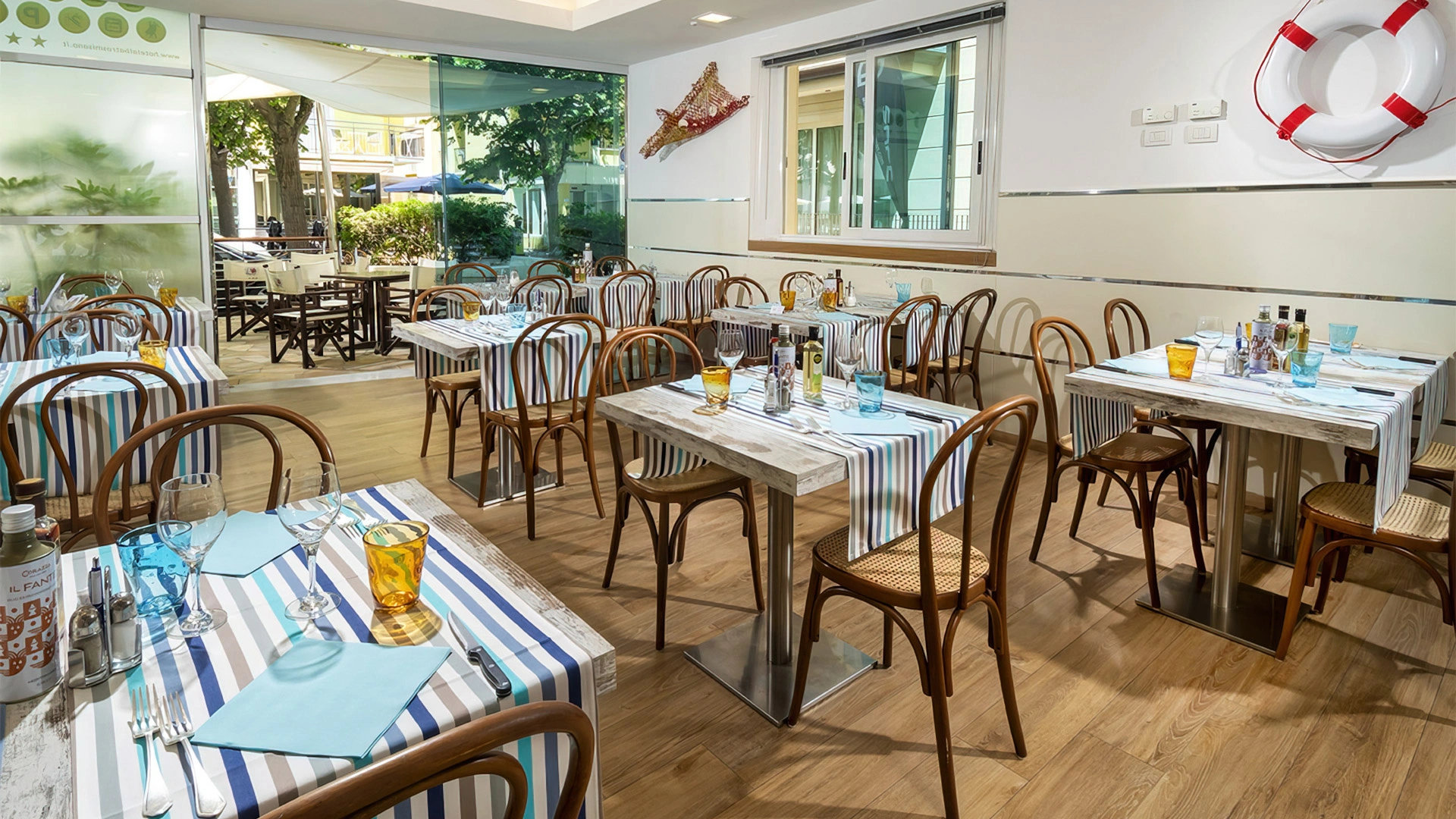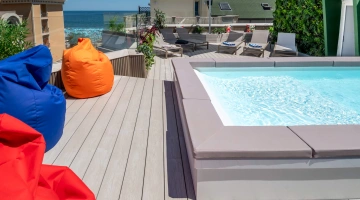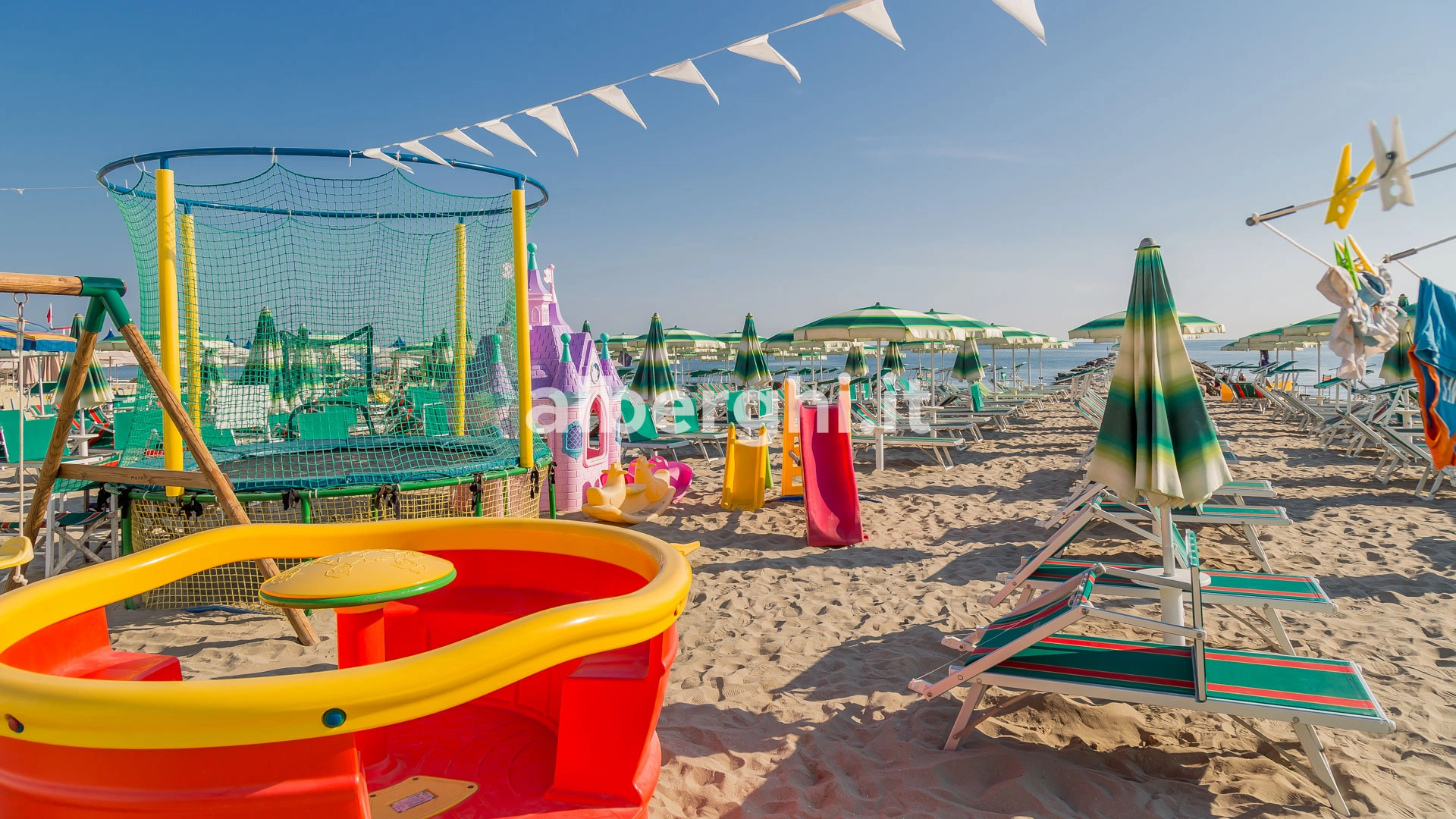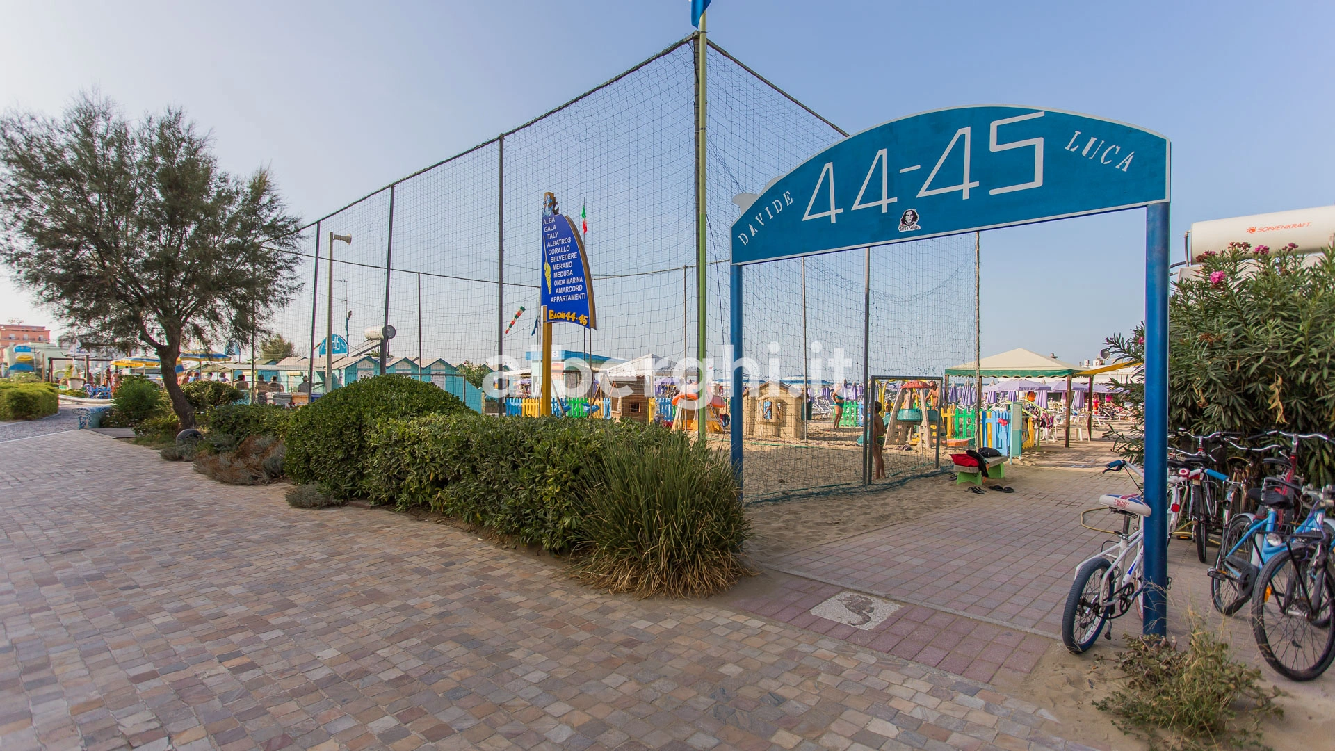 The hotel has an agreement with beaches no. 43/44/45 (Spiagge della Luna) and Bagno no. 47, equipped with sunbed and umbrella rental, children's playground areas, entertainment, bocce courts and beach volleyball. Spiagge della Luna is characterized by the presence of a 270 m2 eco-sustainable natural swimming pool with variable depth, hydromassage and waterfall.