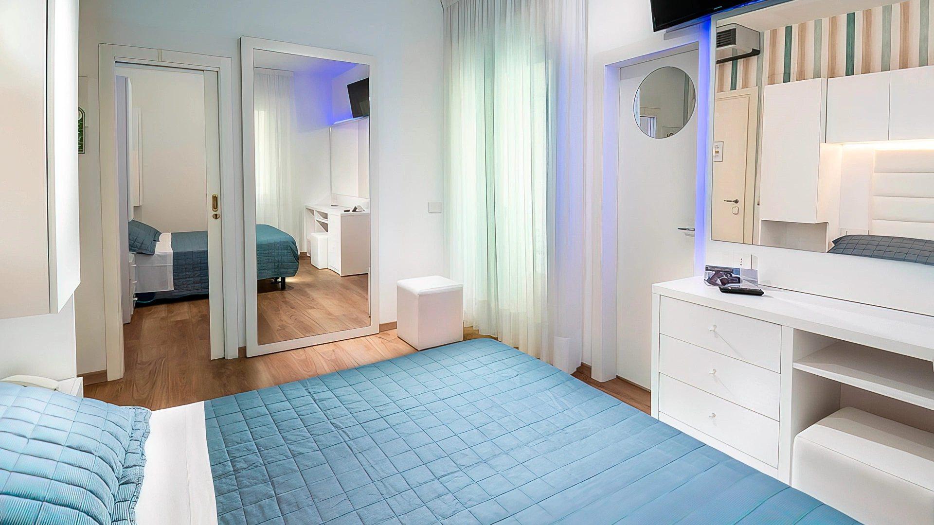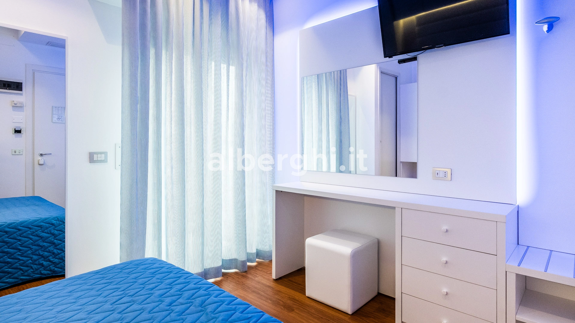 The hotel is located in Misano Adriatico, on the first parallel of the seafront, very close to the beach and the main promenade, but in a quiet position. The center of Misano and the railway station are just a few steps away. The Misano World Circuit Marco Simoncelli is a 10-minute drive away.