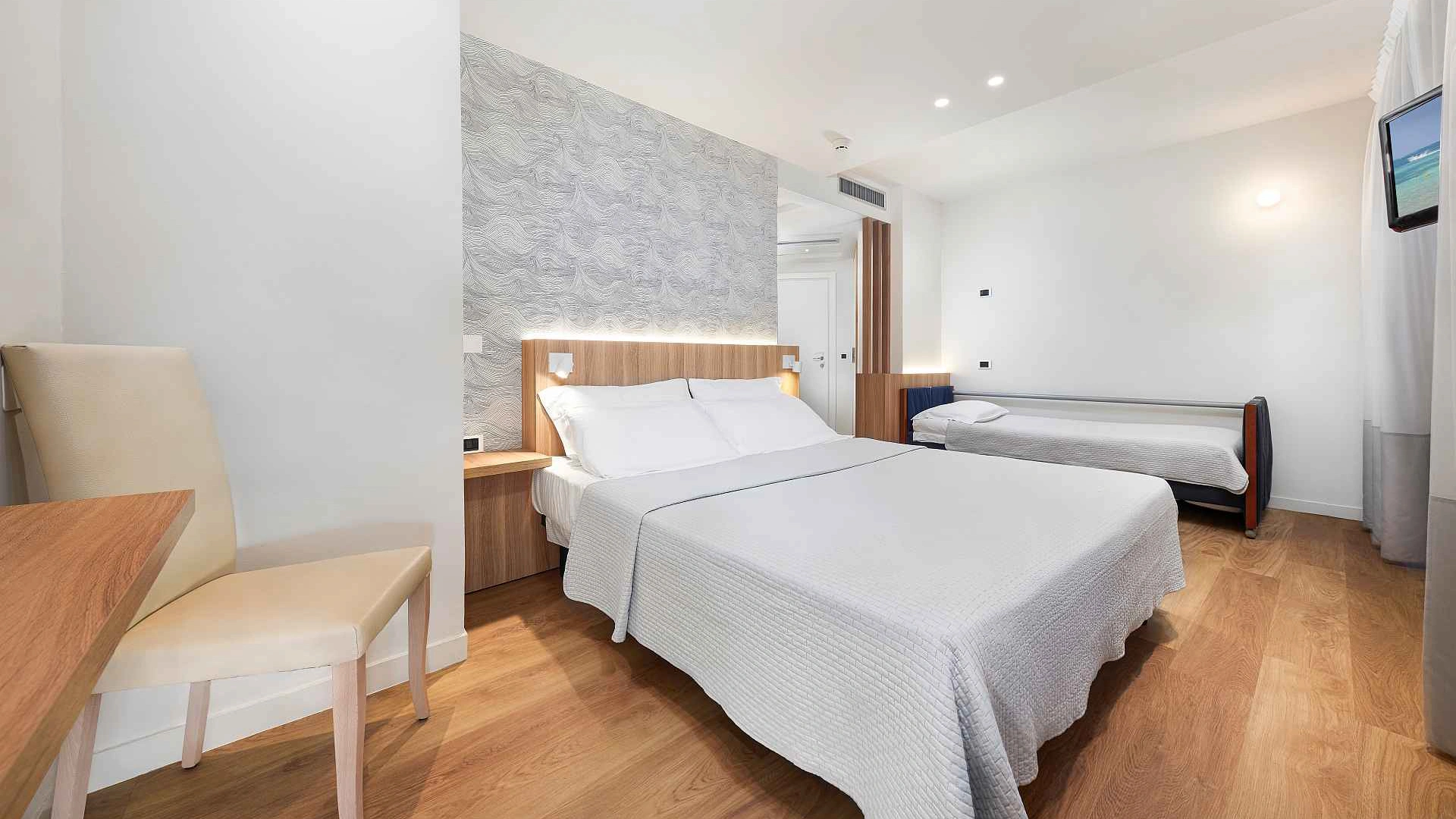 STANDARD: they are located on the upper floors of the Hotel with a small terrace, minibar on request. The sea side double rooms also have a loggia balcony.