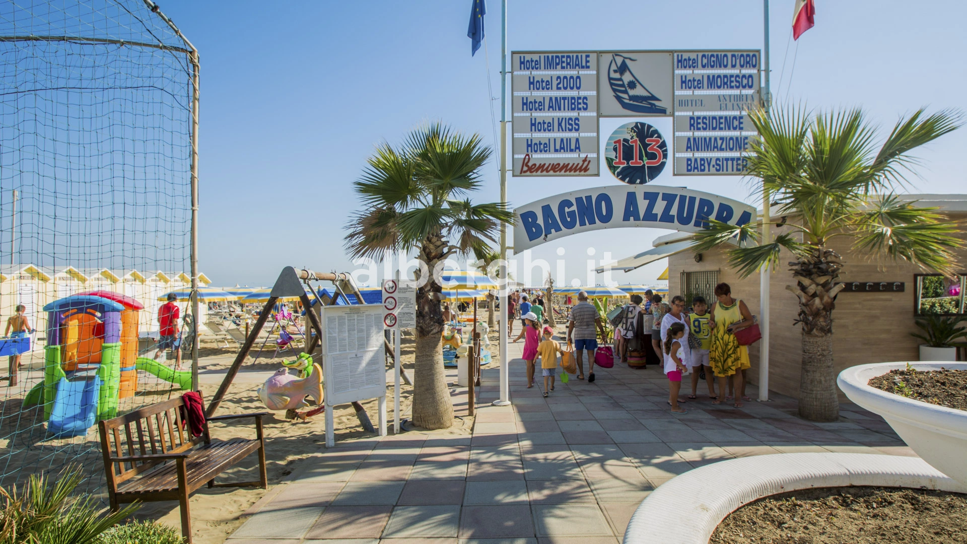 The hotel has an agreement with Bagno n.112 and Bagno n.113, a bathing establishment equipped with beach volleyball courts, table tennis, beach tennis, bathroom with changing table, safes, fenced playground, wheelchair for disabled people.