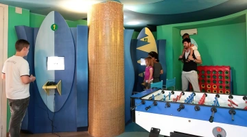 In the hotel: bicycle seat and helmet, games room with four PlayStation stations, table football, playground area for children aged 2 to 6 years, strollers, entertainment and mini club in the hotel for children aged 3 to 10 years at meals, afternoon Nutella party , entertainment evening, dance games, recreational activities, swimming lessons and pool games. Upon request: babysitter and pediatrician.
