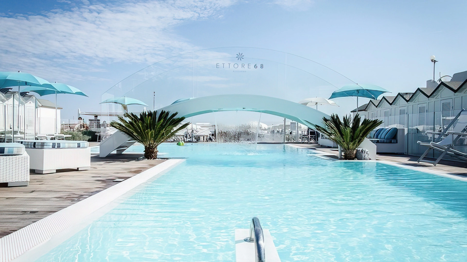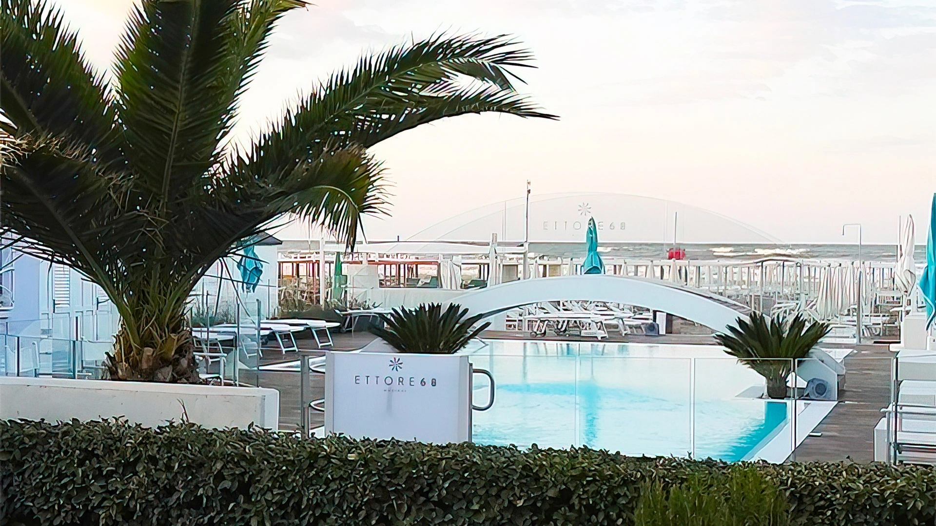 The hotel has an agreement with the Ettore establishment n.68 equipped with umbrella and sunbed rental (maxi sunbeds on request), baby park, beach volleyball court, entertainment, cabins, baby toilets and fridge service. The establishment also has a heated swimming pool for adults with hydromassage and children's pool, surrounded by a relaxation area equipped with sunbeds, armchairs and beach umbrella. Agreements are also stipulated with Bagno n.67.