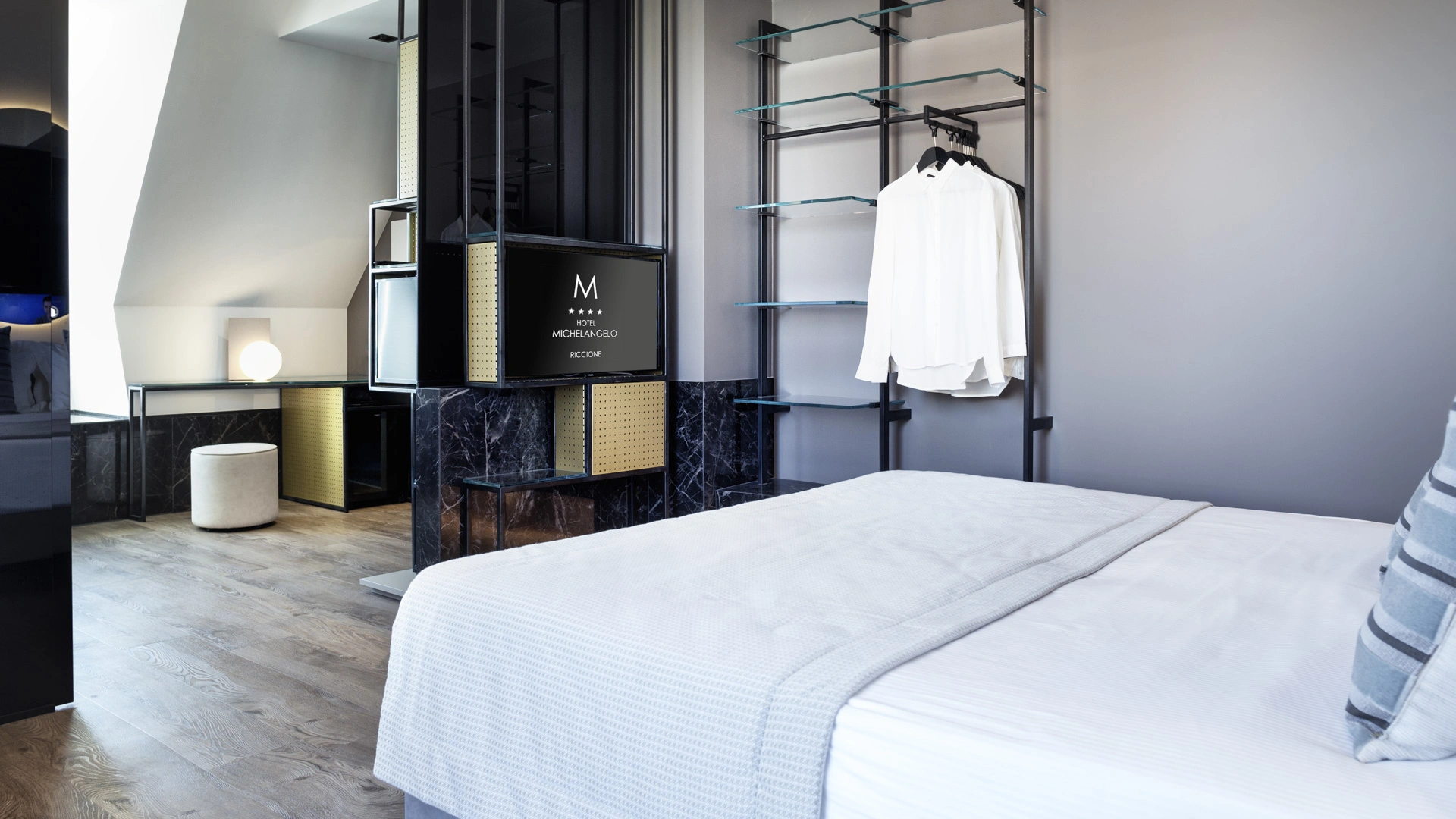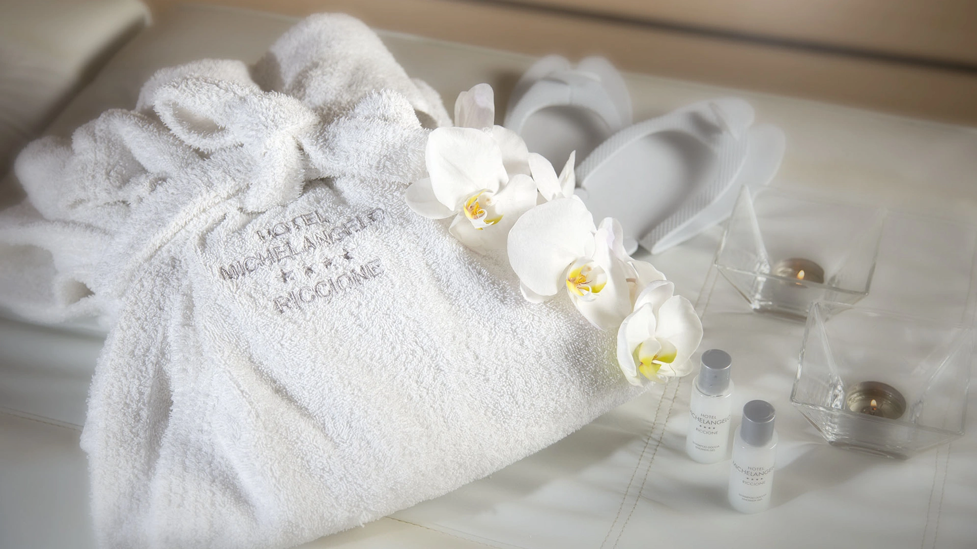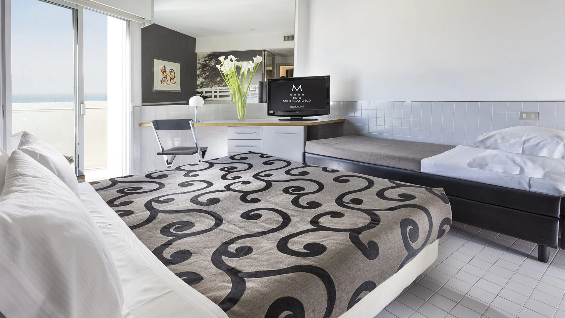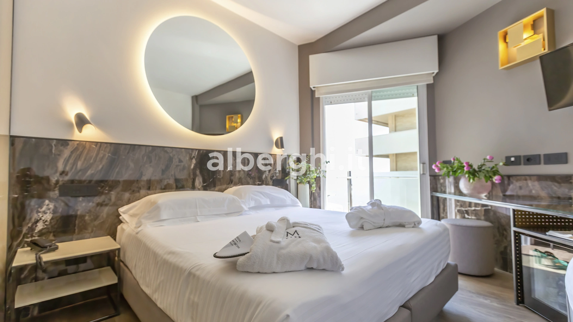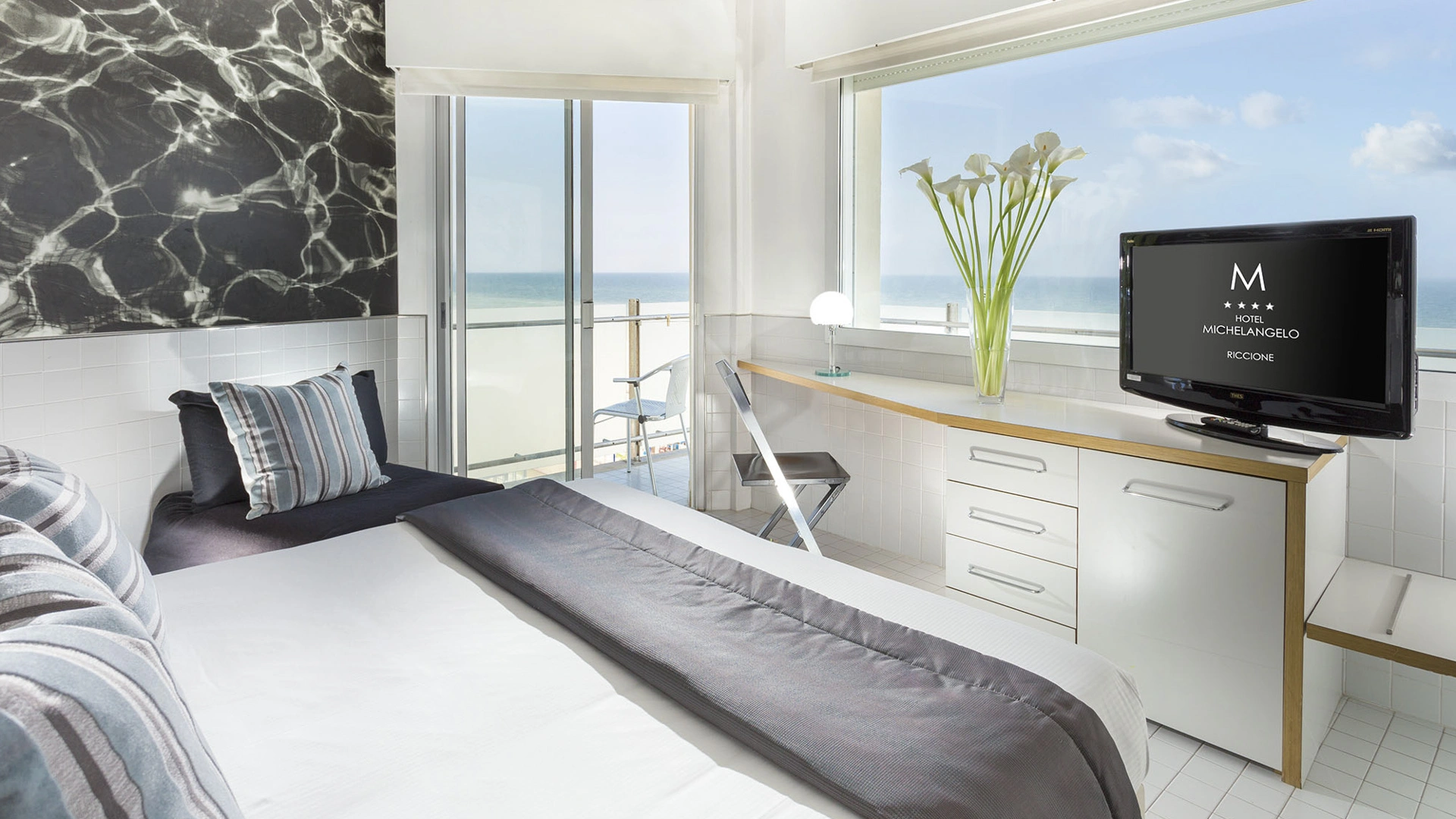At the Hotel Michelangelo, a 4-star hotel on the Riccione seafront, every aspect of your holiday is taken care of in detail, the rooms are elegant and the services are ideal for a stay as a couple, with the family or for business. It has a heated outdoor pool, meeting room, garage, fiber Wi-Fi and services for children. It accepts small and medium-sized pets.