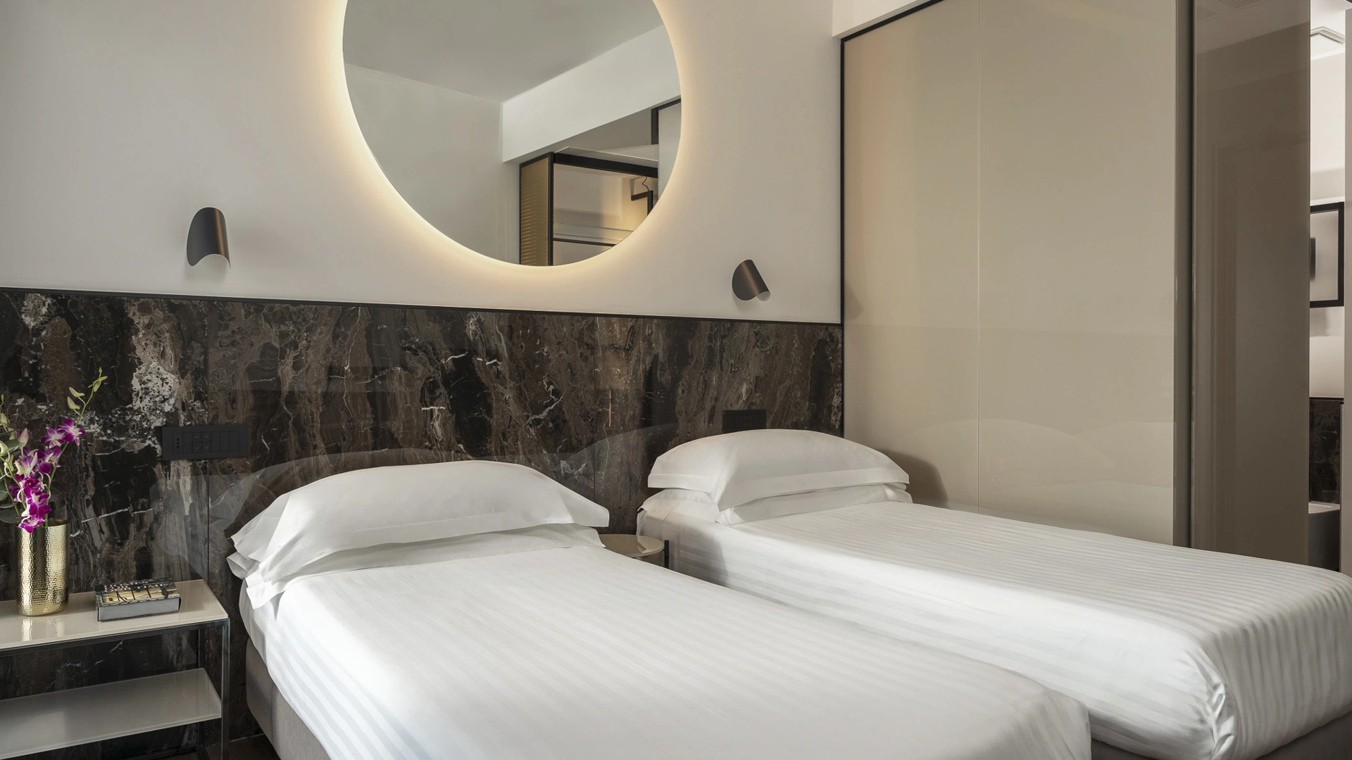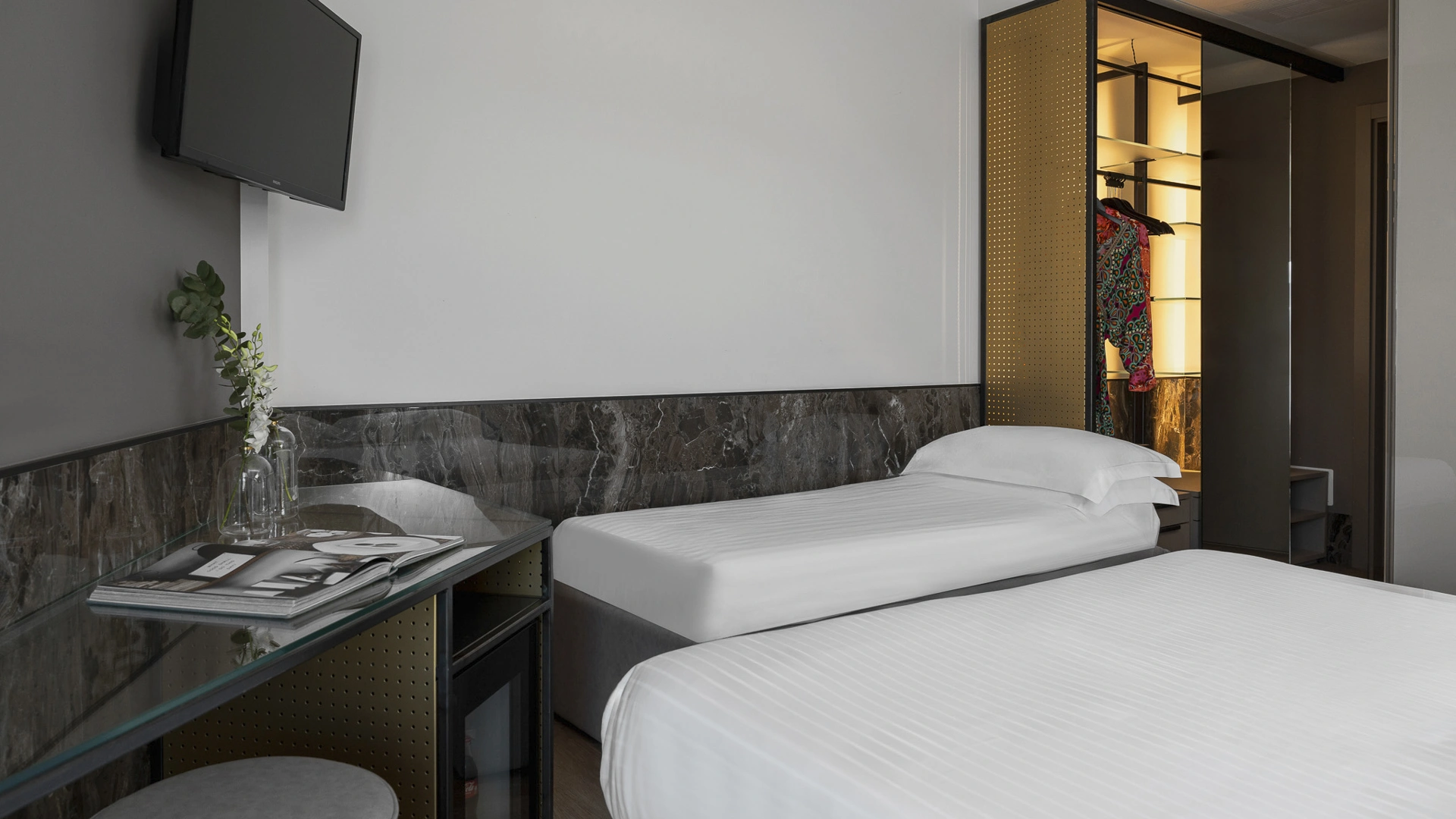 SMART DOUBLE: 14 m2 double rooms, located on the fourth floor and equipped with all the services listed above.