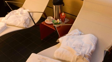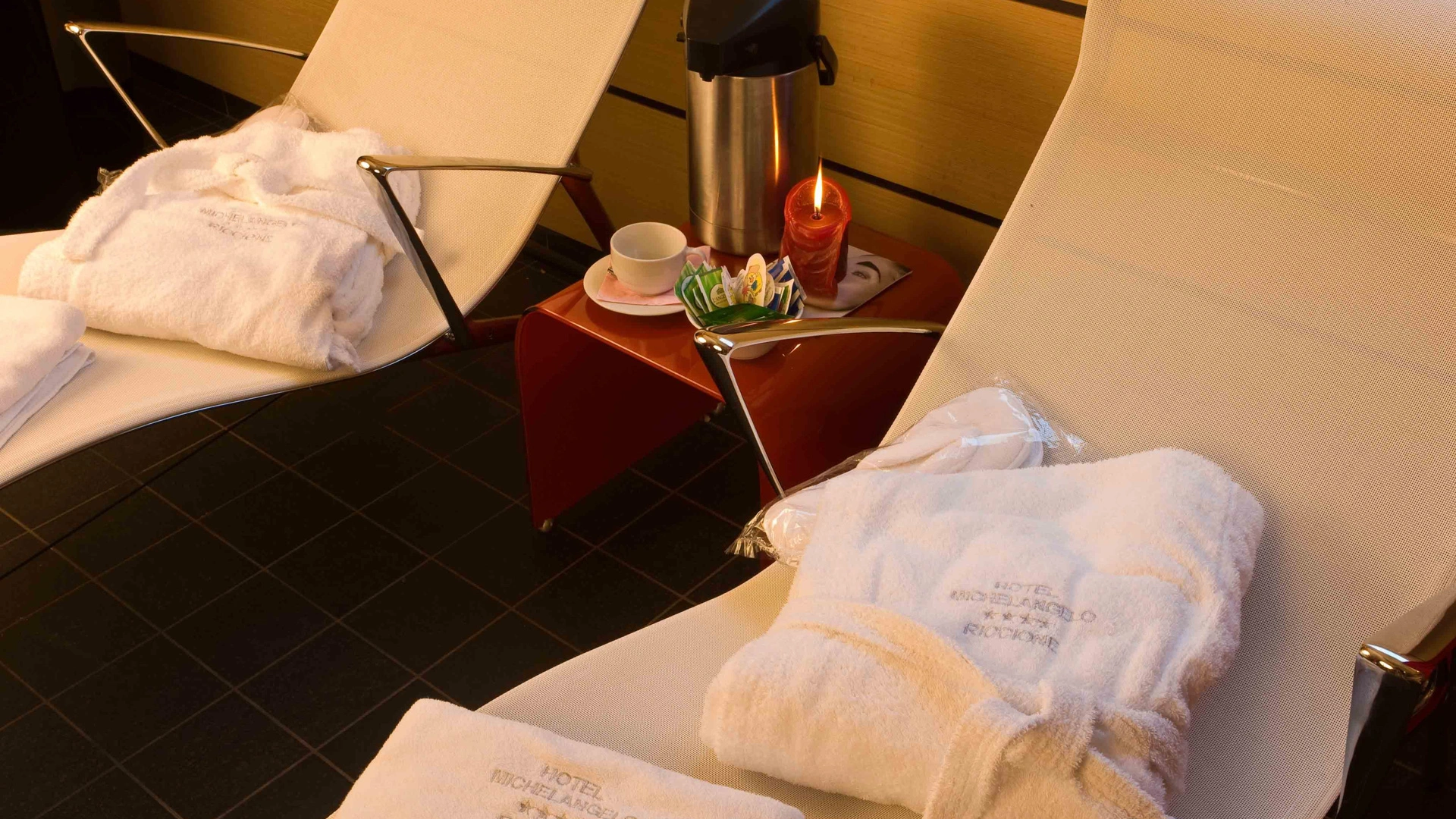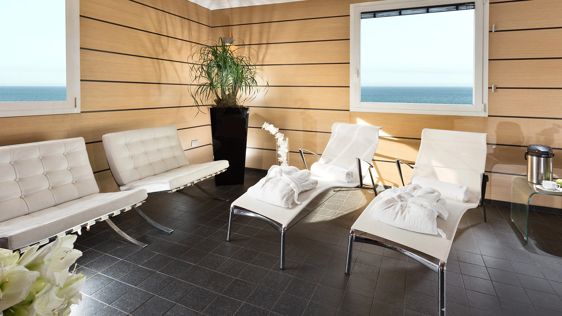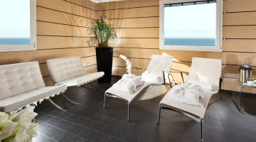 Located on the fifth floor, it features a sauna, Turkish bath, hot tub for 2 people, sea-view relaxation area and massage beds also for couples. The wellness centre is always bookable for exclusive use by agreeing on the access time at the time of booking. The centre is open from 9:00 a.m. to 9:00 p.m. every day.