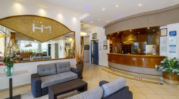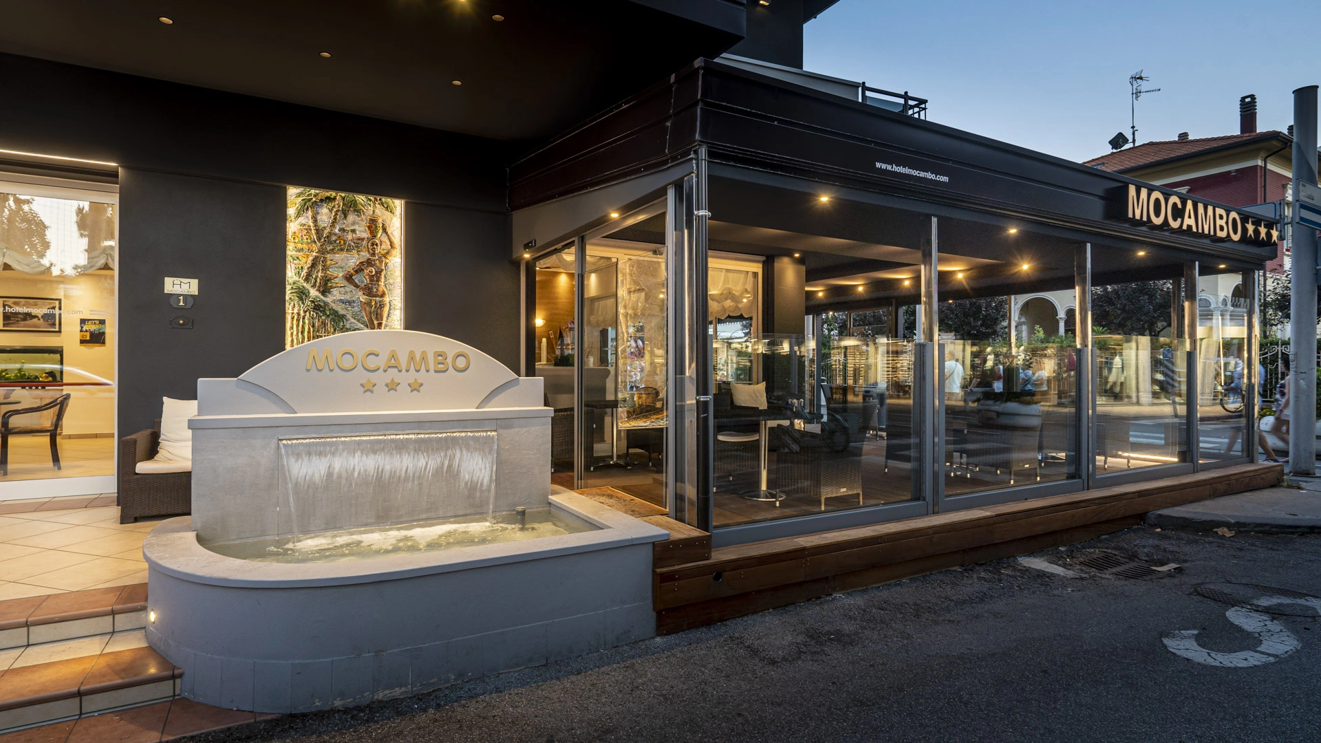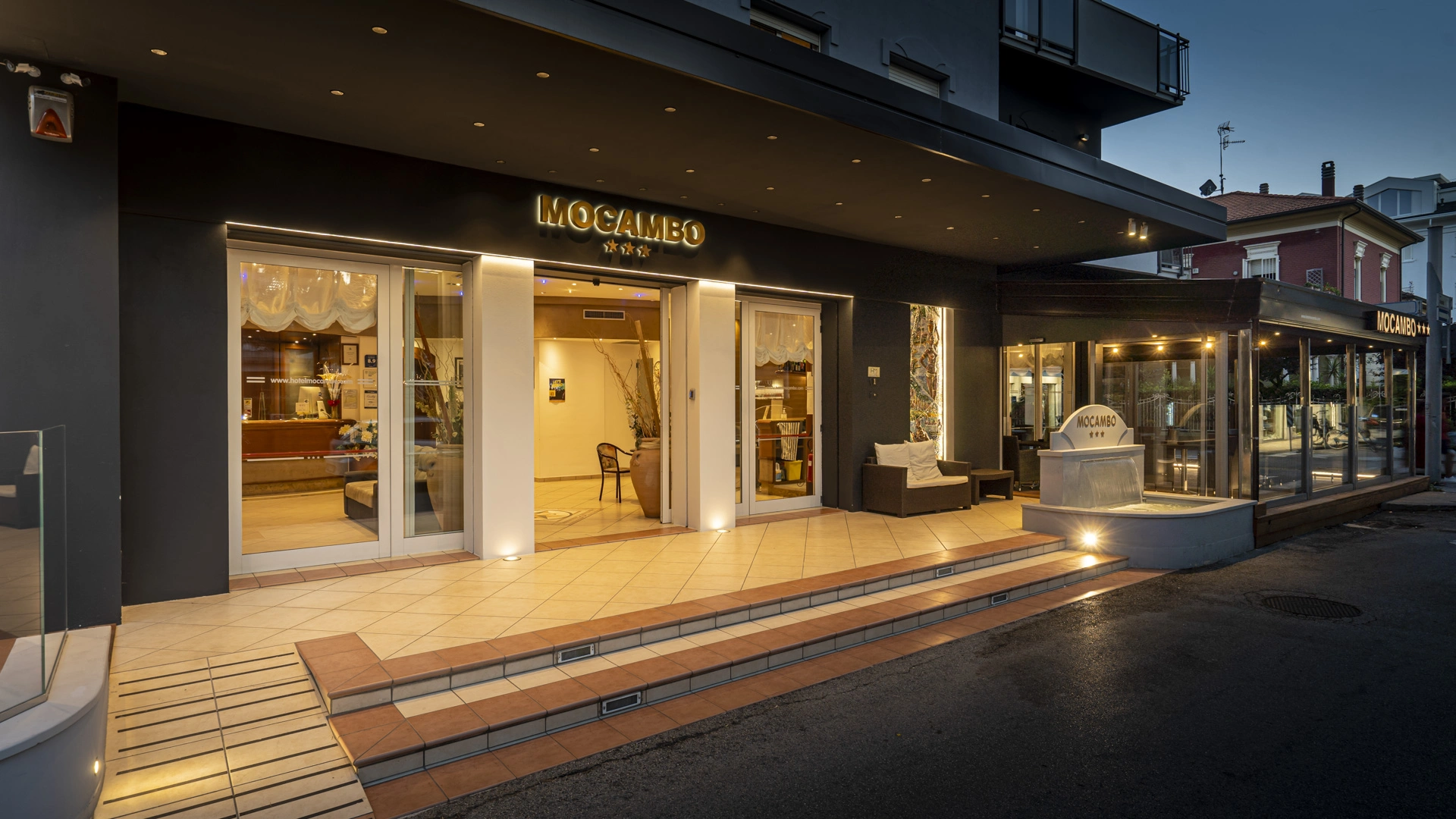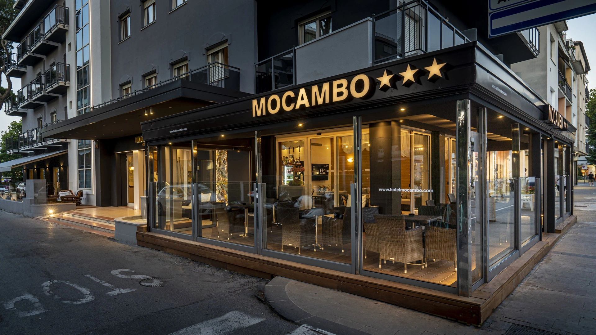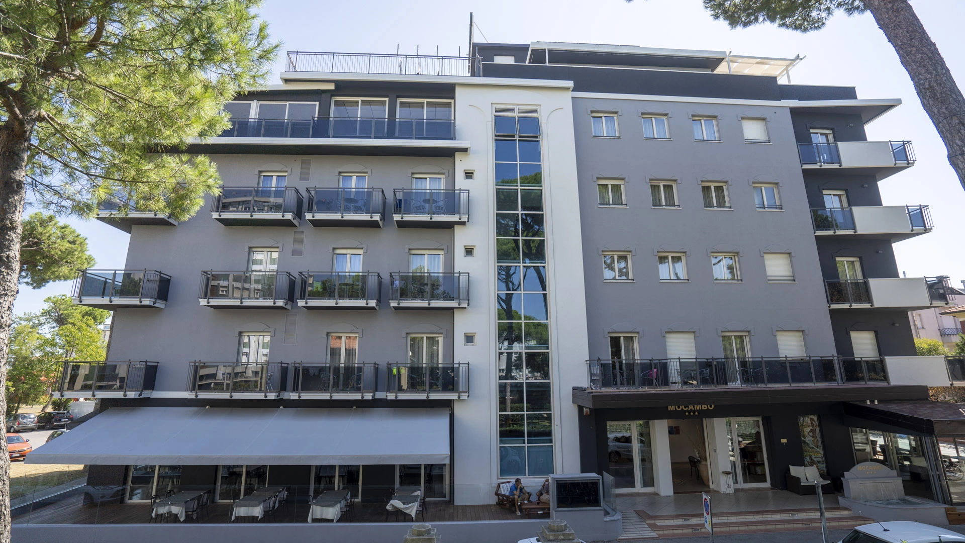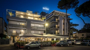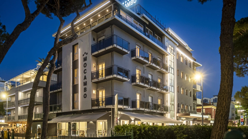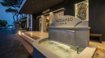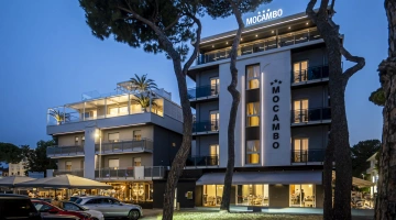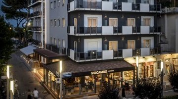 The 3-star Hotel Mocambo in the center of Riccione has parking, a shared open-air porch, fast Wi-Fi, rooms with soundproofed windows and sea view, and an American bar. On request it accepts small pets.