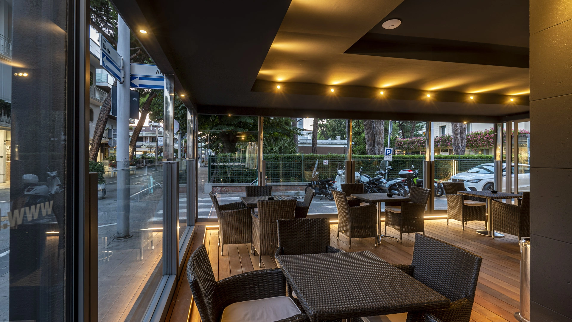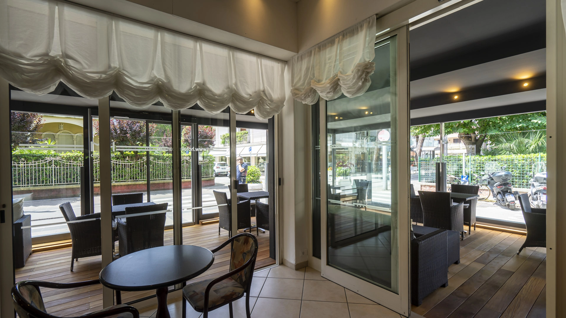 Open-air porch, free use of bicycles, lift, reading room, breakfast room with panoramic view of the sea and Viale Ceccarini, American bar, two lifts.