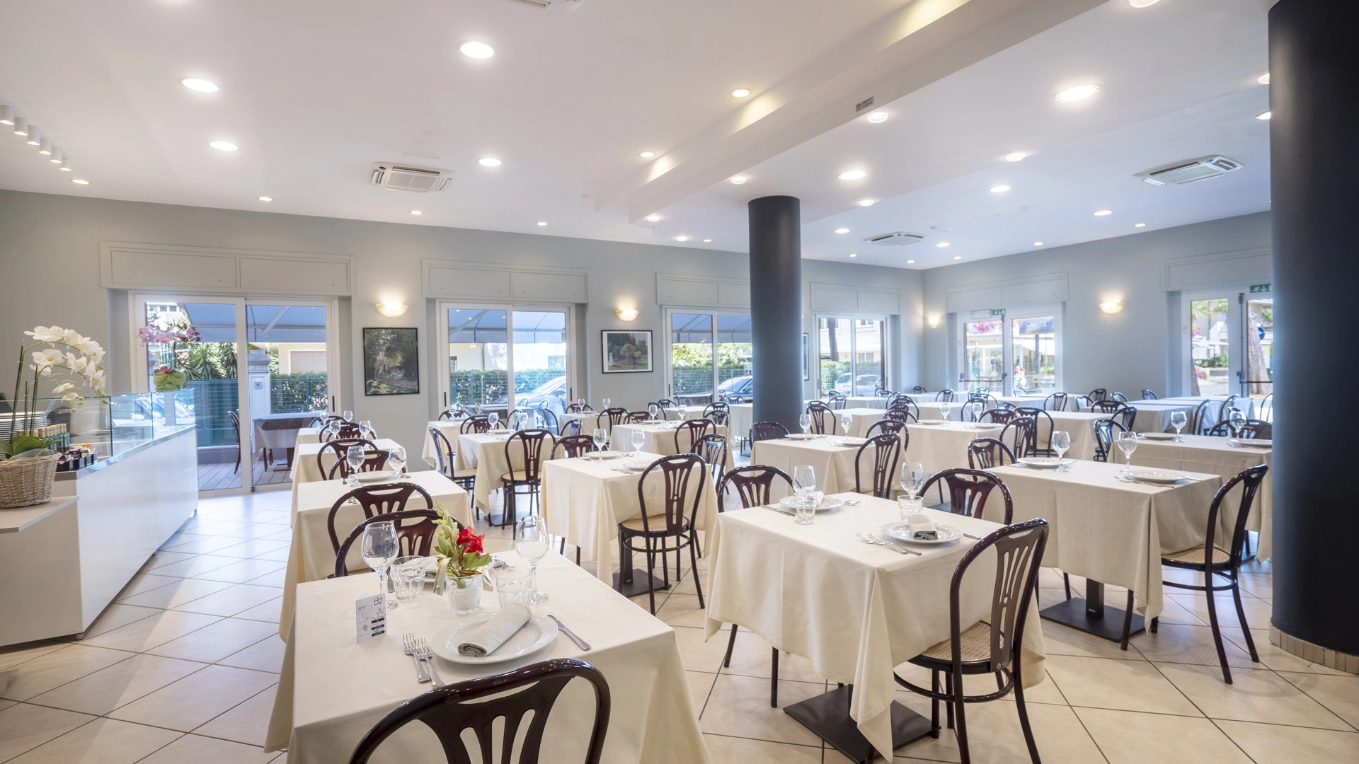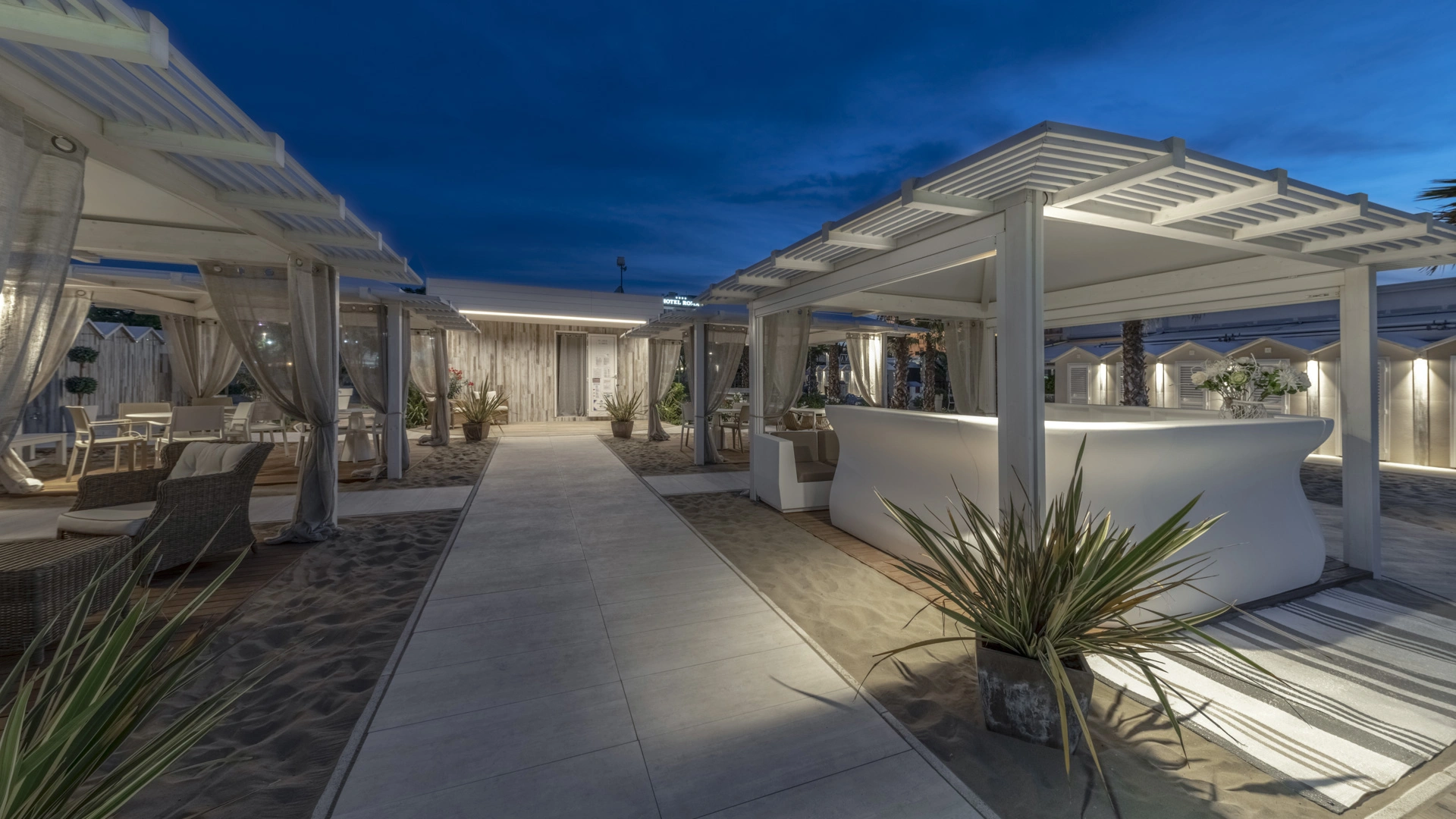 The hotel is located in the center of Riccione, overlooking Viale Dante on one side. The location is excellent for getting around on foot: it is a 3-minute walk from the beach, the city's canal port and Viale Ceccarini.