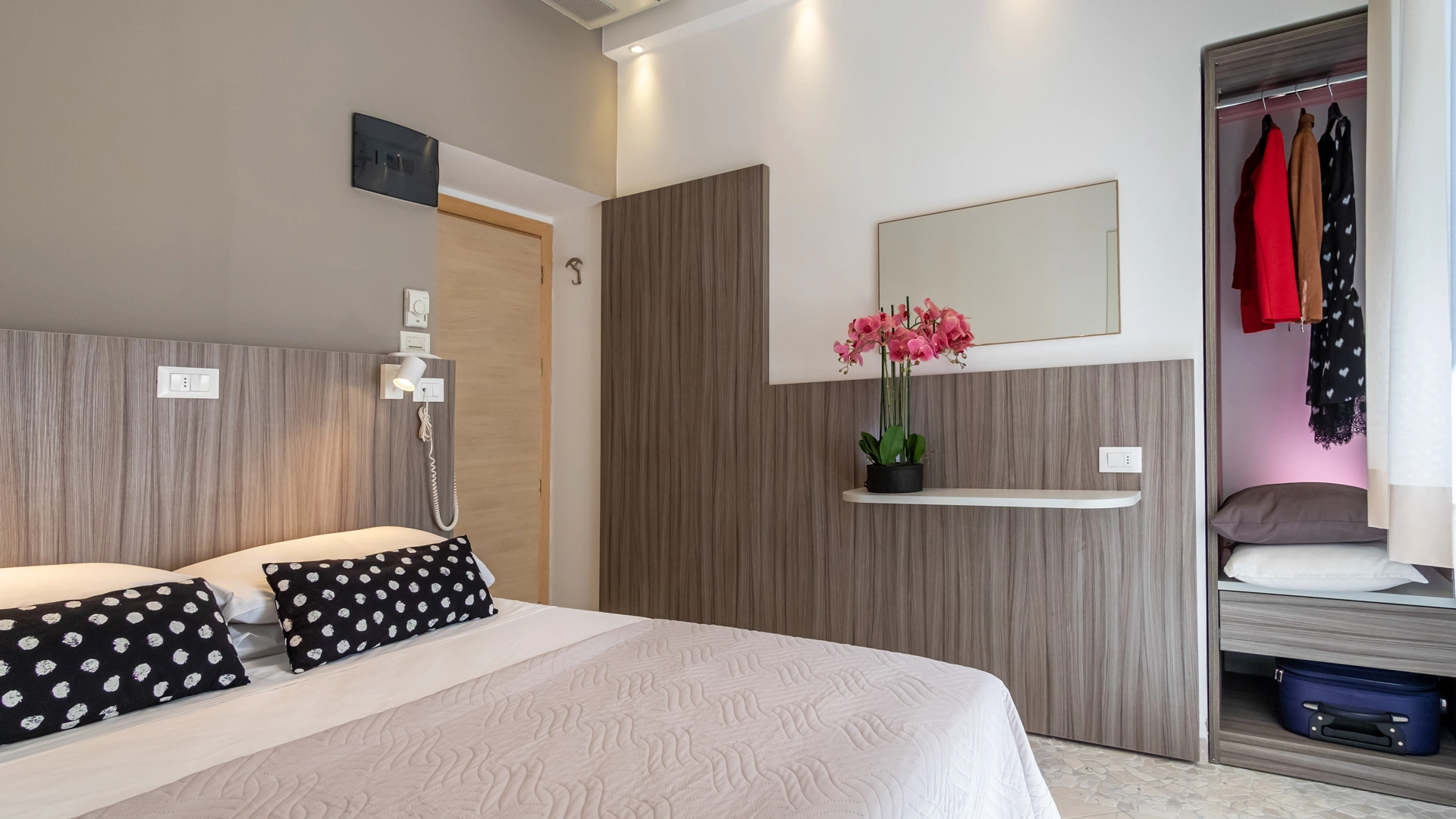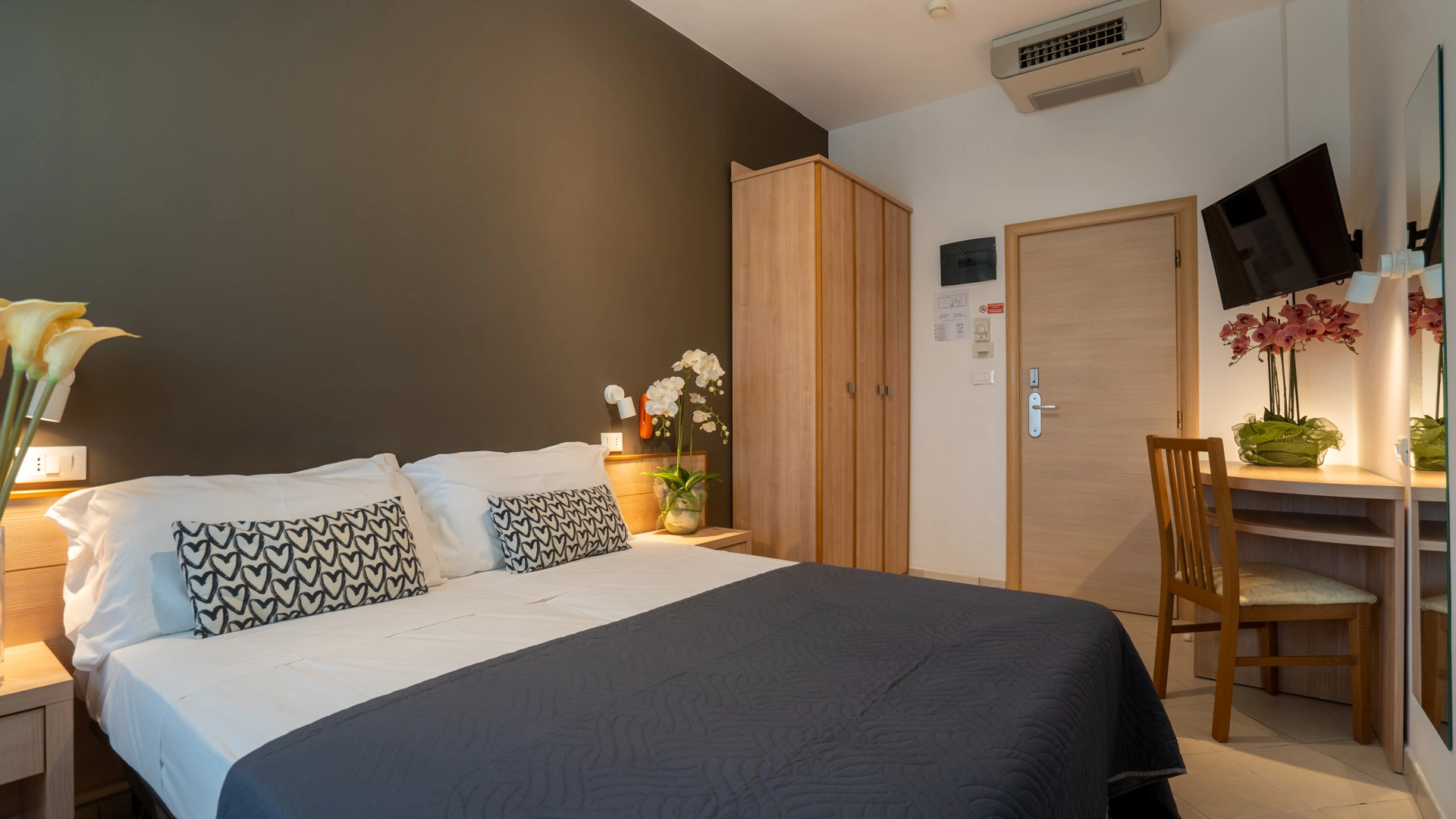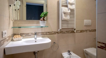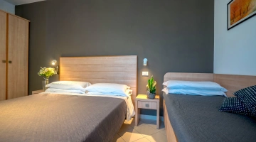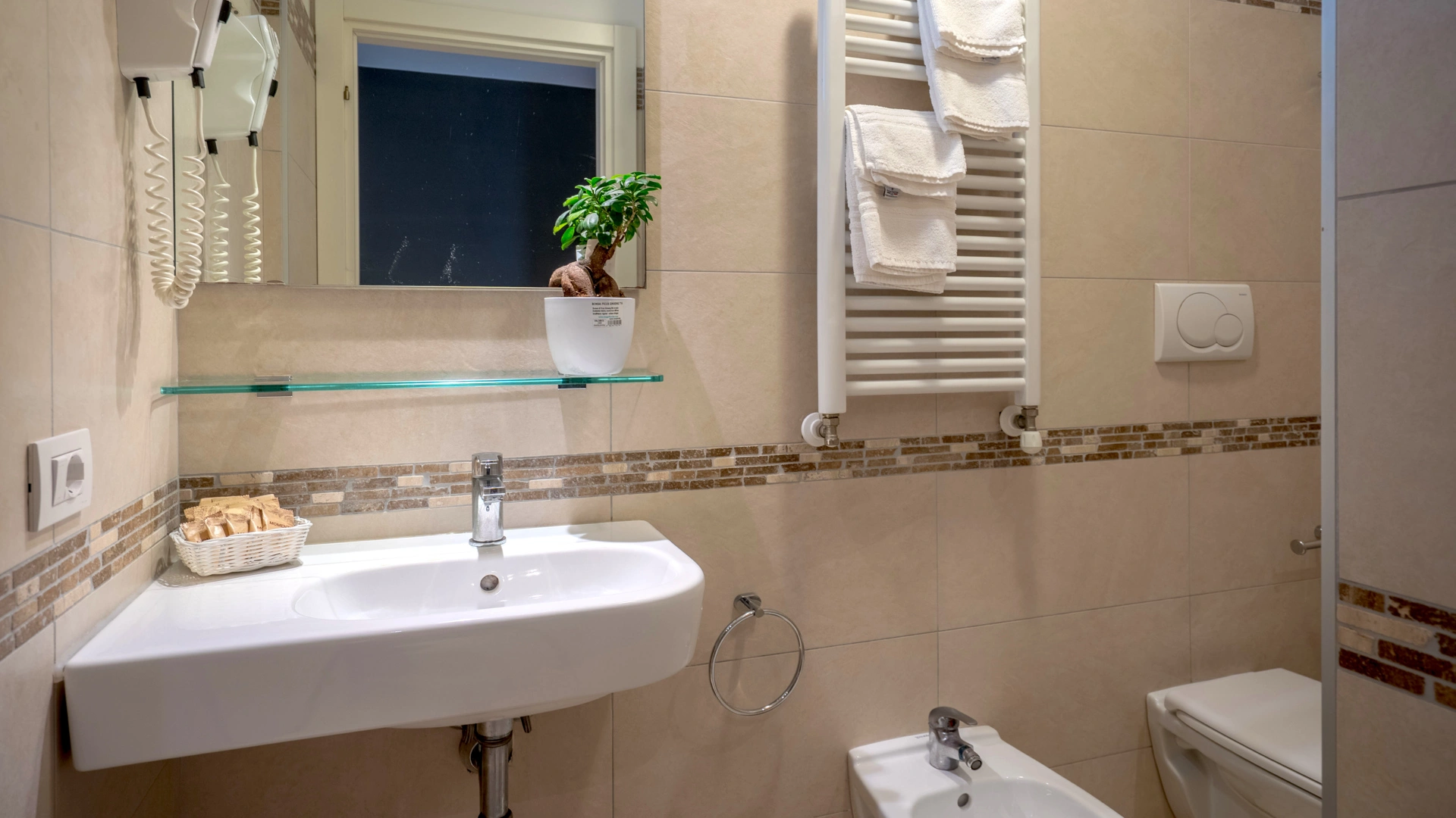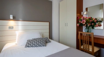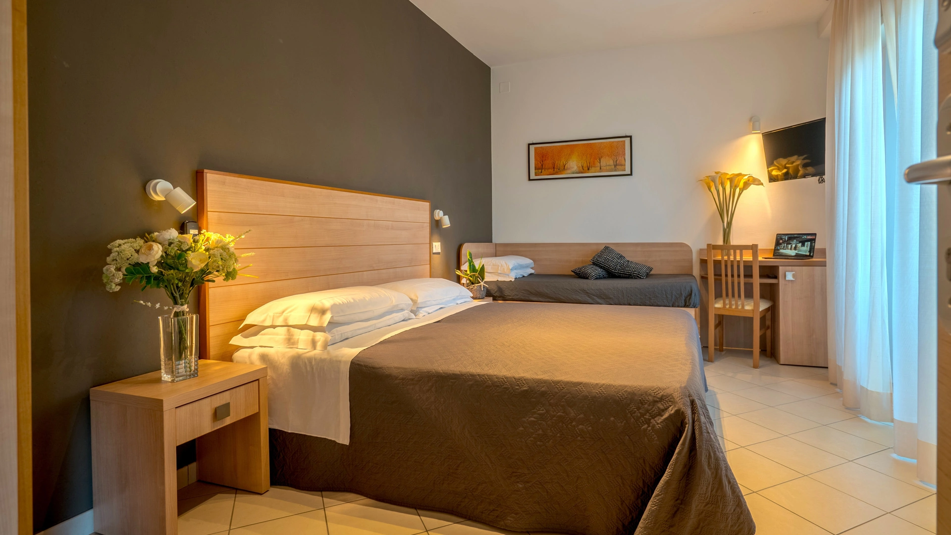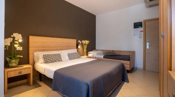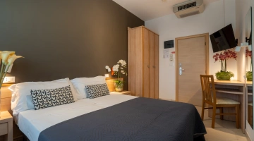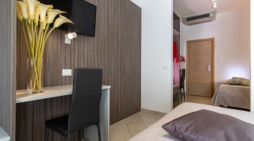 All rooms are renovated and equipped with fibre-optic Wi-Fi, air conditioning, private bathroom, shower cubicle with sliding rail, hairdryer, 32" digital terrestrial LED Smart TV, digital safe, electric shutters, soundproof glass windows, opening with magnetic card and telephone.