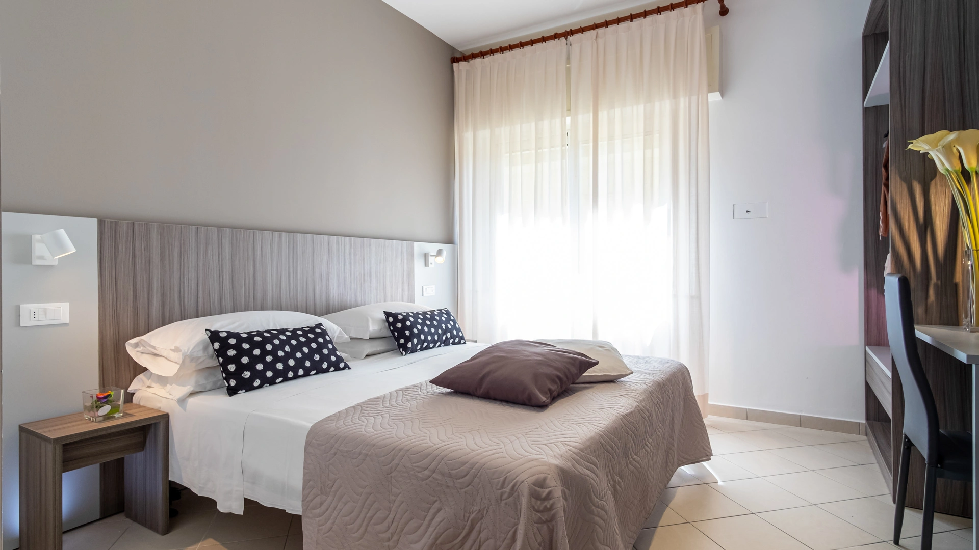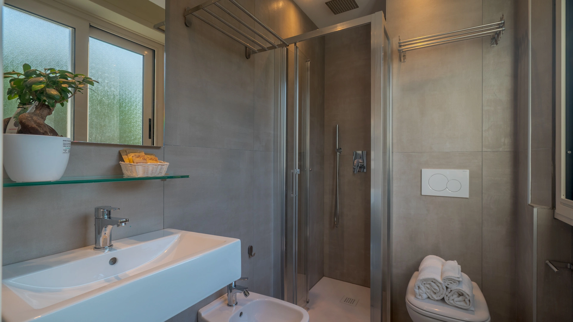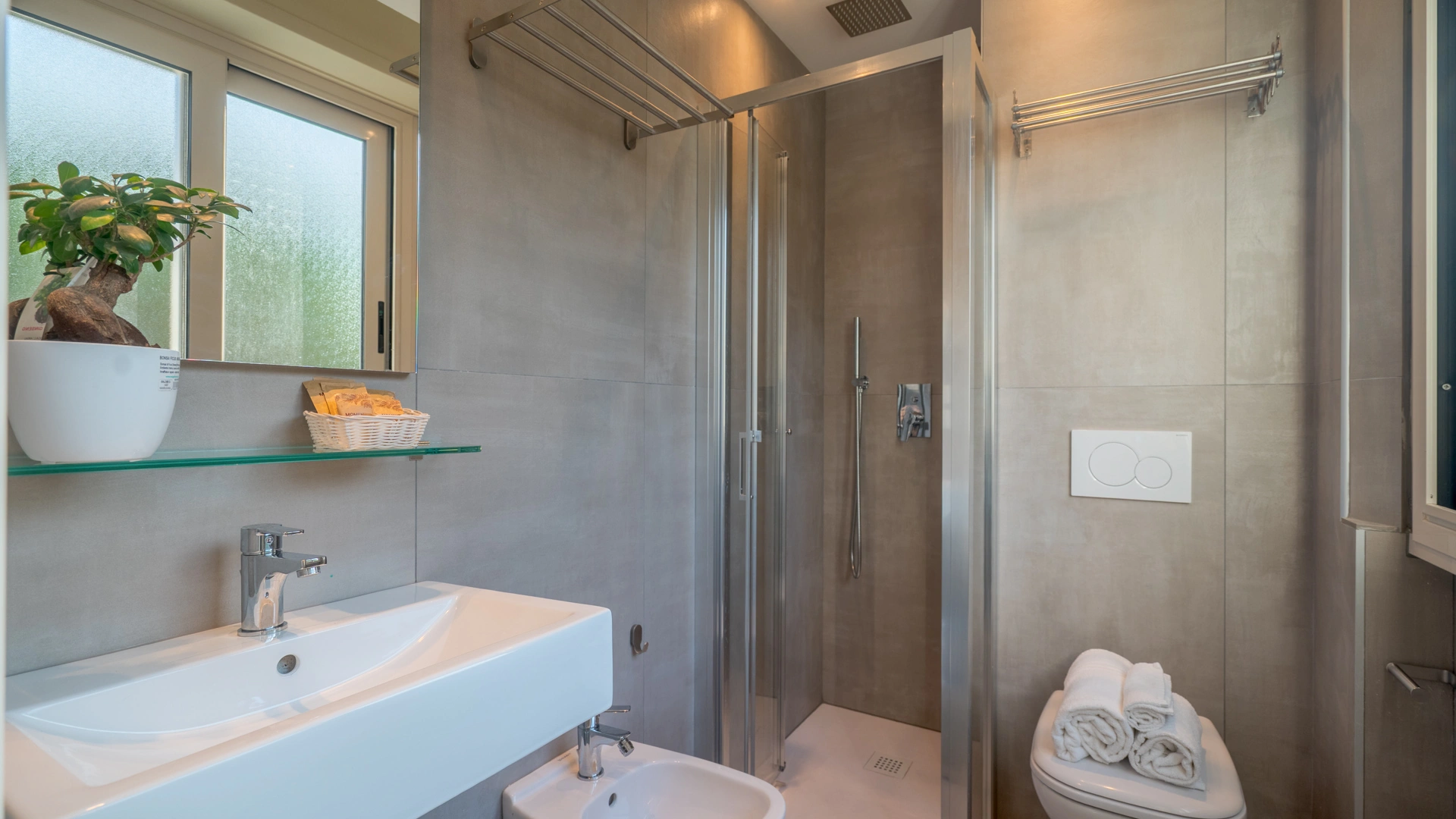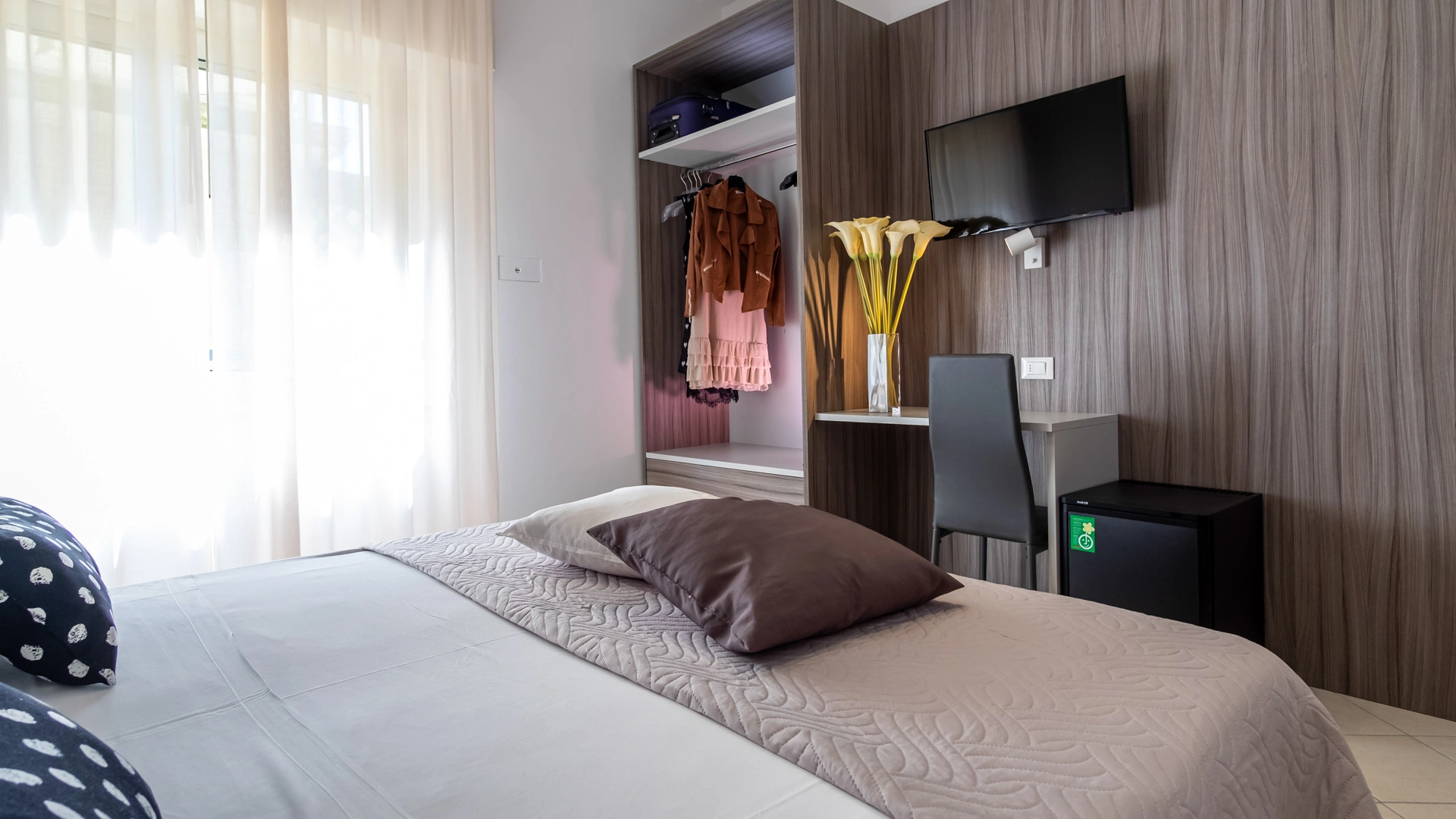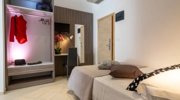 All rooms are renovated and equipped with fibre-optic Wi-Fi, air conditioning, private bathroom, shower cubicle with sliding rail, hairdryer, 32" digital terrestrial LED Smart TV, digital safe, electric shutters, soundproof glass windows, opening with magnetic card and telephone.