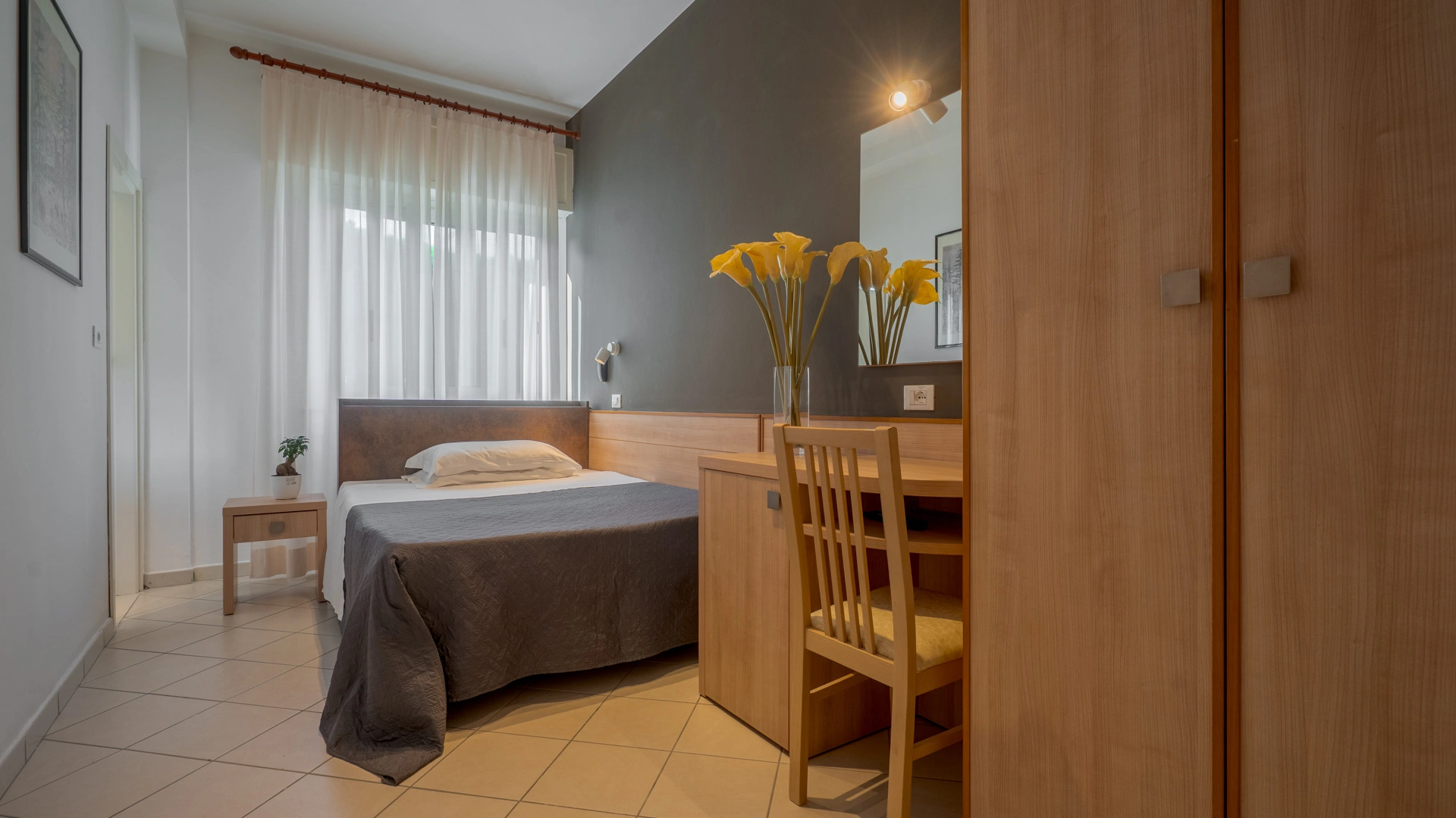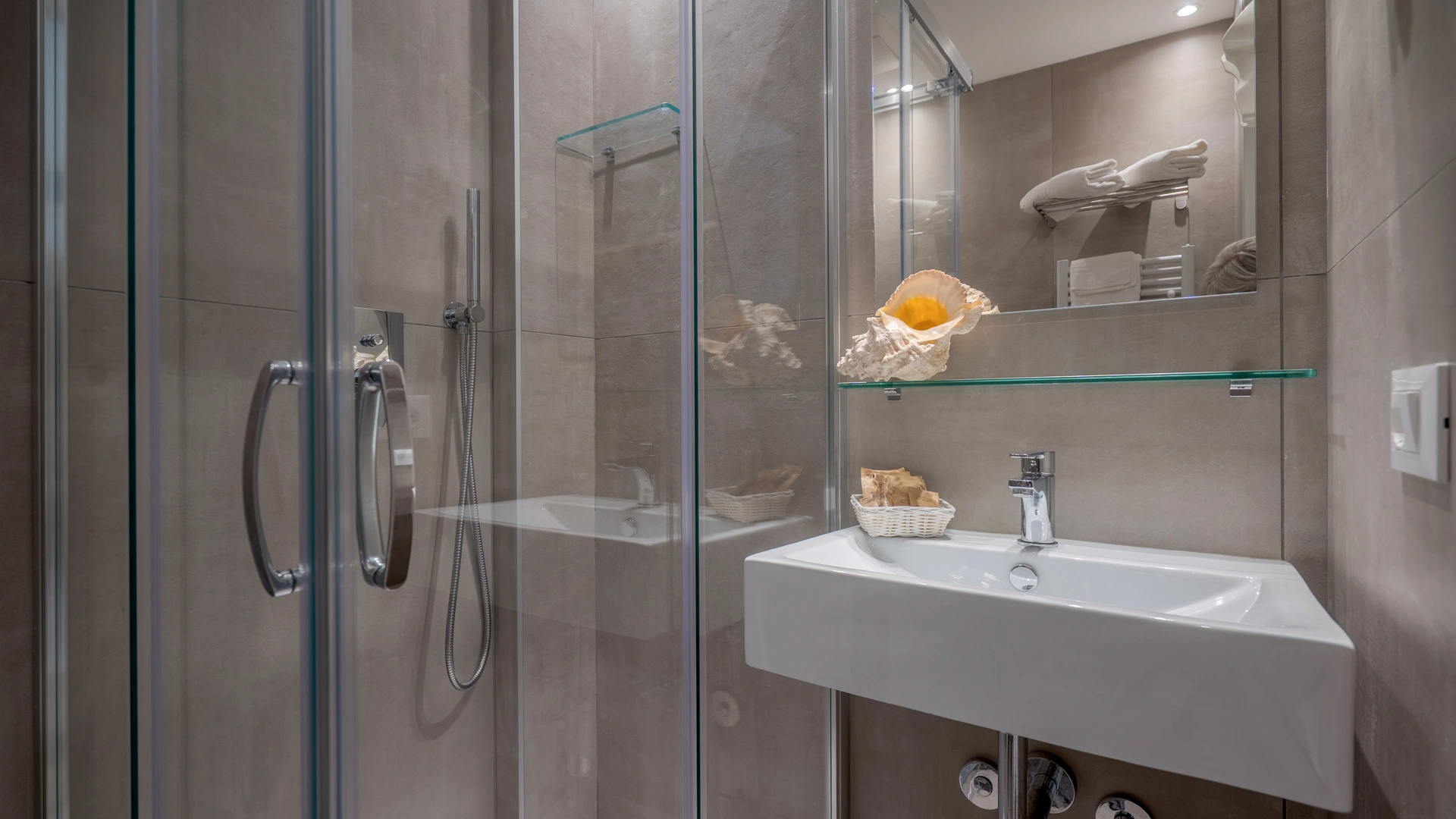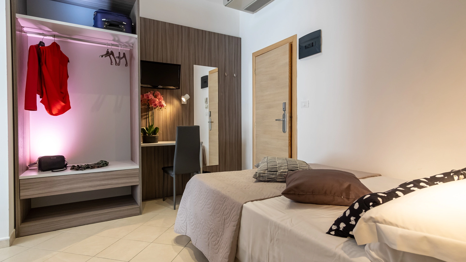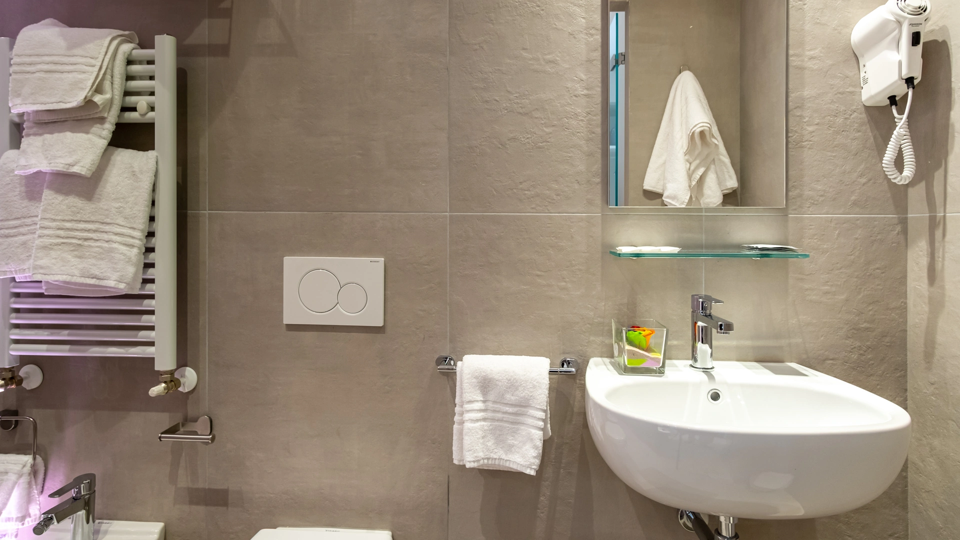 All rooms are renovated and equipped with fibre-optic Wi-Fi, air conditioning, private bathroom, shower cubicle with sliding rail, hairdryer, 32" digital terrestrial LED Smart TV, digital safe, electric shutters, soundproof glass windows, opening with magnetic card and telephone.