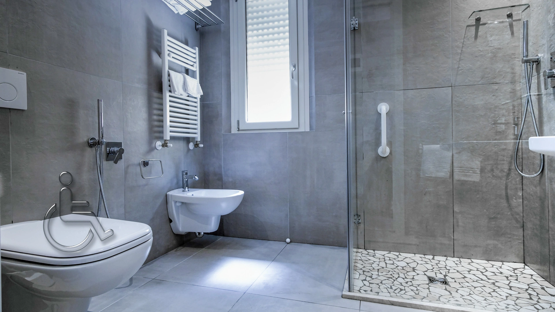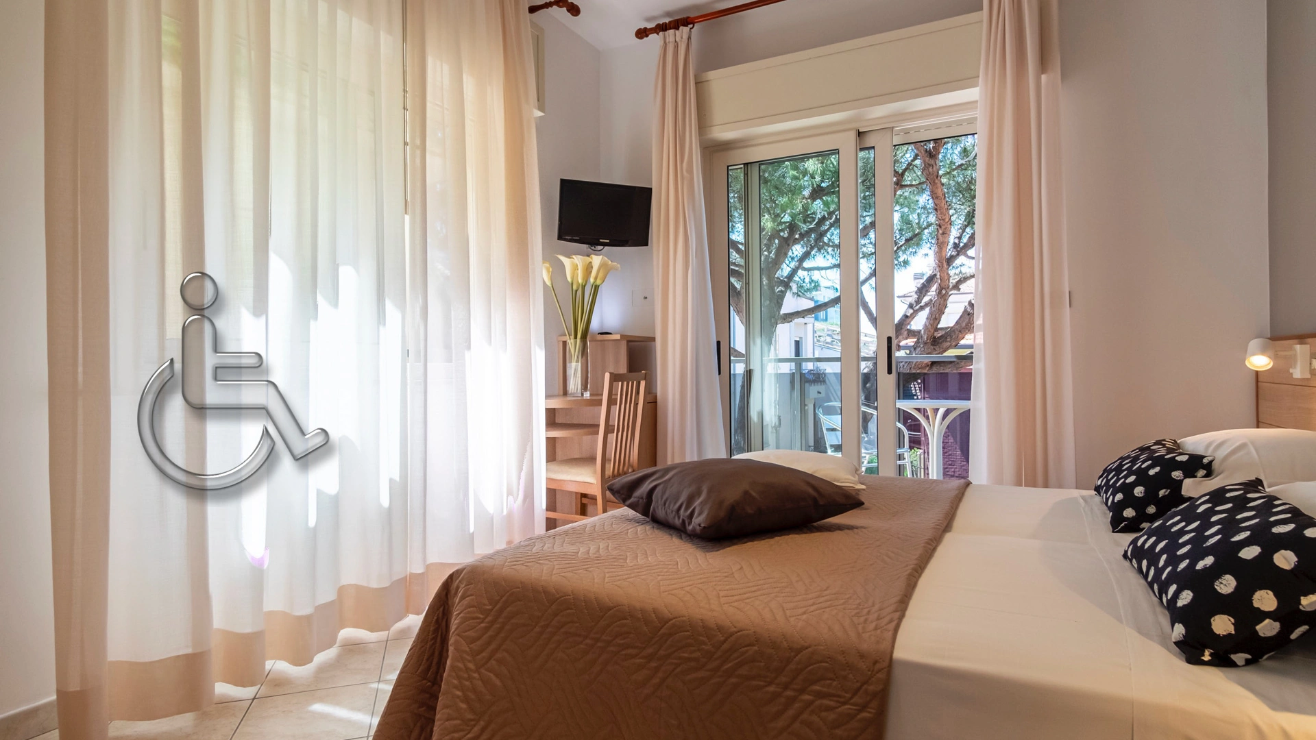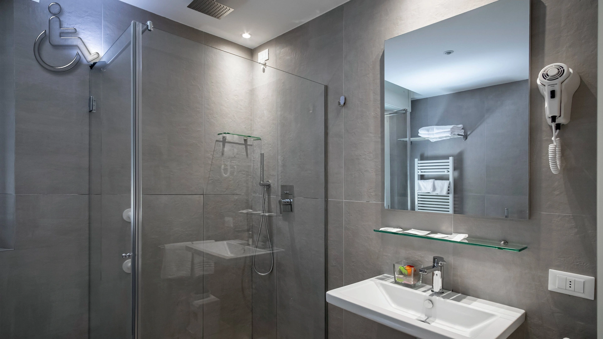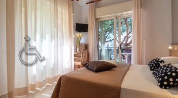 SERVICES FOR DISABLED PEOPLE: entrance with inclined ramp, compliant lift, rooms with maneuvering space for wheelchairs, bathroom with wheelchair-accessible shower and shower chair.