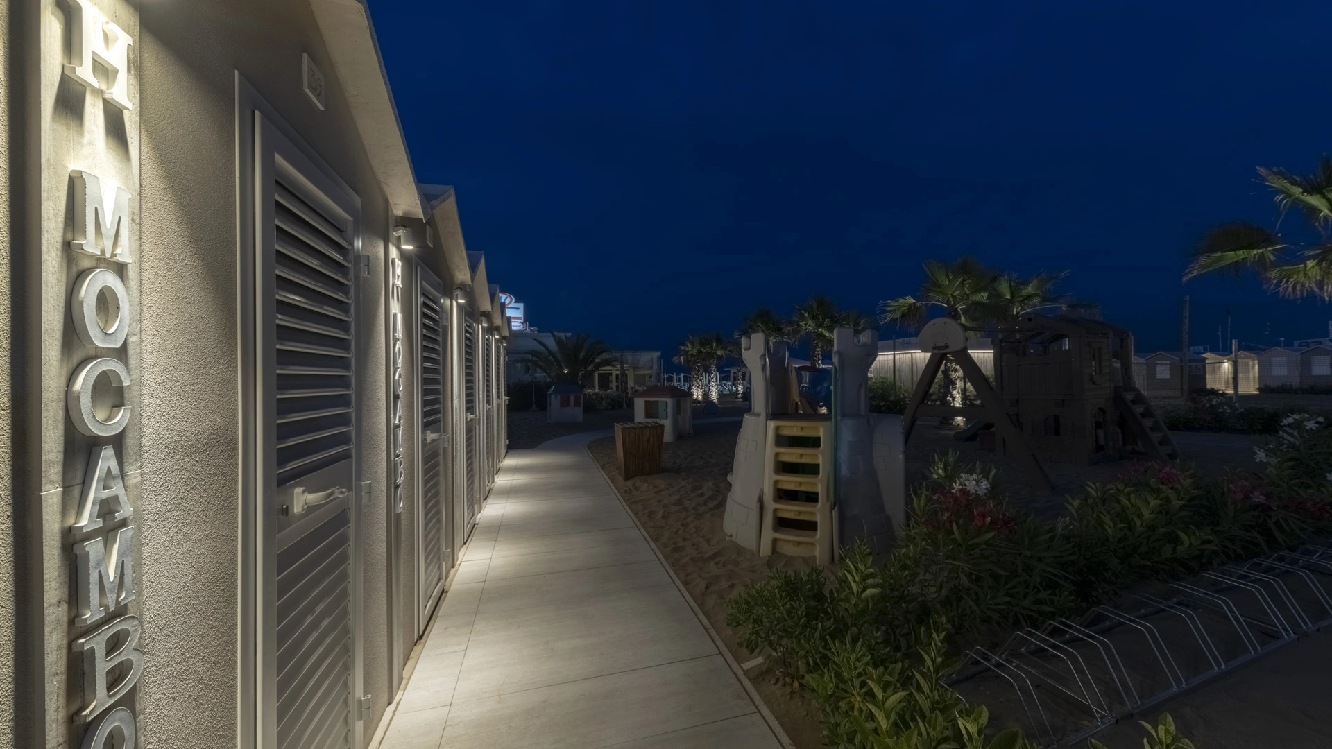 On the beach: playground area, changing table, anti-loss bracelet.