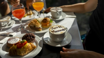 BREAKFAST: with homemade desserts, cappuccino and bar coffee.