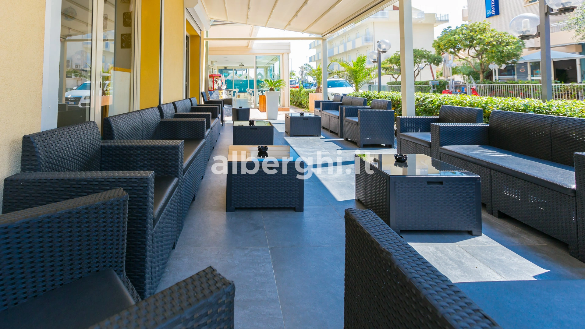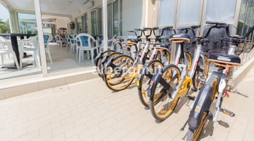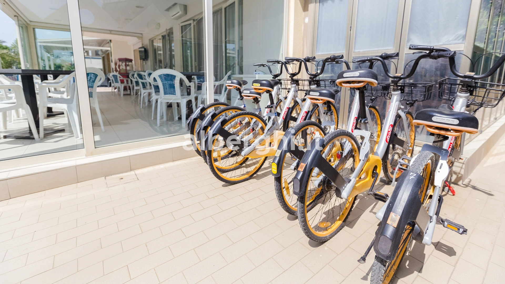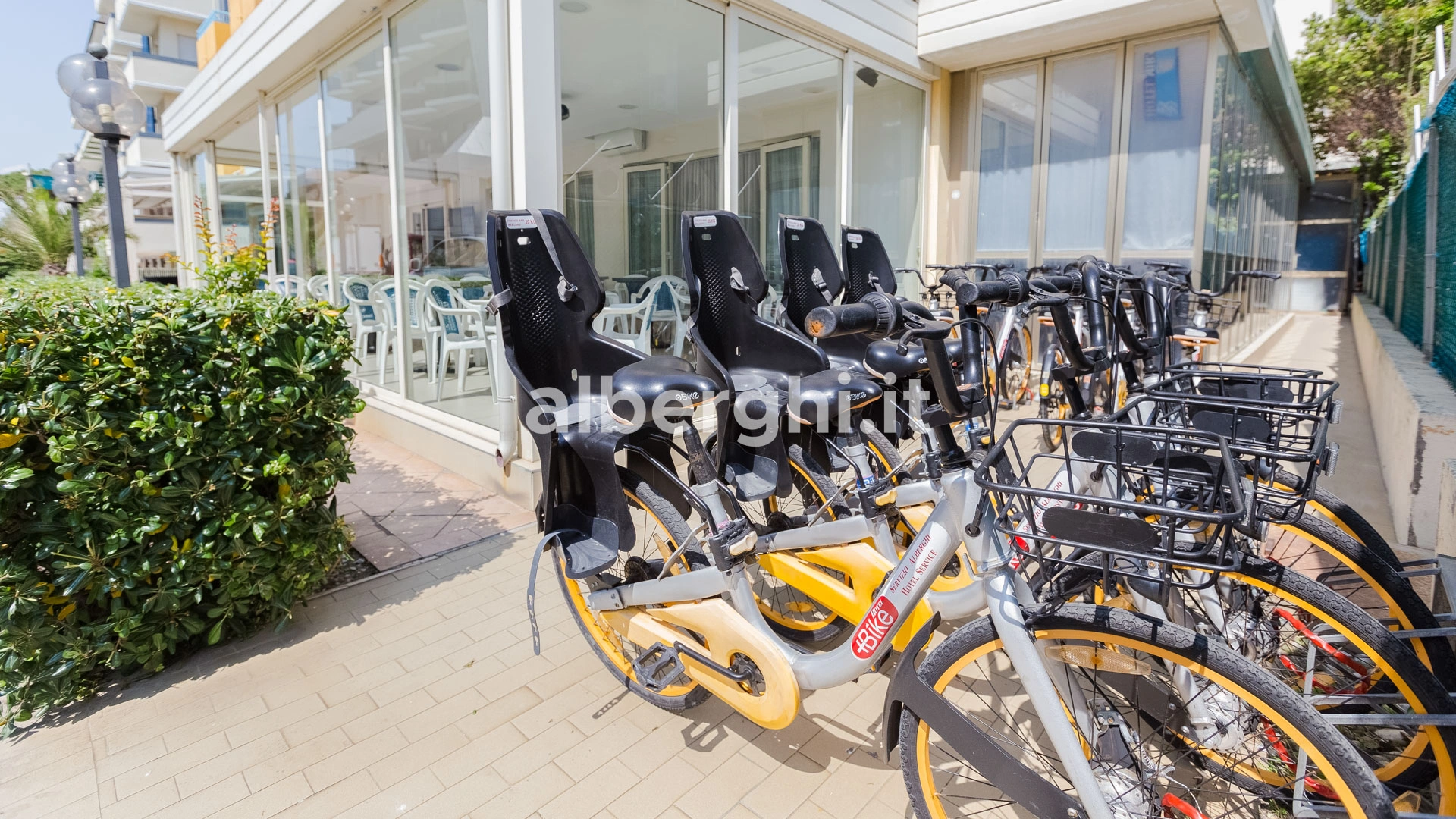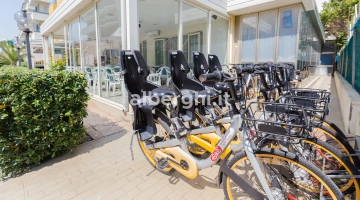 Garden area, veranda, terrace, free-use bicycles, large air-conditioned dining room, satellite TV room, reading room, elevator, paid laundry service. Free admission to Beach Village water park, equipped with slides, various pools, sun loungers and aqua gym classes.