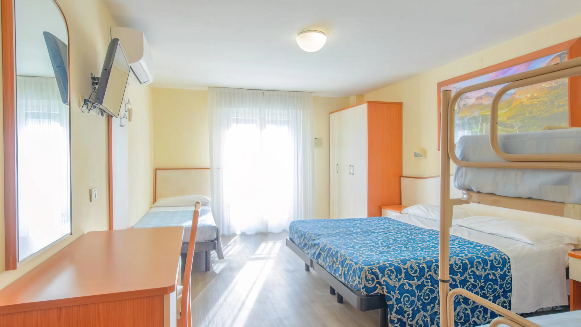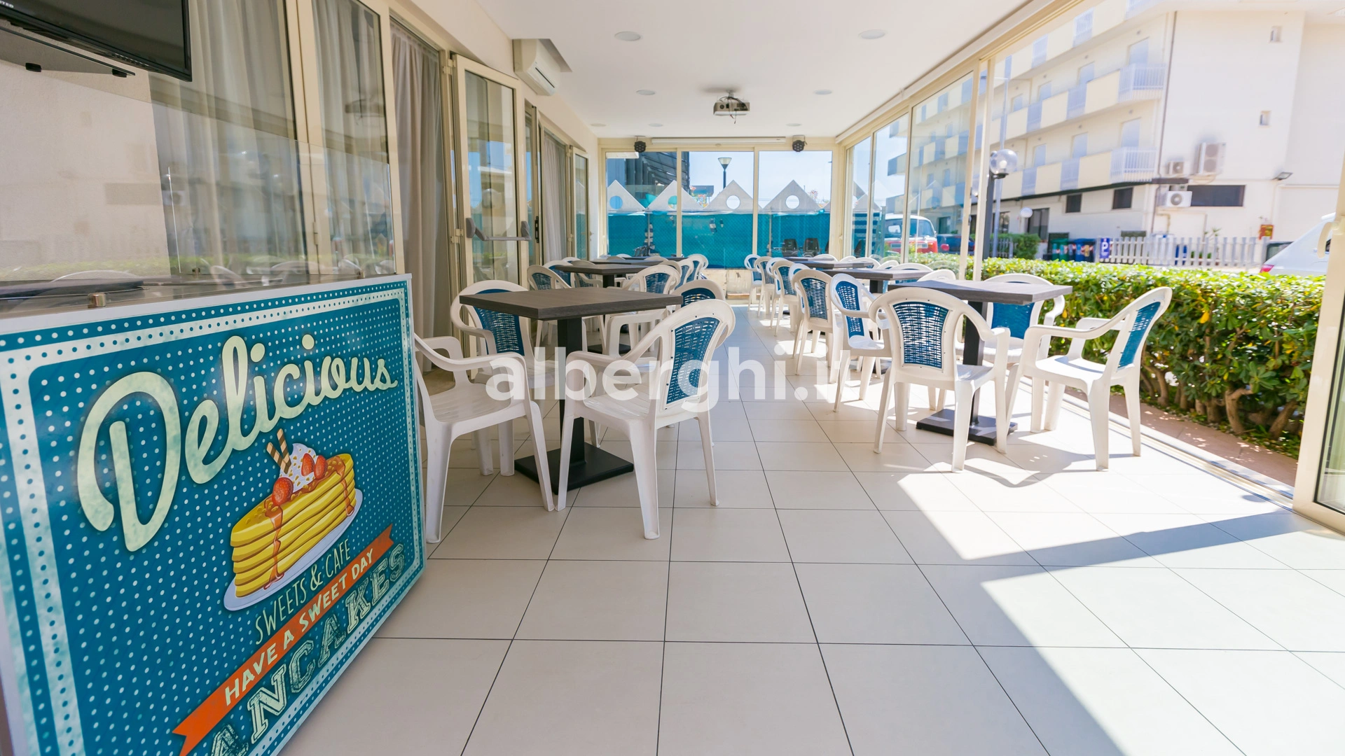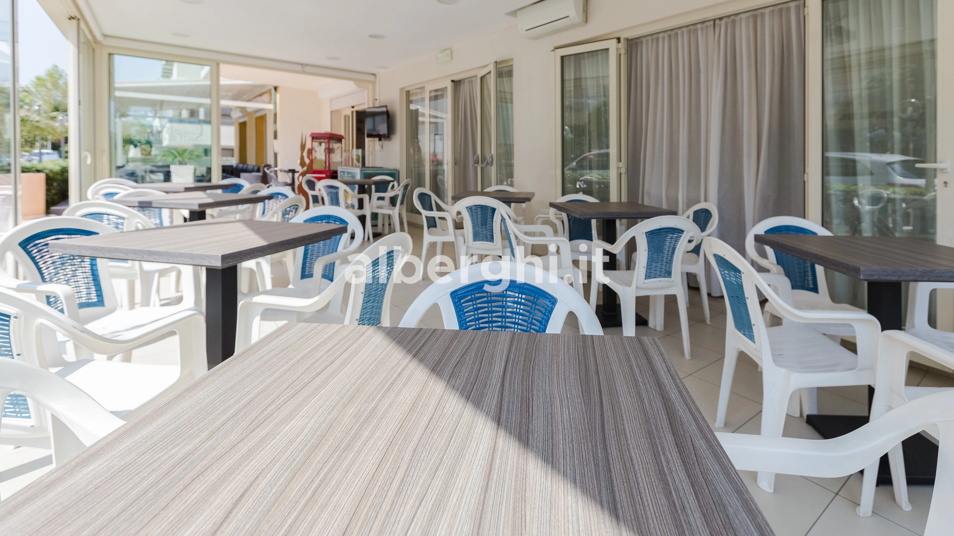 Garden area, veranda, terrace, free-use bicycles, large air-conditioned dining room, satellite TV room, reading room, elevator, paid laundry service. Free admission to Beach Village water park, equipped with slides, various pools, sun loungers and aqua gym classes.